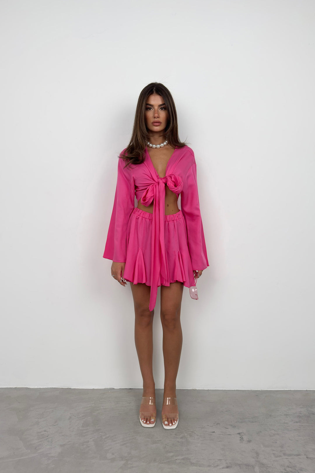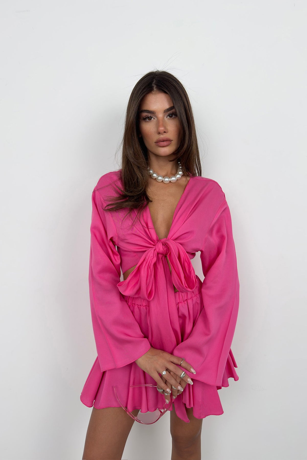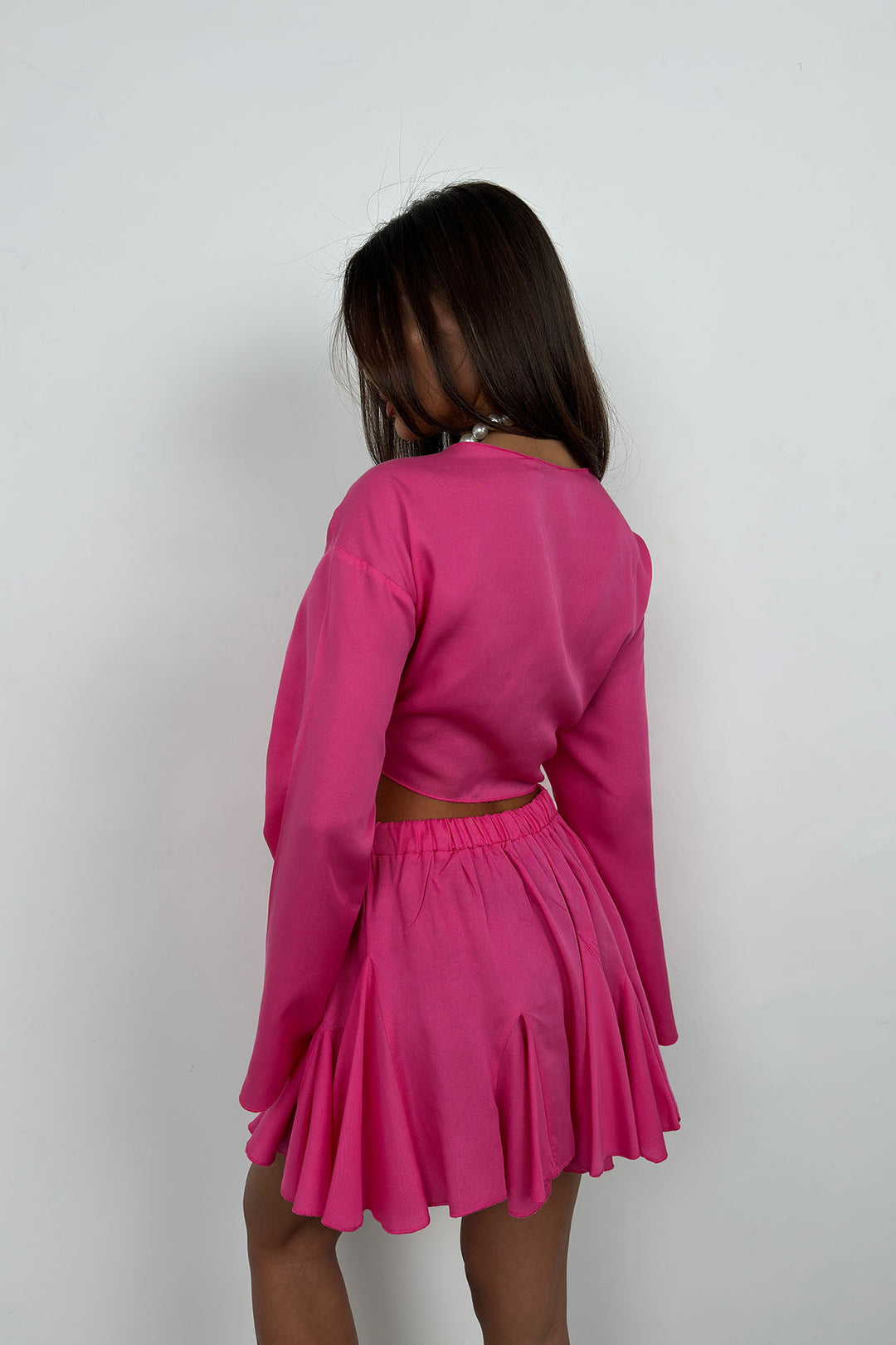 Kayık Yaka Uzun Kol Fuşya Crop