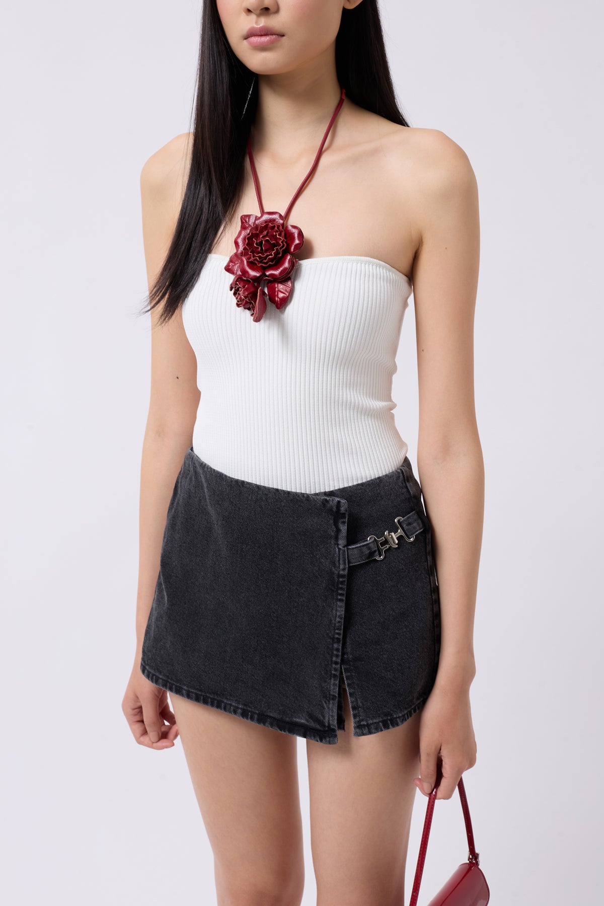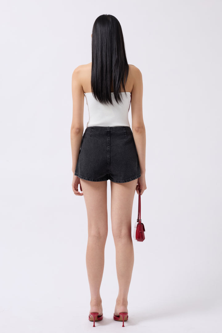 Kemer Detay Denim Şort Siyah Etek