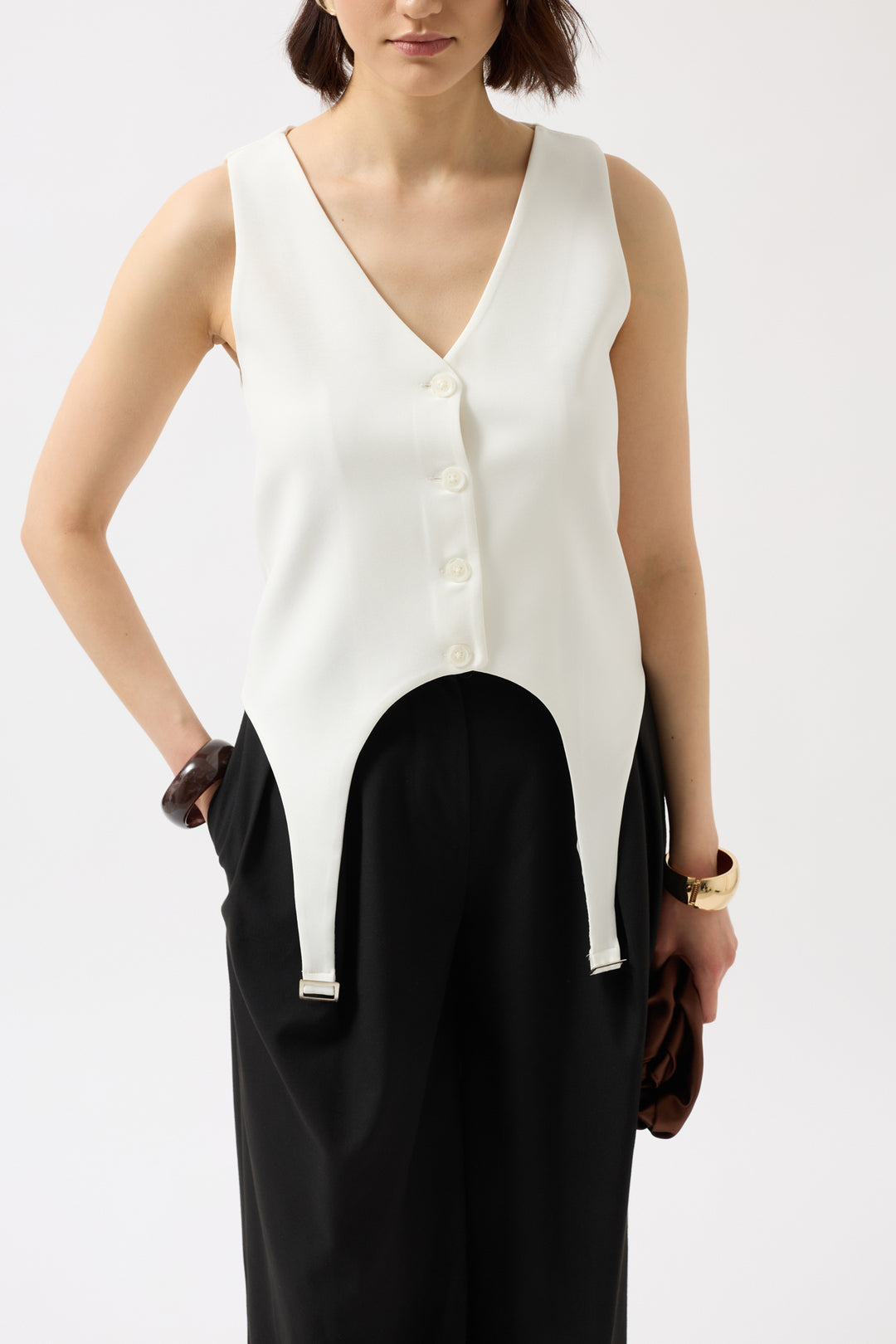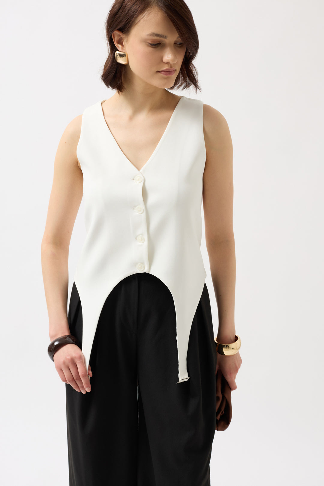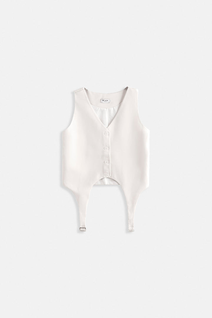 Kemer Detay V Yaka Beyaz Yelek