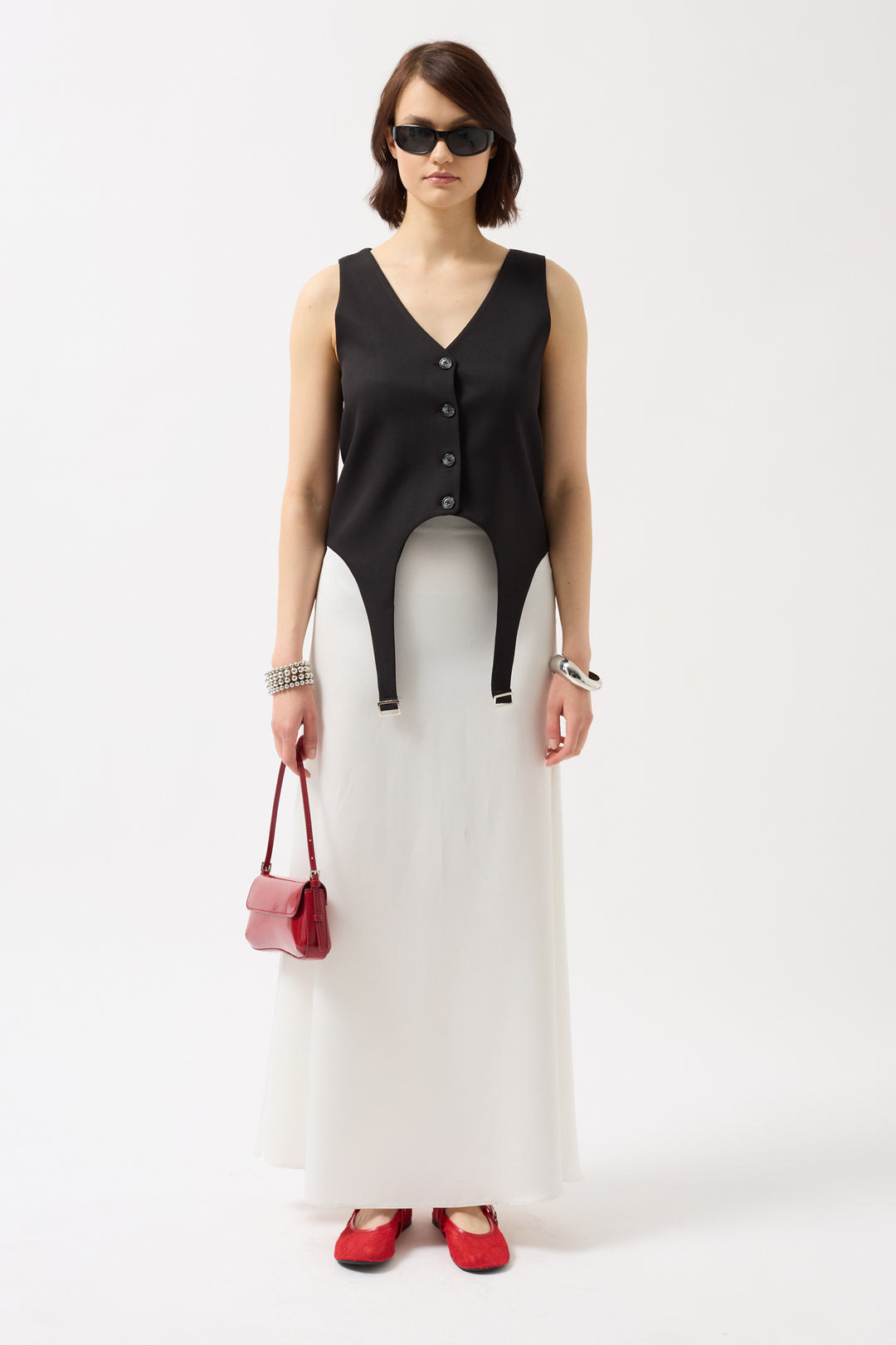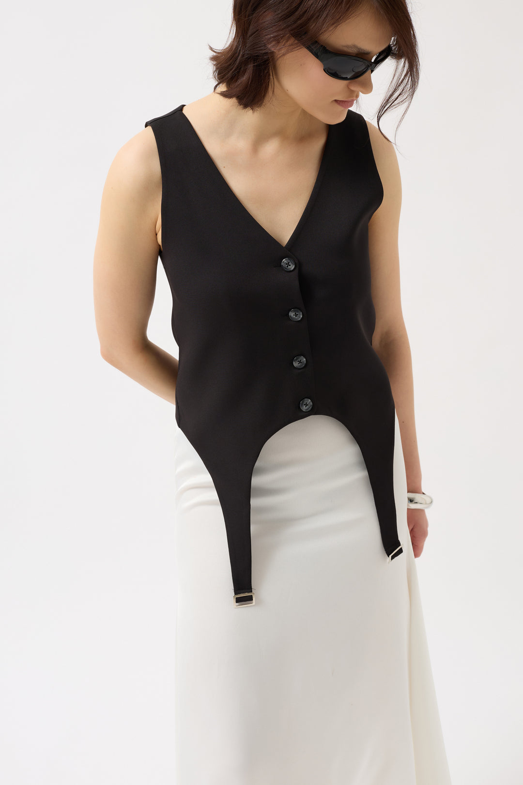 Ön Tarafı Çift Aksesuar Detaylı, Dört Düğmeli, İçi Astarlı, V Yaka Yelek
