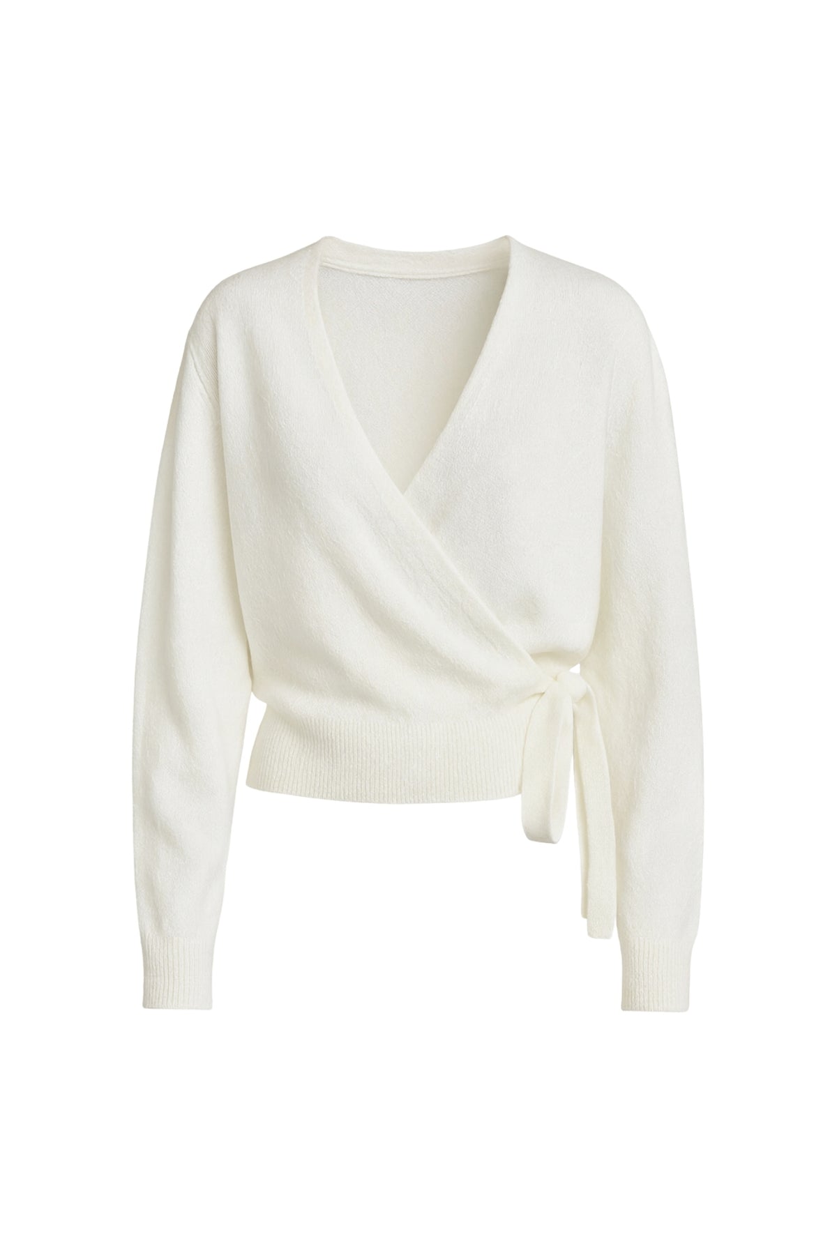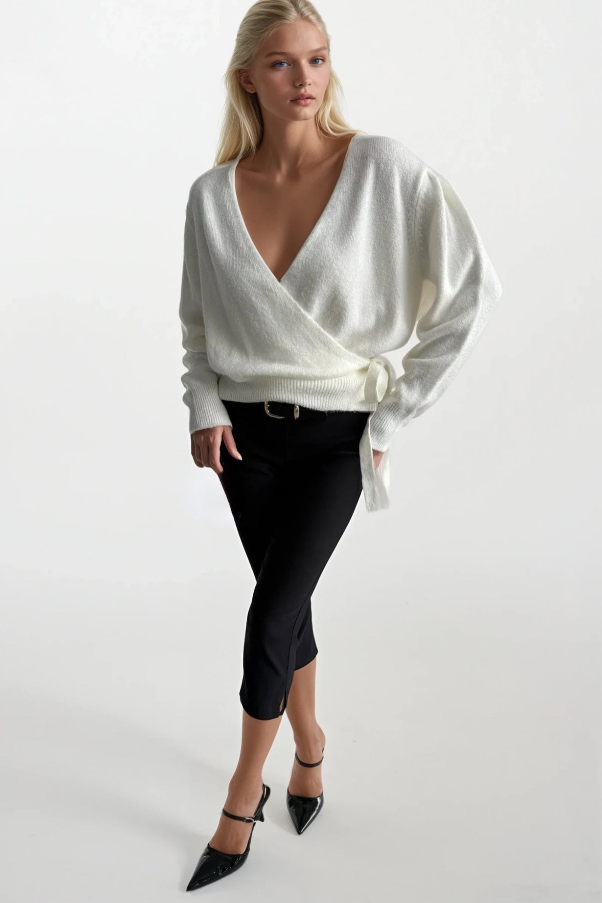 Kruvaze Bağlamalı Ekru Triko Hırka