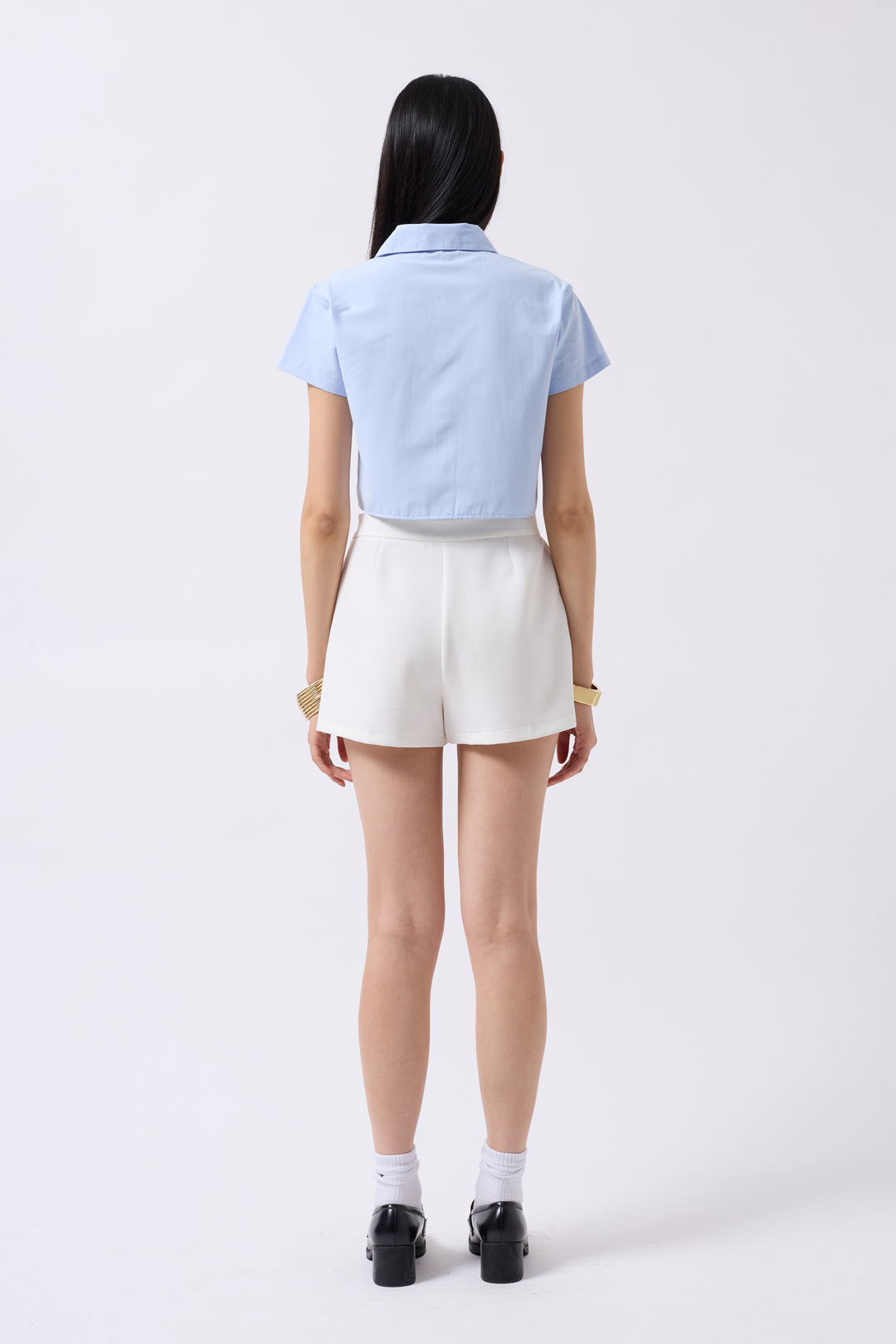 Çift Flato Cepli, Cep Fiyonk Detaylı, Kısa Kollu Crop Gömlek