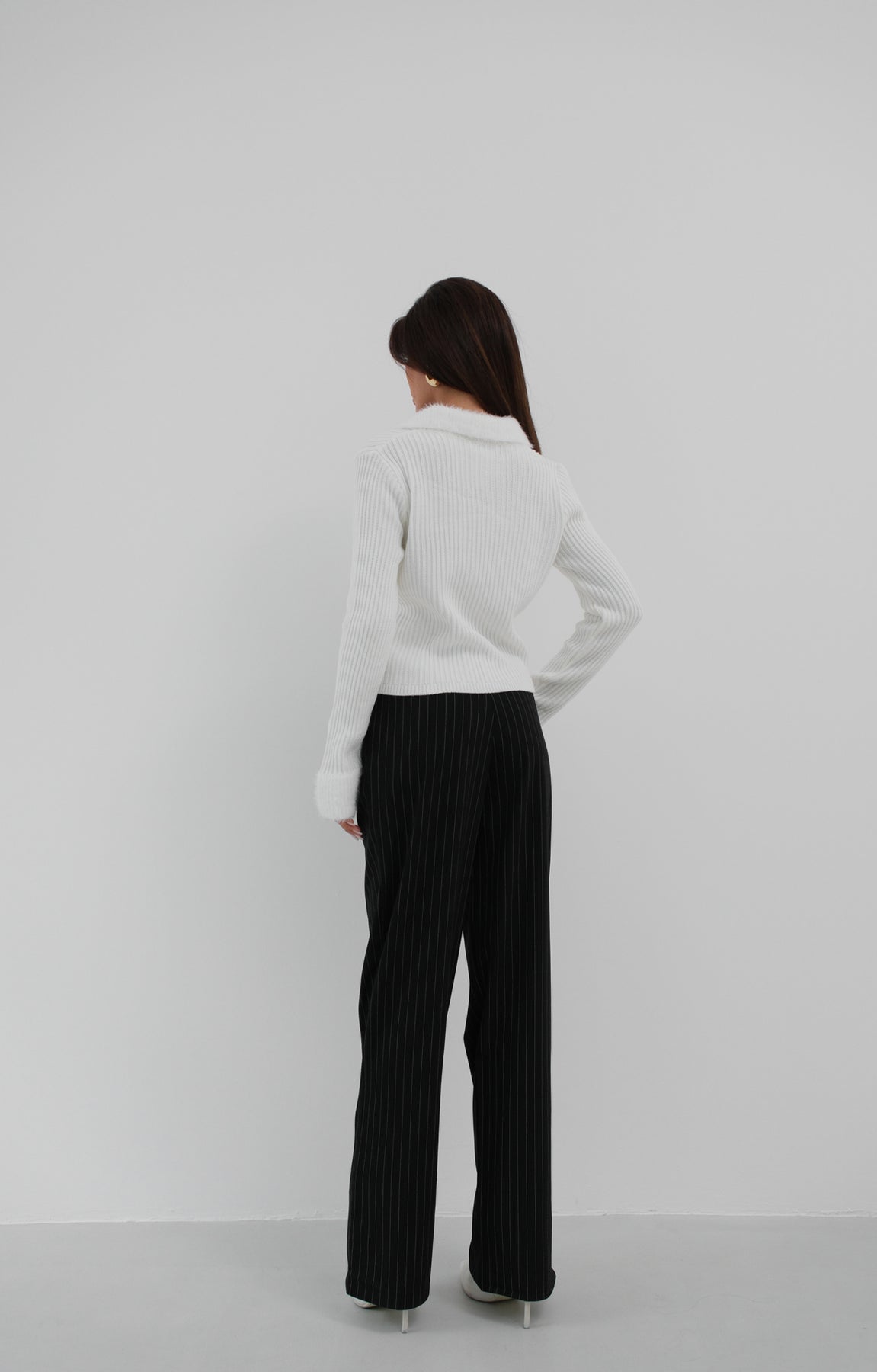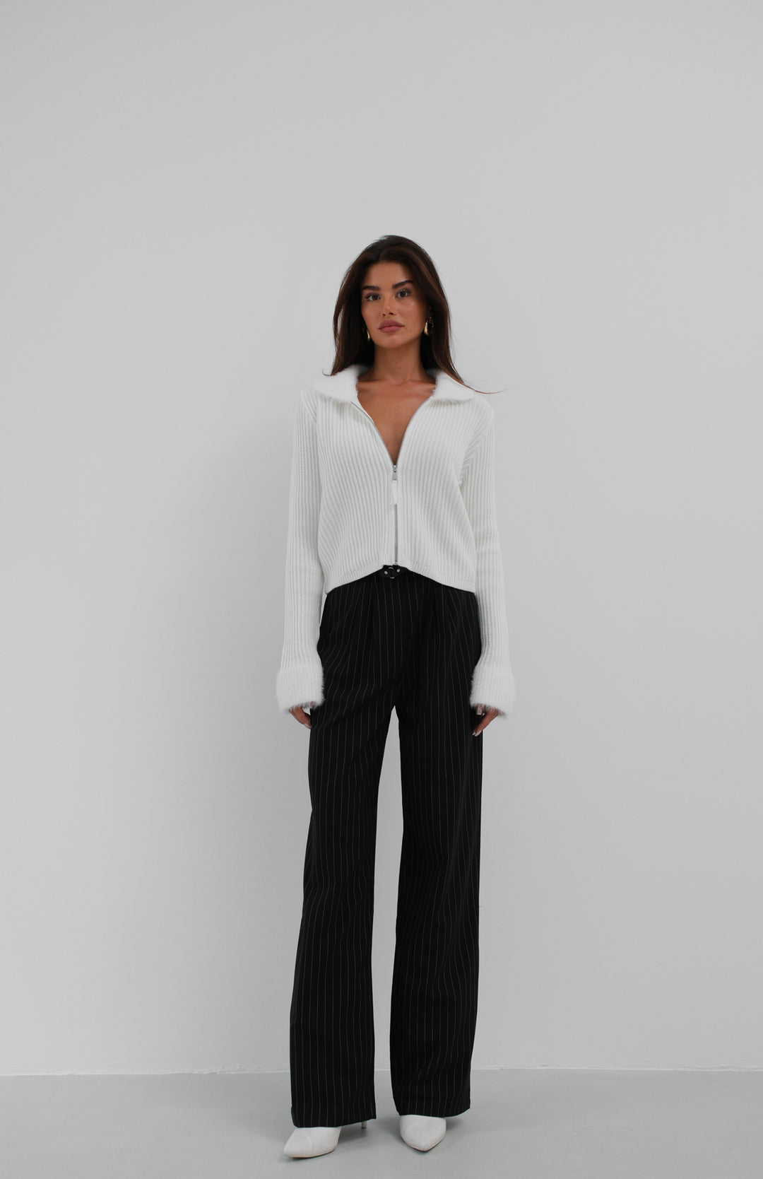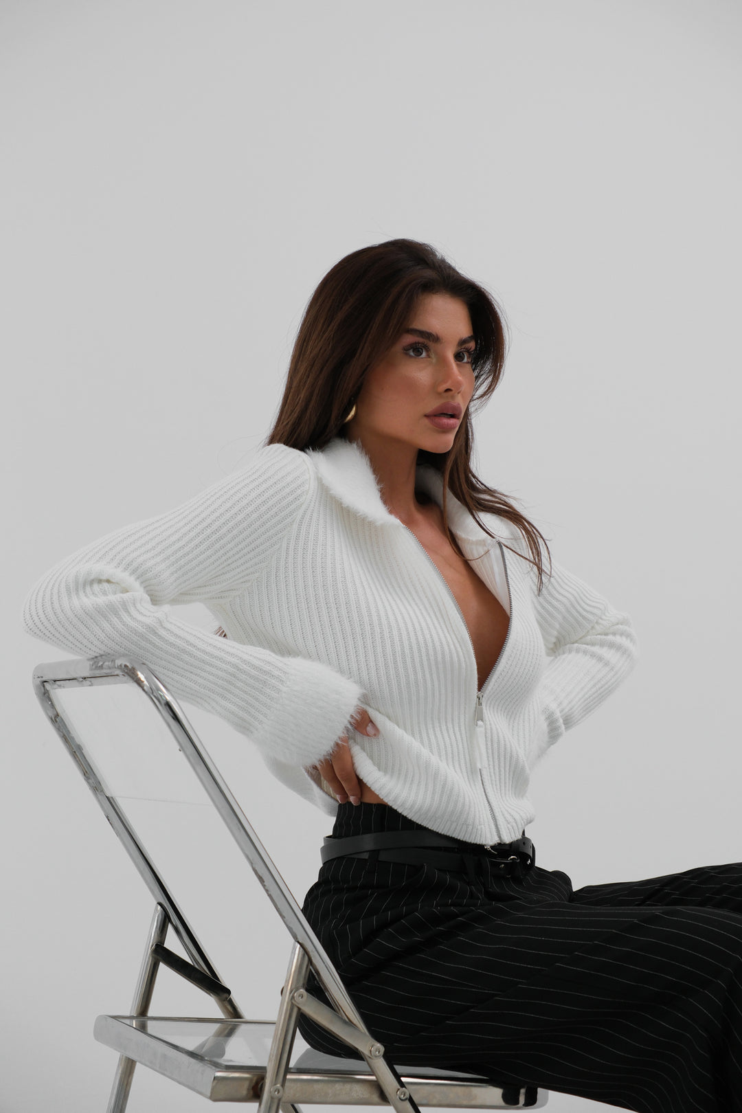 Kürk Detaylı, Crop, Fermuarlı, Uzun Kolu, Fitilli, Triko Hırka