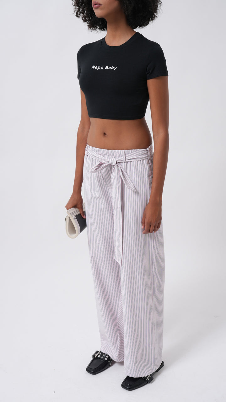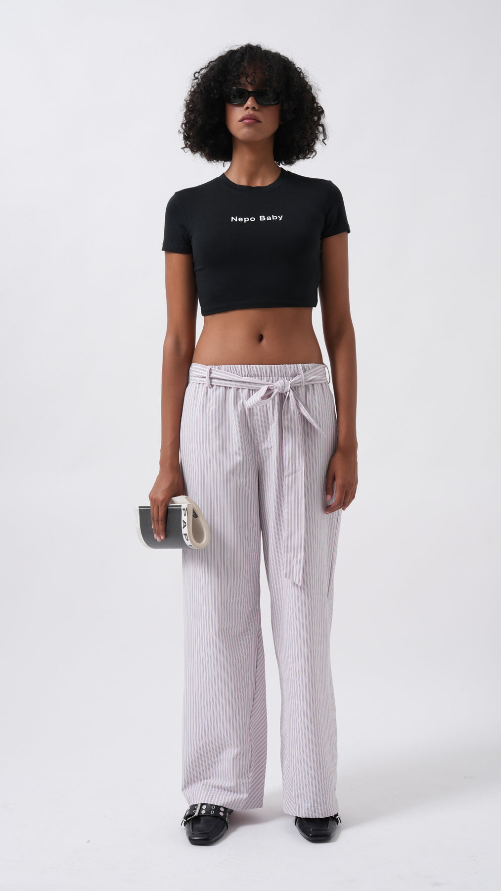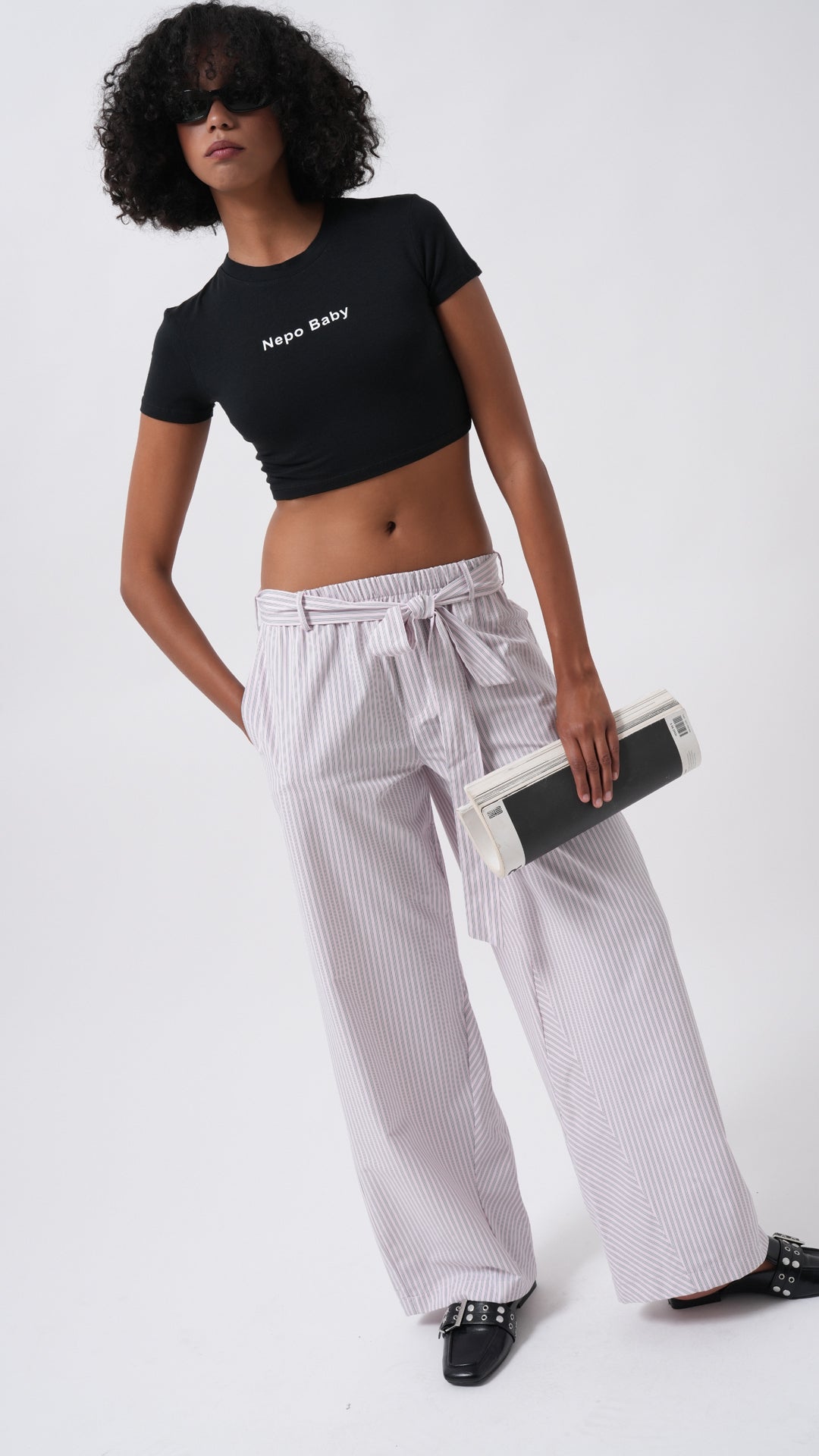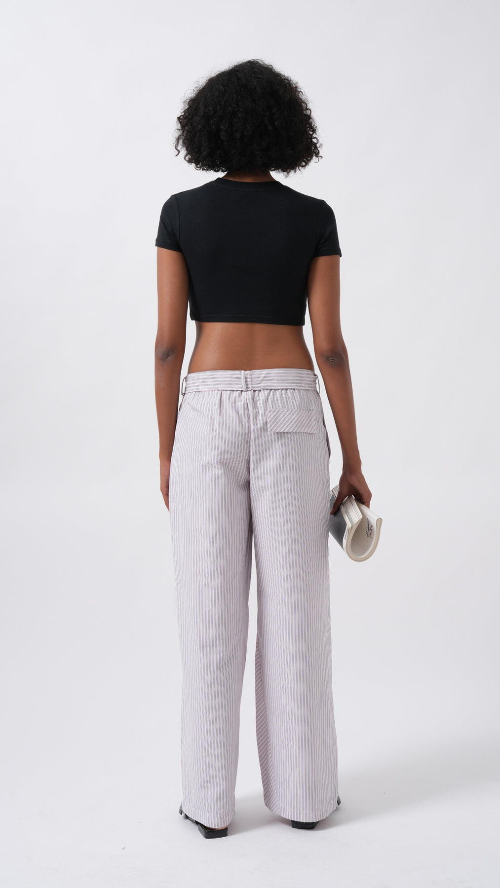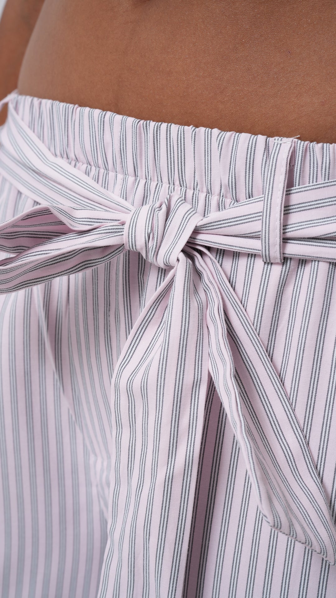 Beli Kuşaklı, Çift Cepli, Rahat Kesim, Pamuklu Çizgili Pantolon