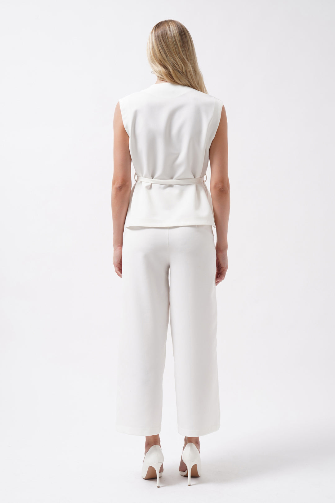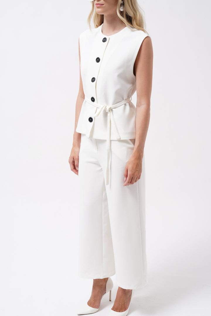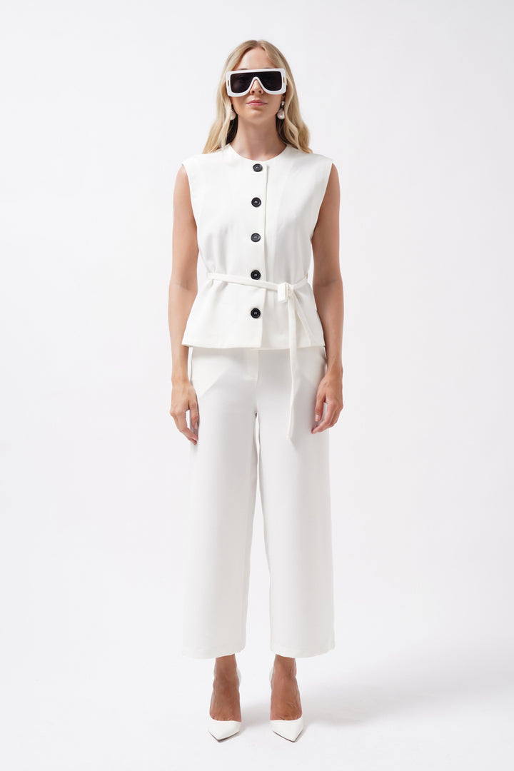 Beş Düğmeli, Bisiklet Yaka, Kuşaklı, Düz Kesim Dokuma Yelek