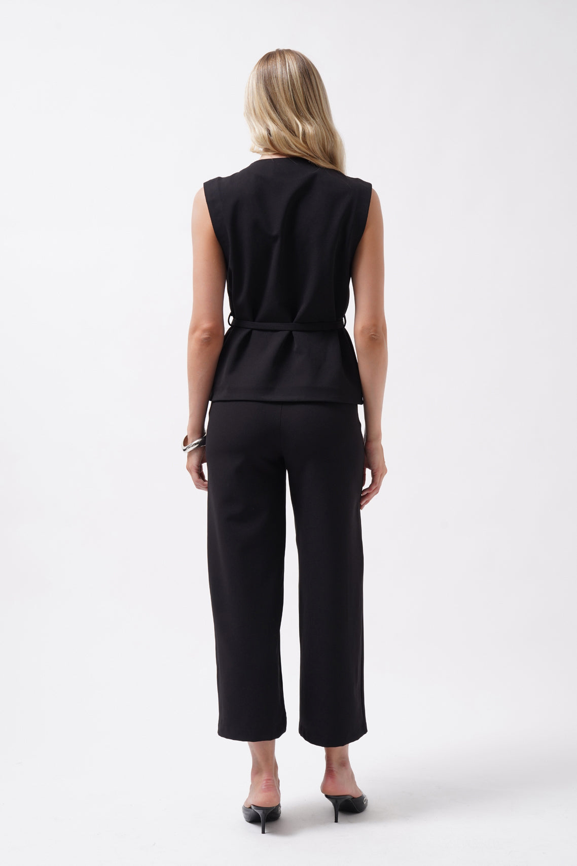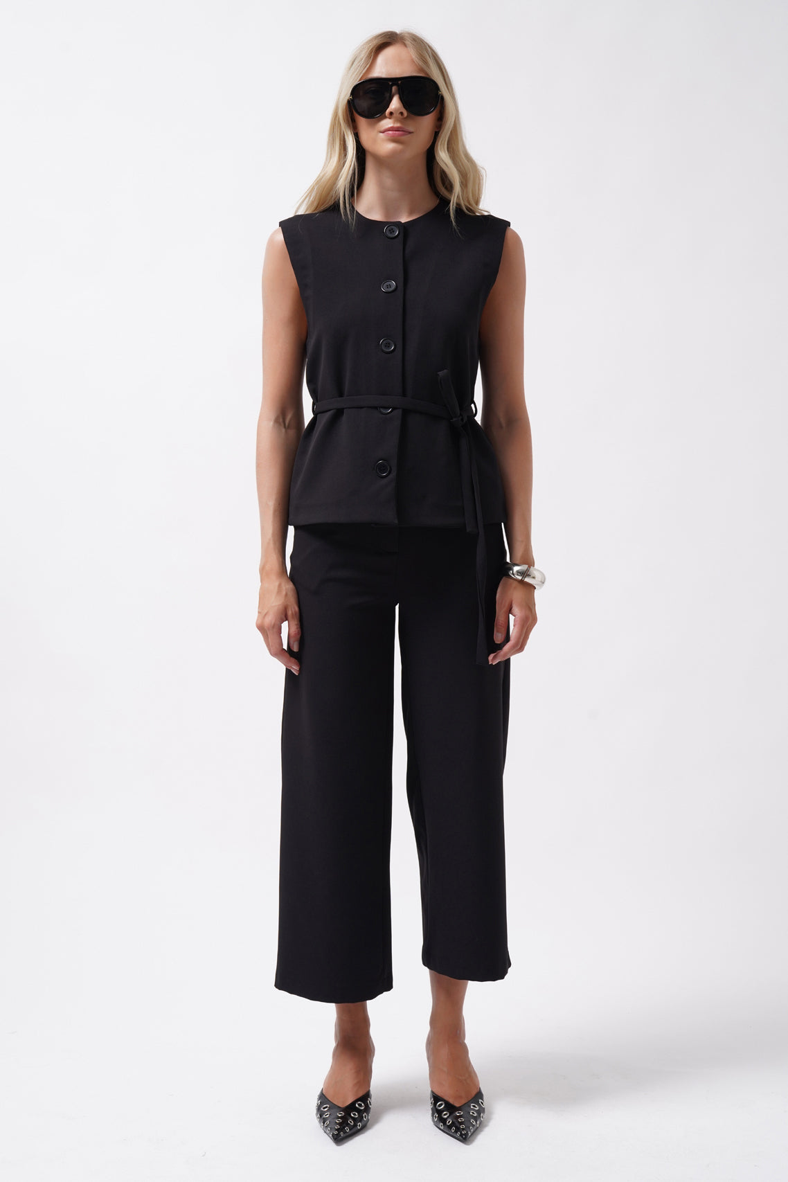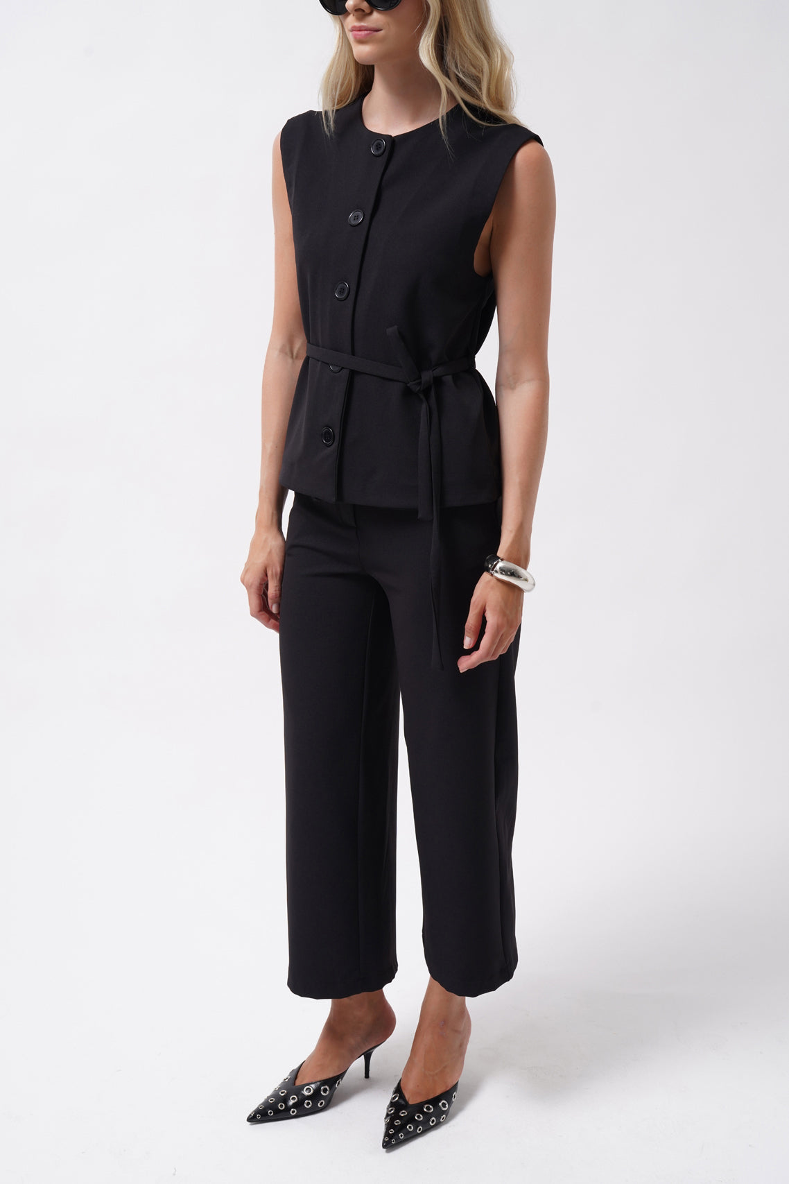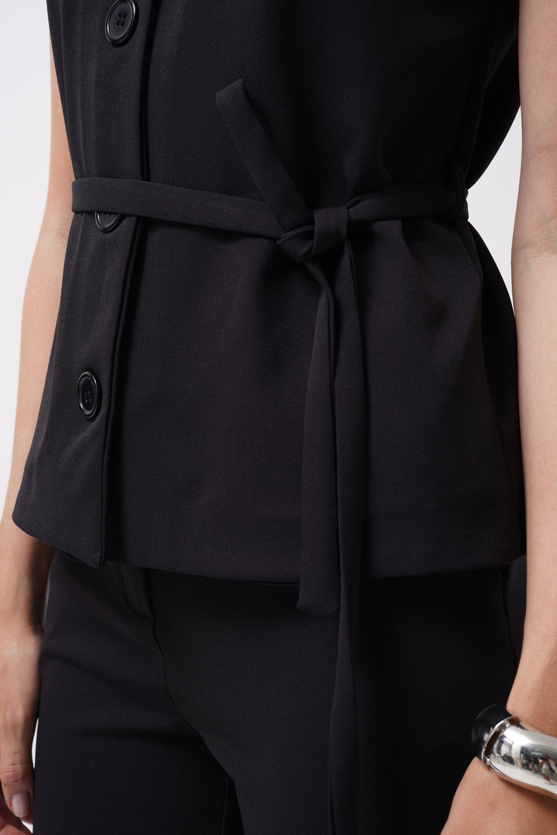 Beş Düğmeli, Bisiklet Yaka, Kuşaklı, Düz Kesim Dokuma Yelek