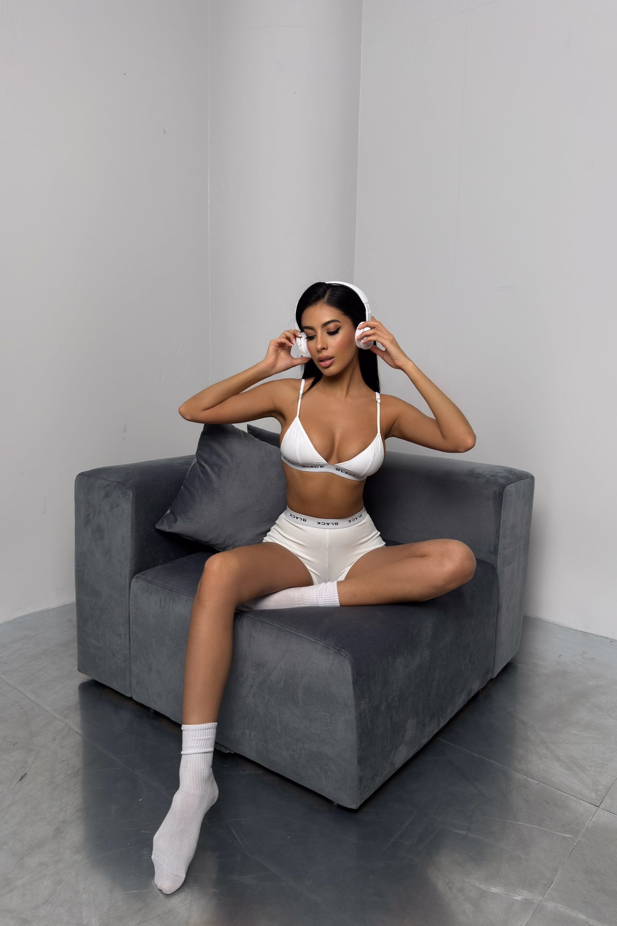 Lastik Detay Beyaz Sporcu Bra