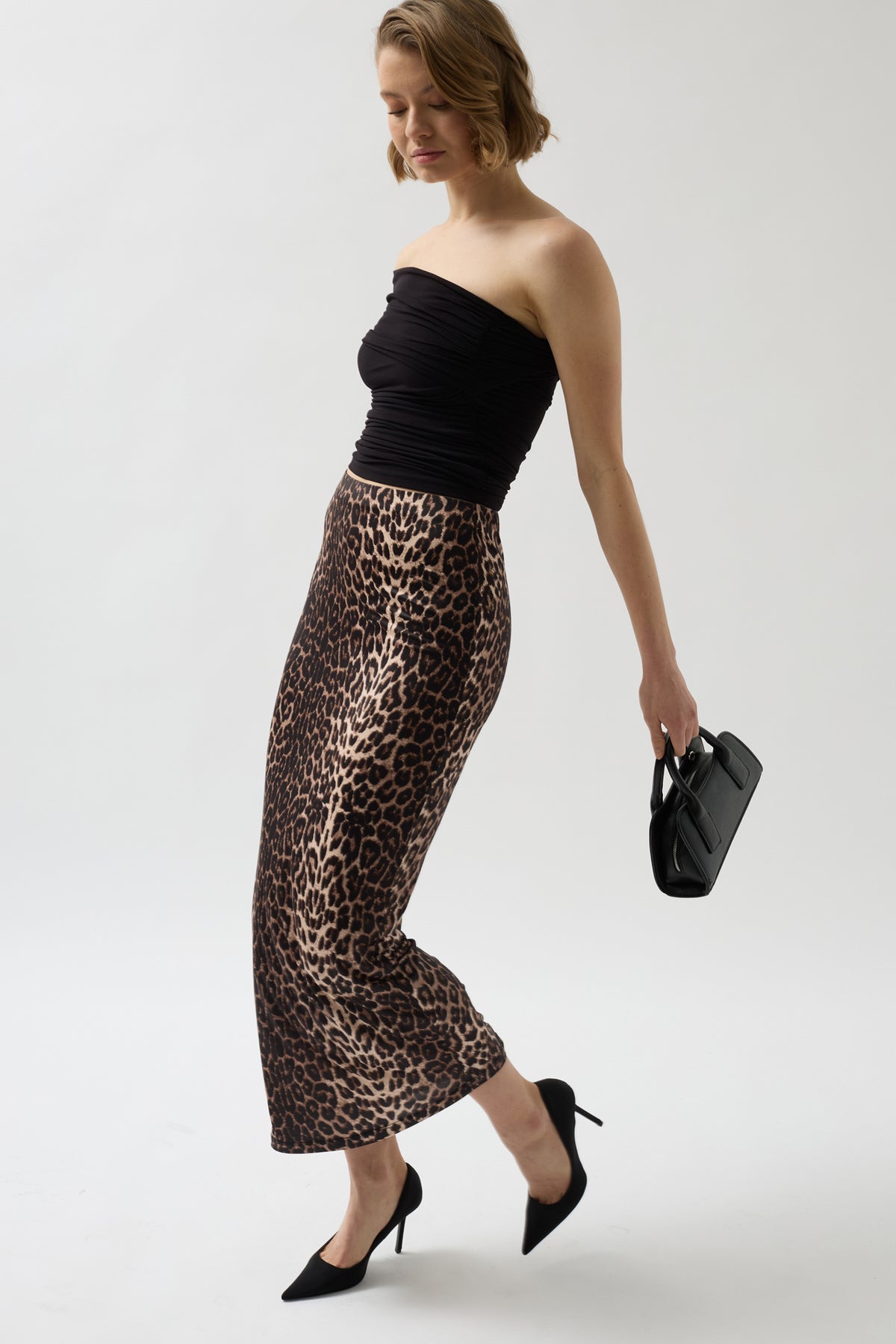 Leopar Desen Midi Etek