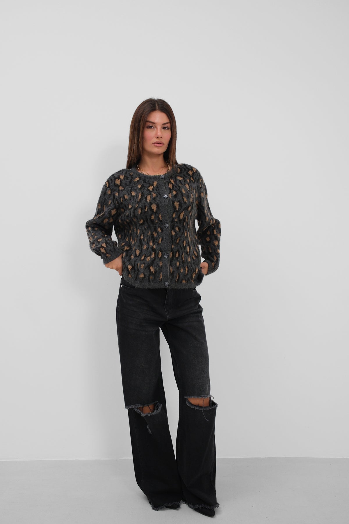 Leopar Desen, Oversize, Trend, Hırka, Casual