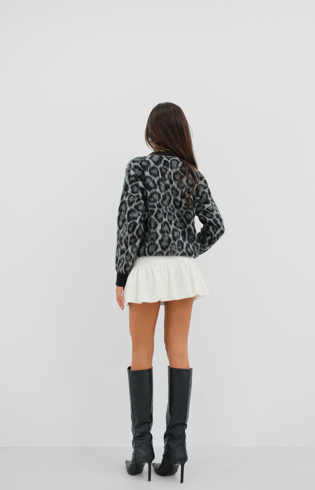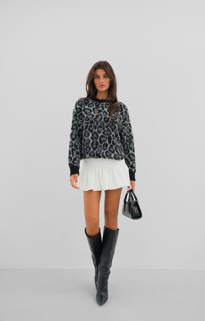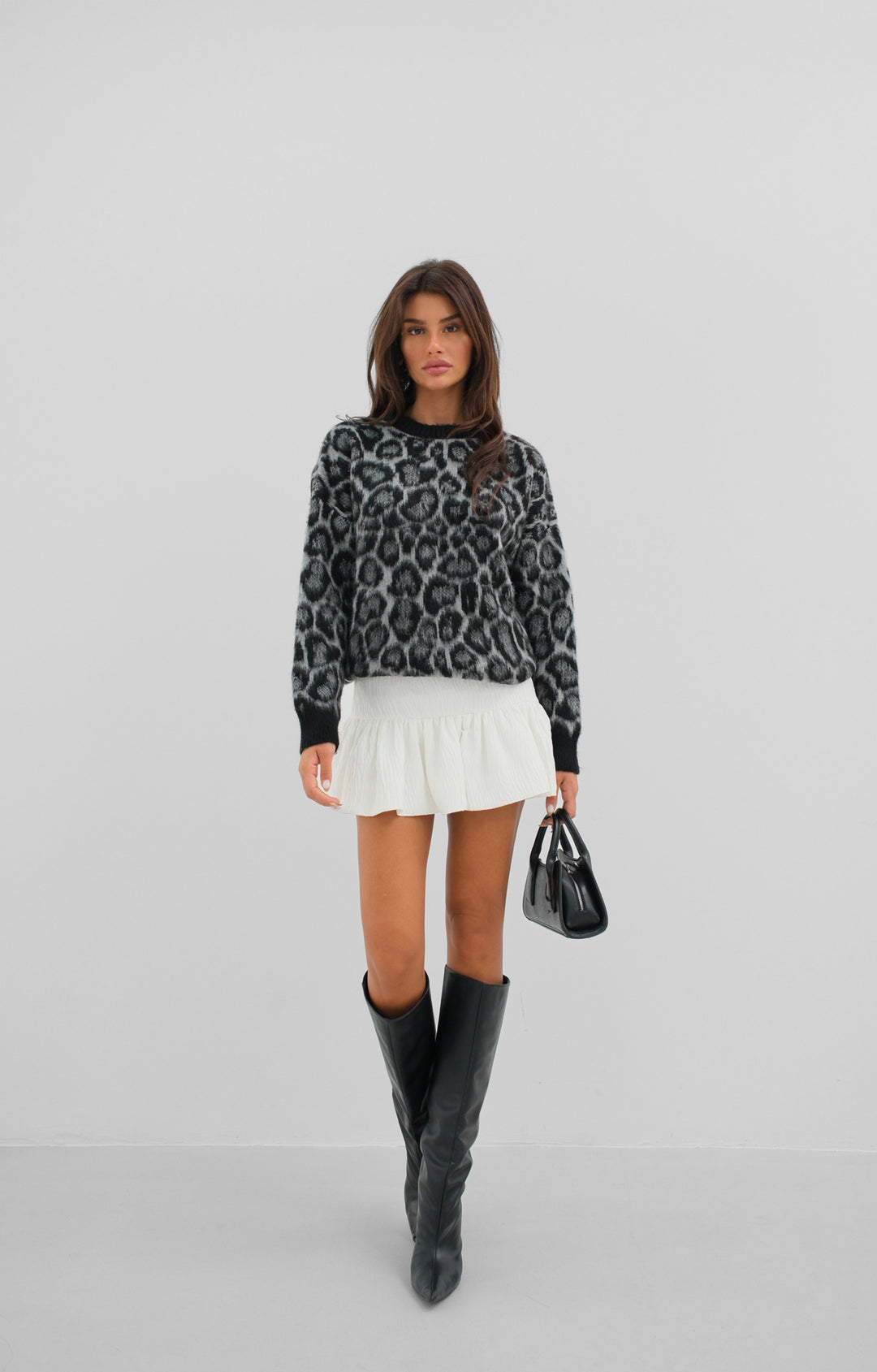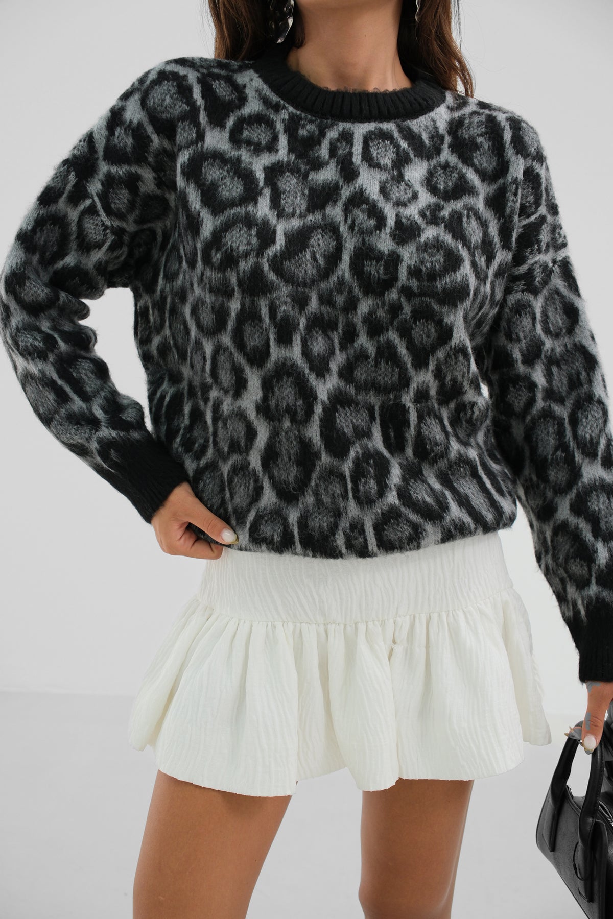 Leopar Desenli Siyah Sakallı Triko Kazak