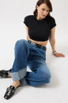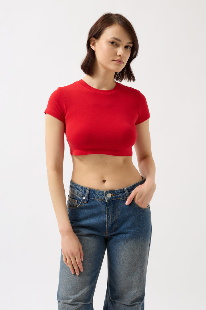 Likralı Pamuklu Kumaş, Kısa Kol Crop Tişört
