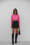 Uzun Manşet Detaylı, Uzun Kollu, Crop, Düğmeli, Gömlek Yaka, Katlamalı Yaka Sırtı Oval Bitişli Gömlek