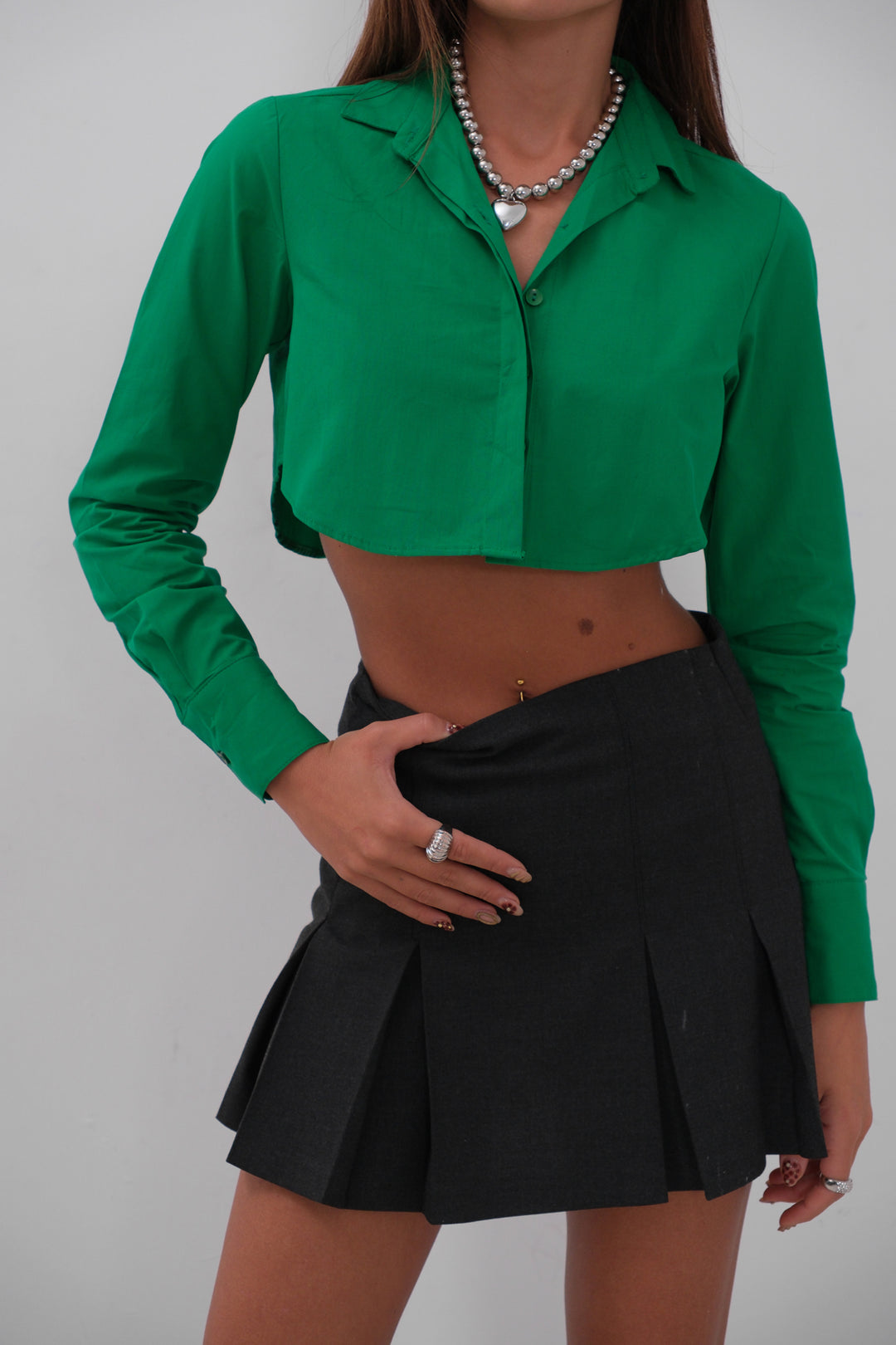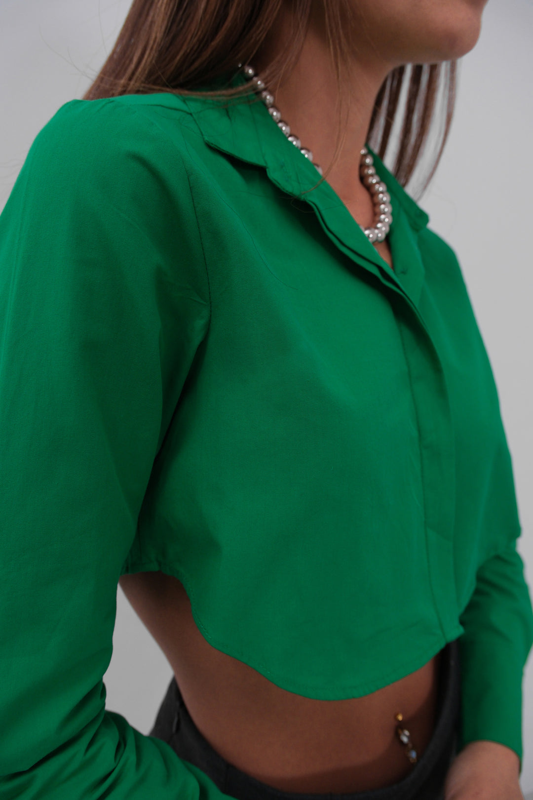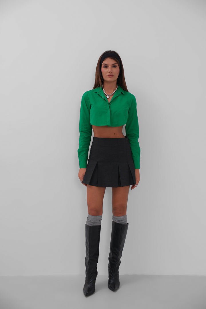 Manşet Detay Yeşil Crop Gömlek