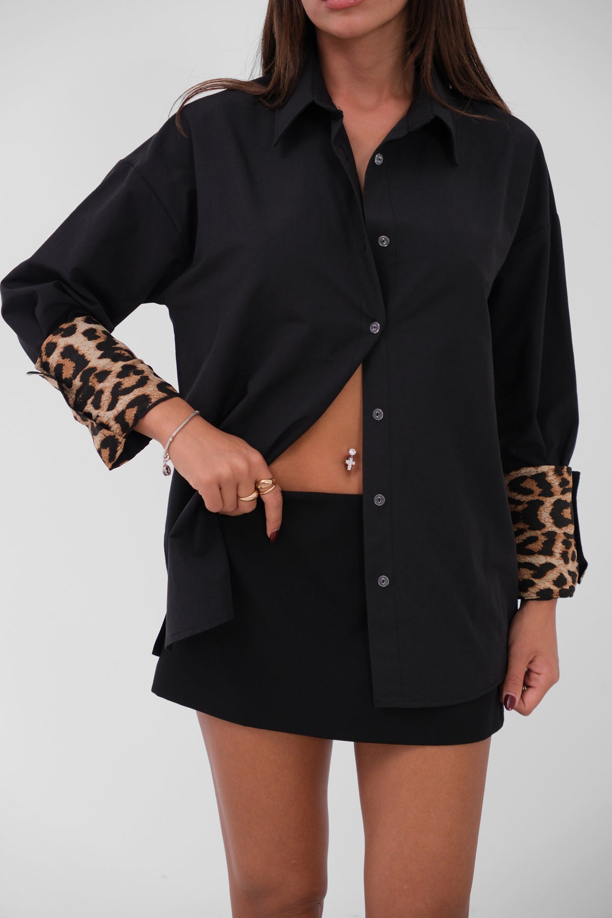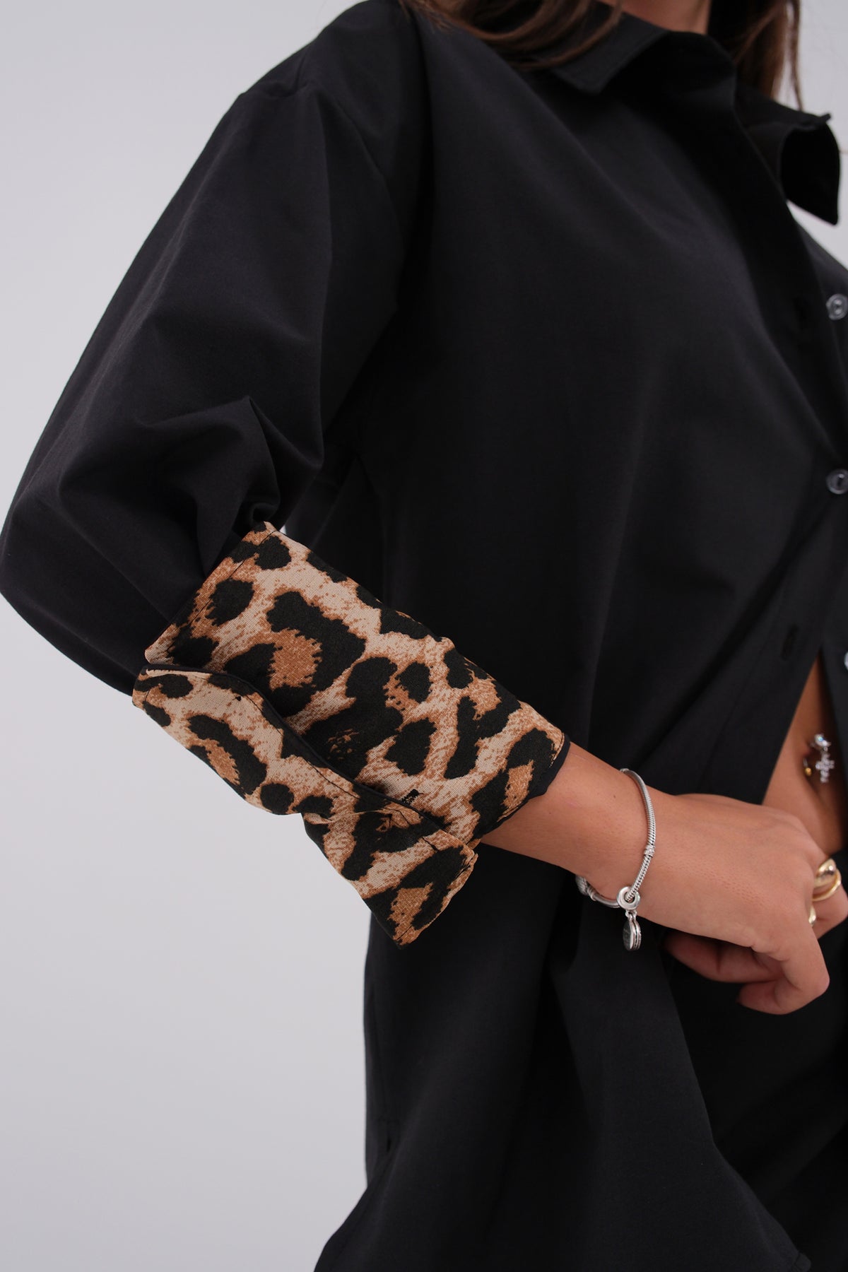 Manşet Detay Siyah Gömlek