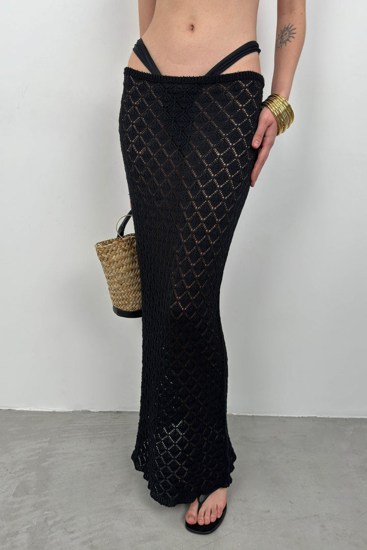 Maxi Boy, Yüksek Bel, Ajurlu Triko Örgü, Etek