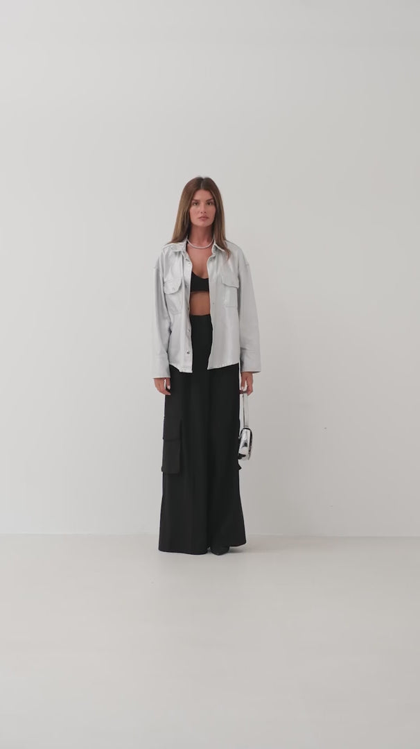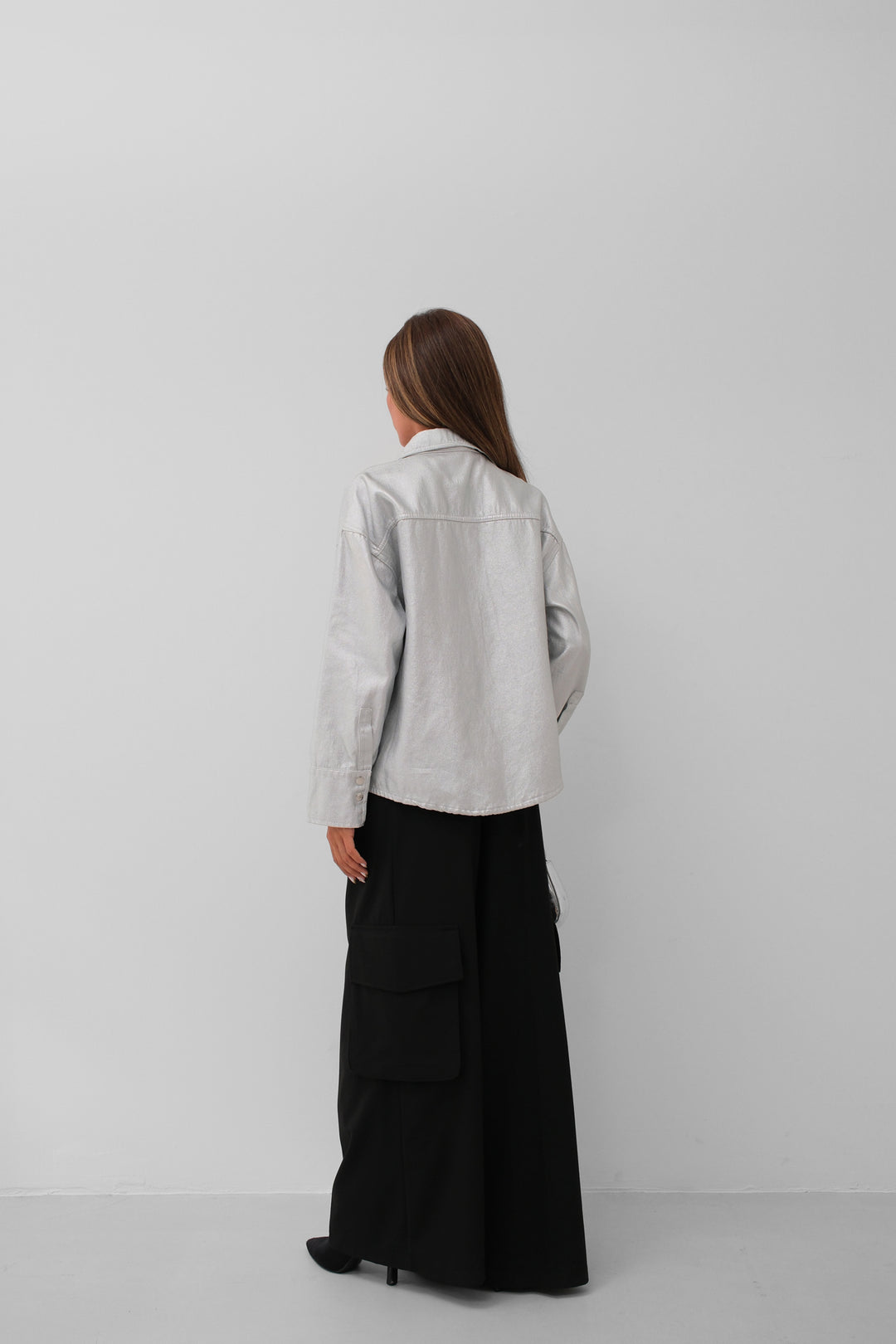 Metalik Renk, Cepli, Normal Boy, Katlanmış Kenarlı, Uzun Kollu, Katlı Yaka, Ceket