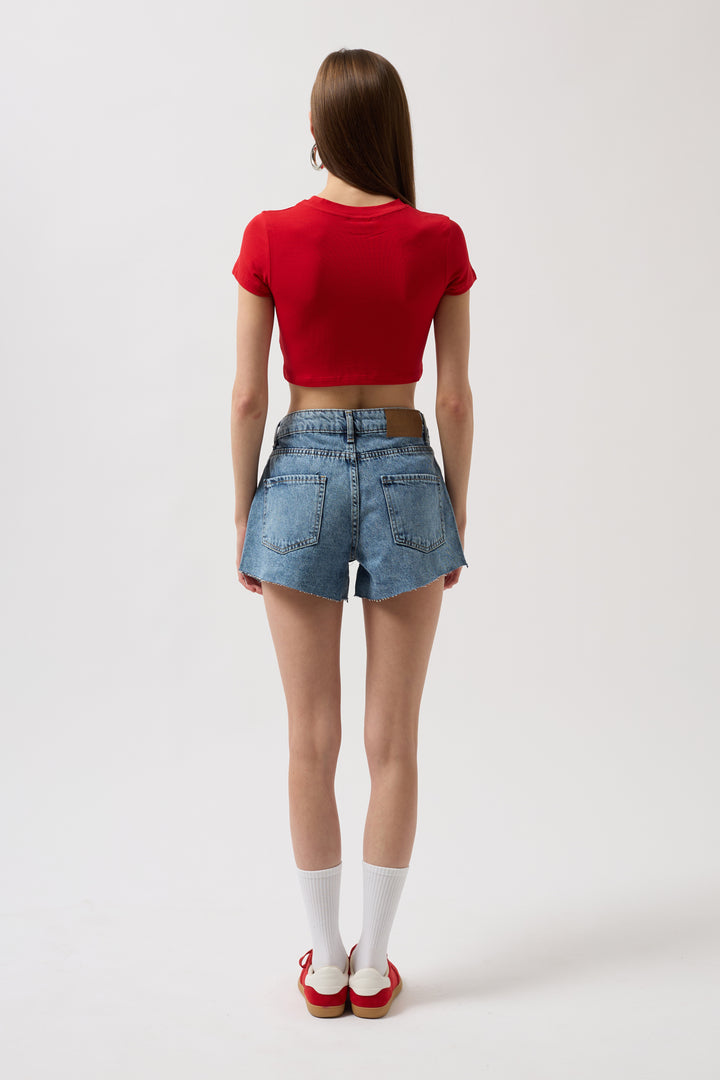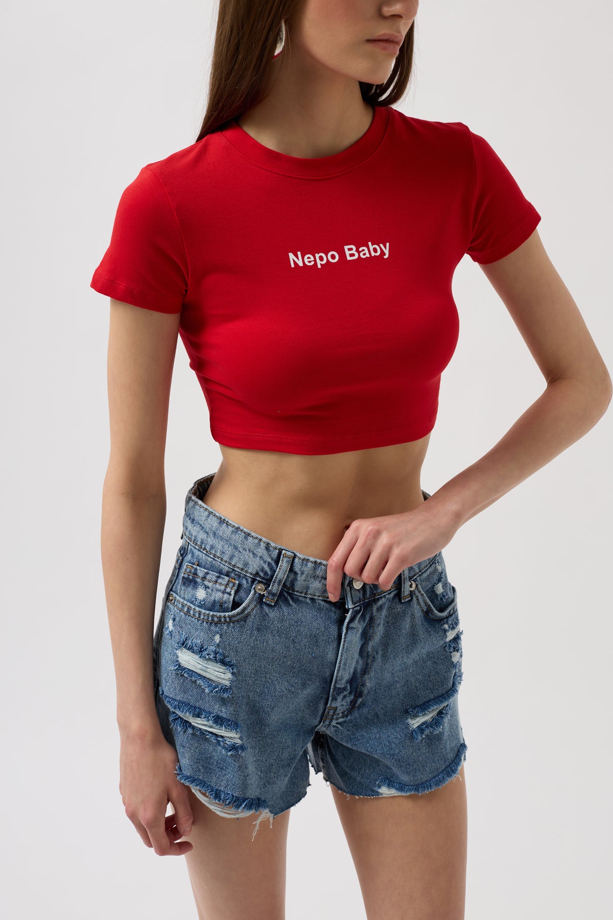 Nepo Baskılı Crop Kırmızı T-Shirt