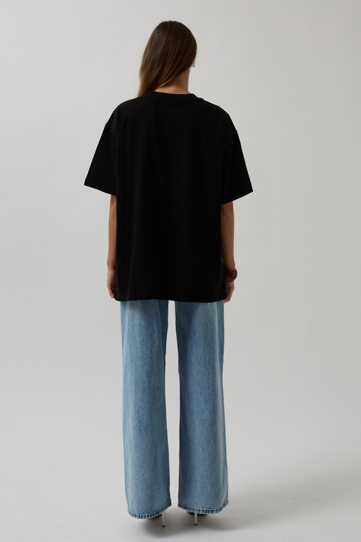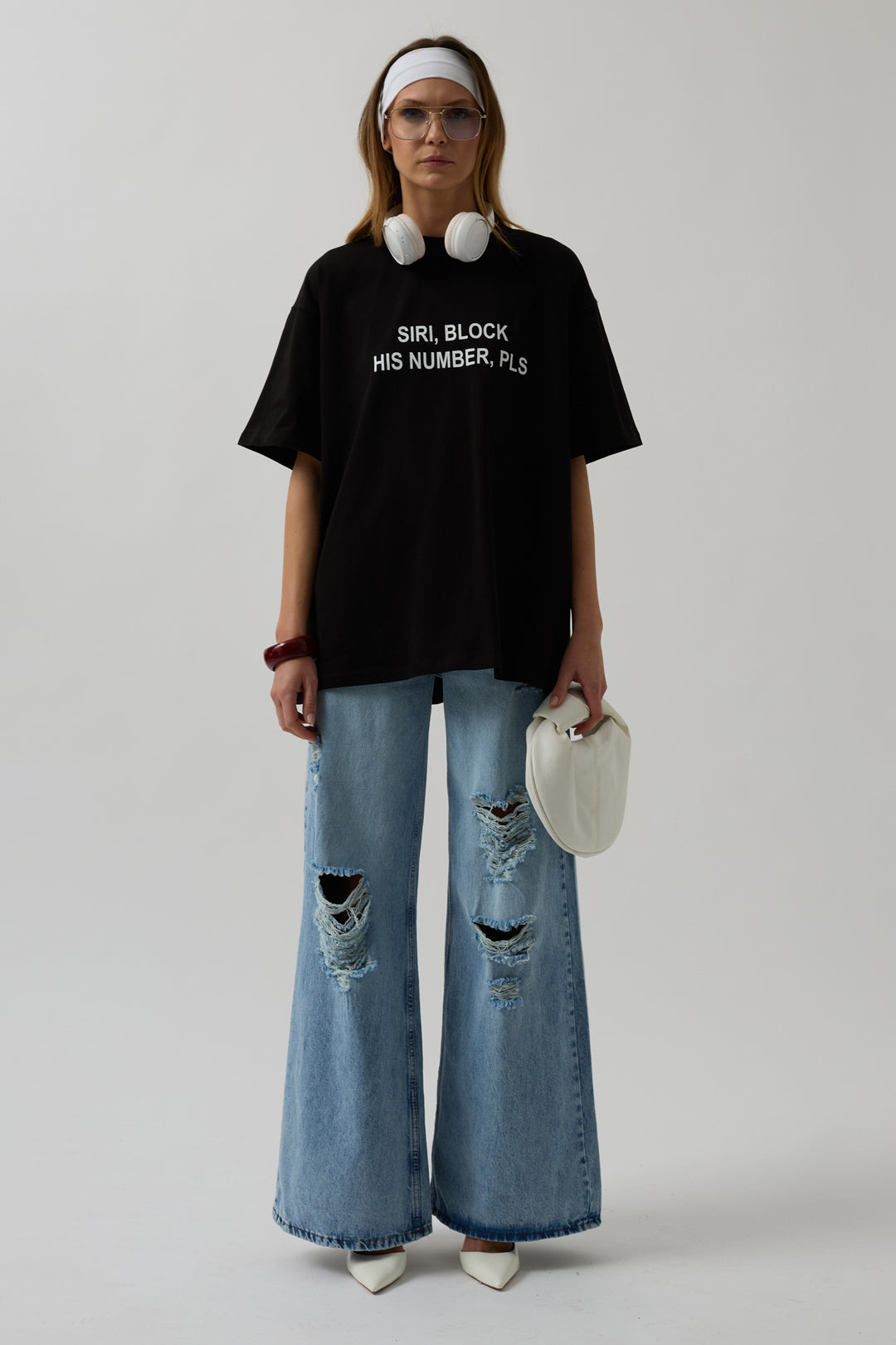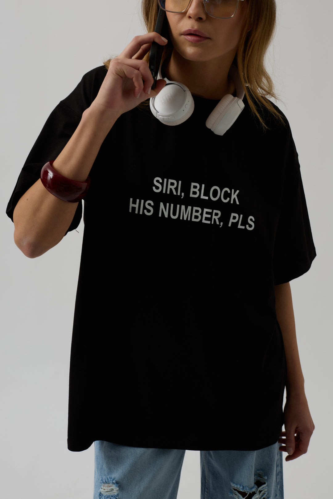 Siri Ön Baskılı Oversize Siyah T-Shirt