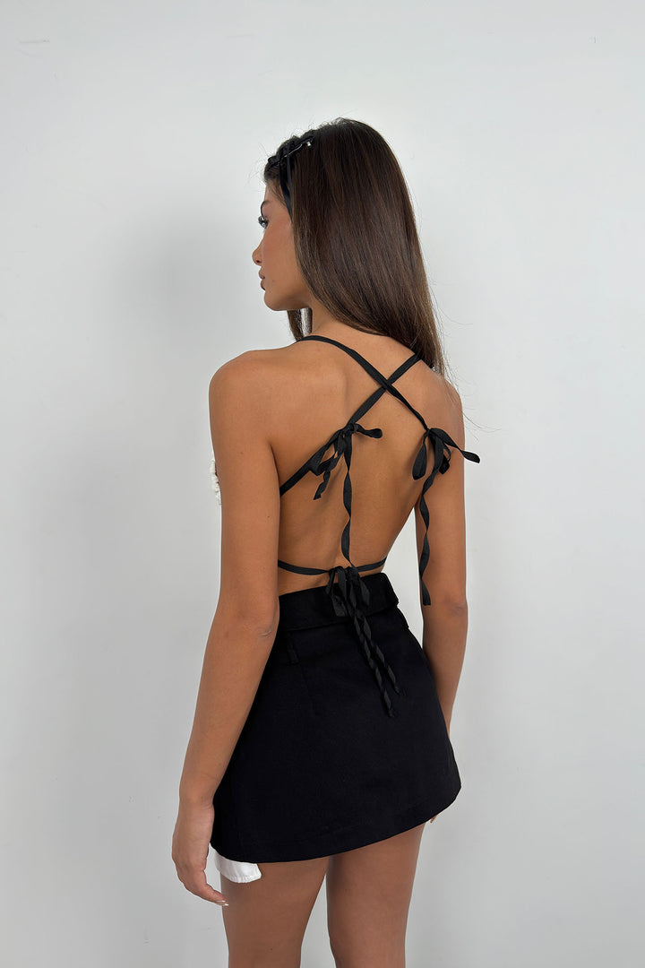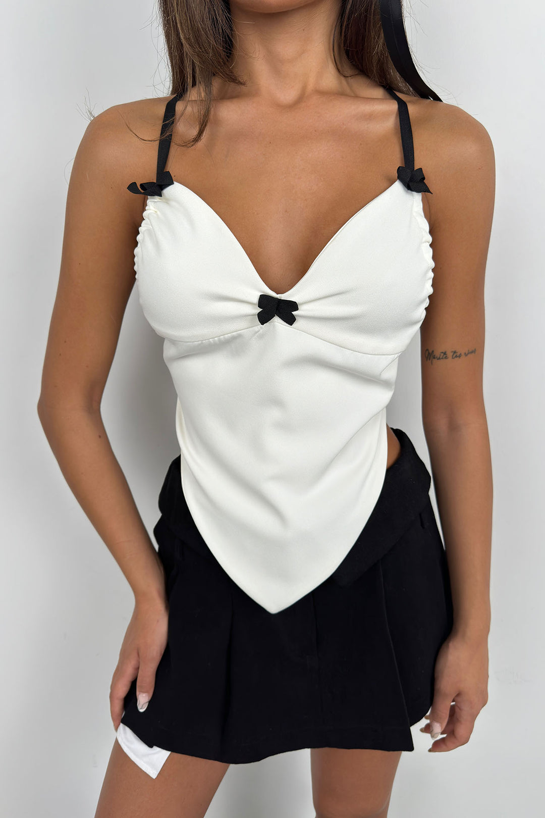 Ön Büzgü Detaylı, V Yaka, Askılı, Sırt Bağlamalı, Bluz