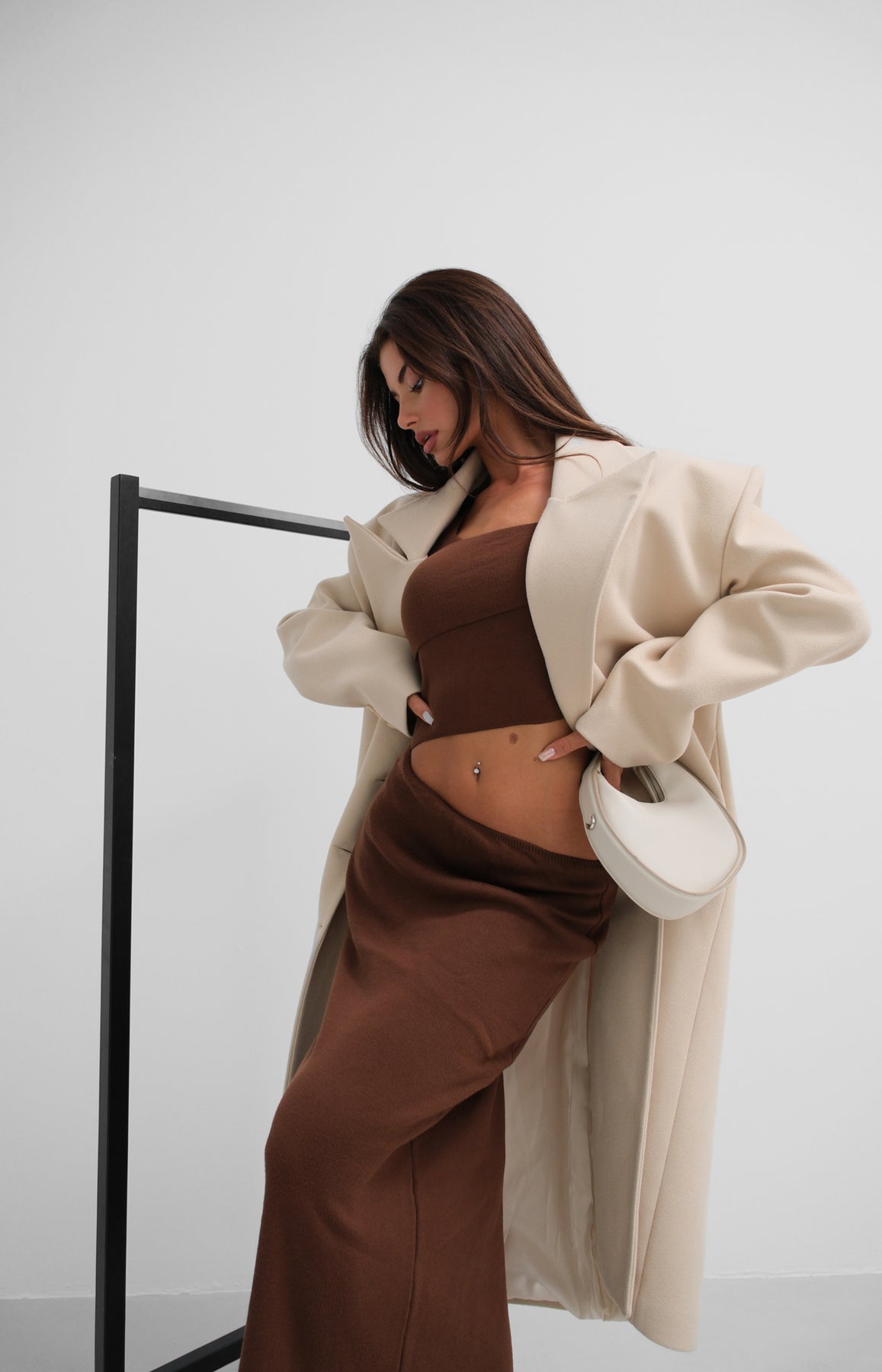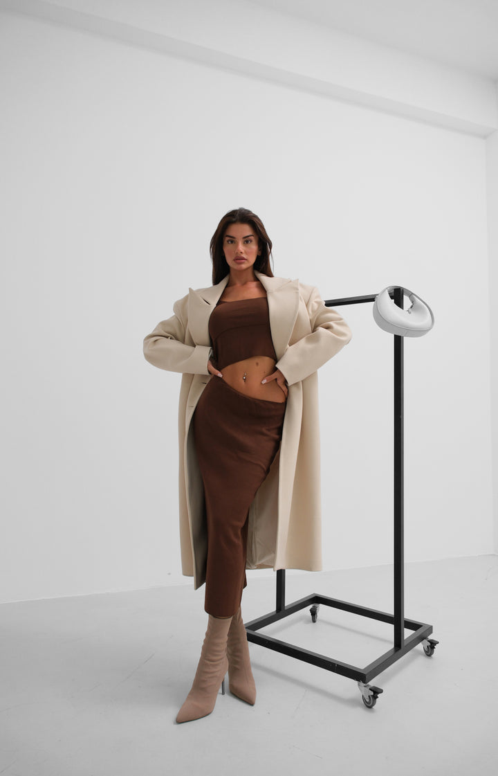 Oversize Bej Kaşe Kaban