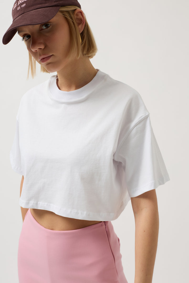 Pamuklu Kumaşlı, Rahat Kesim, Omuz Dikişi Detaylı T-Shirt