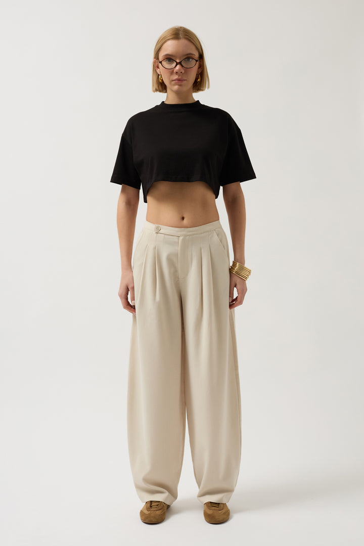 Pamuklu Kumaşlı, Rahat Kesim, Omuz Dikişi Detaylı T-Shirt
