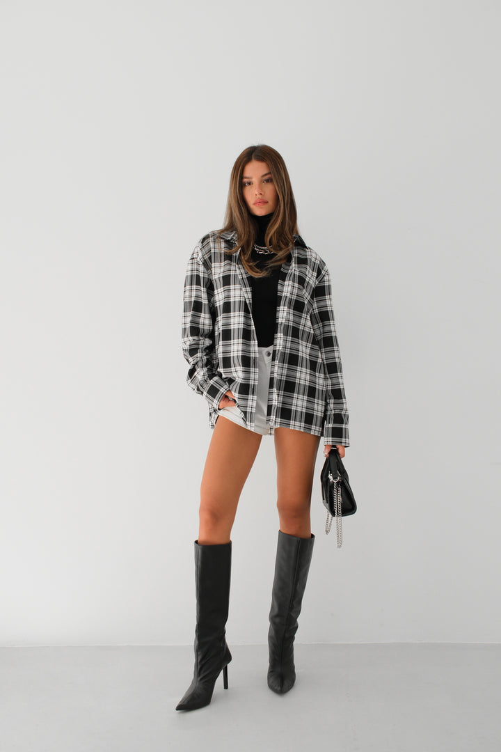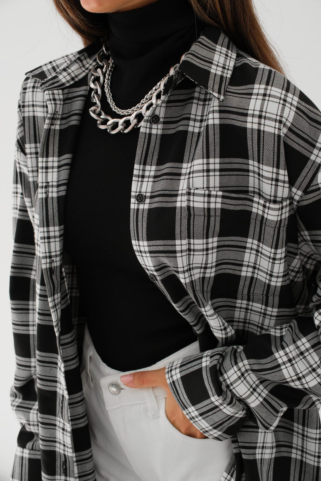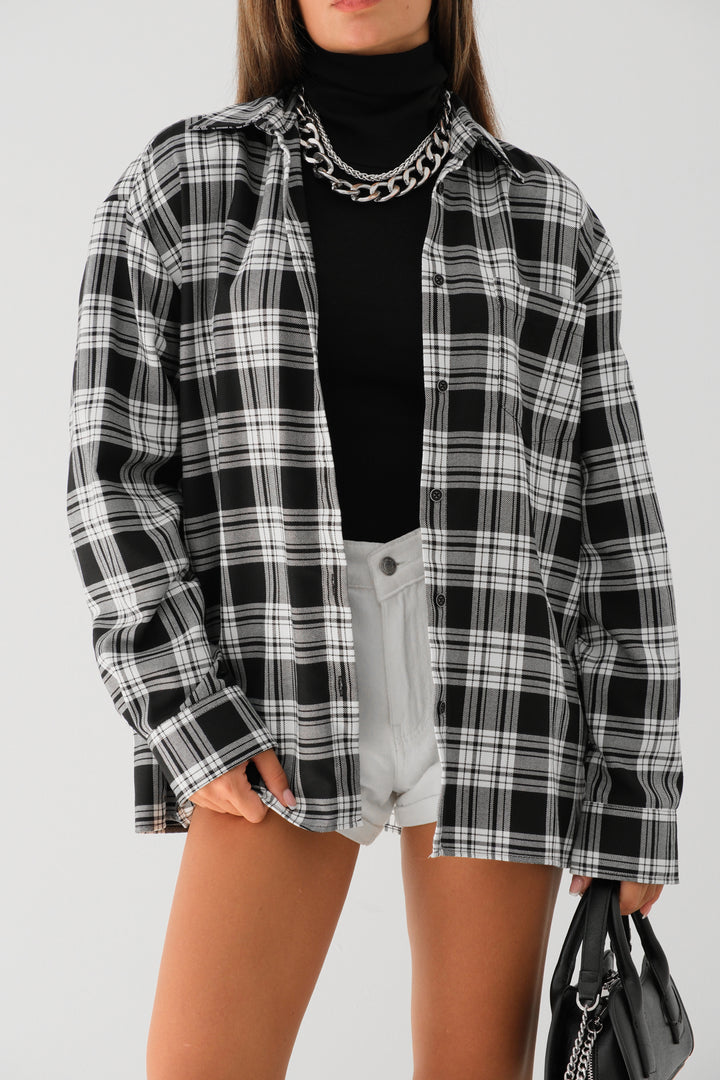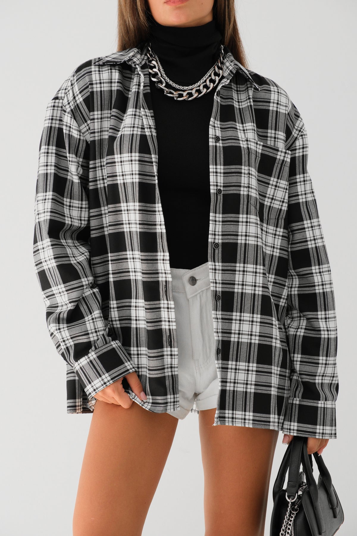 Oversize, Uzun Kollu, Düğmeli, Ekose, Uzun Gömlek
