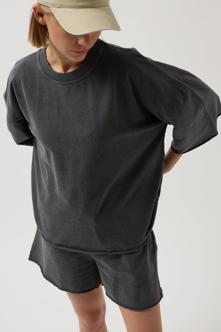 Oversize Lazer Kesim Bisiklet Yaka Antrasit T-Shirt