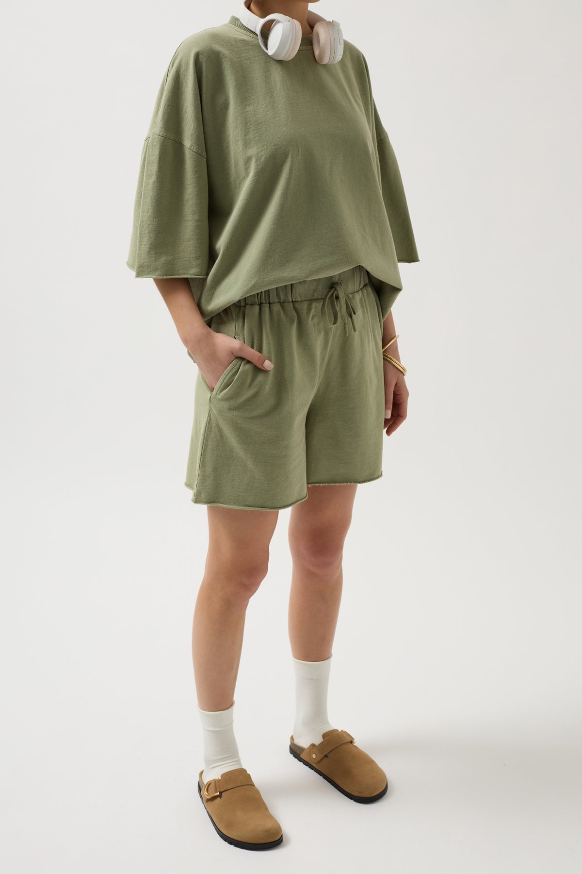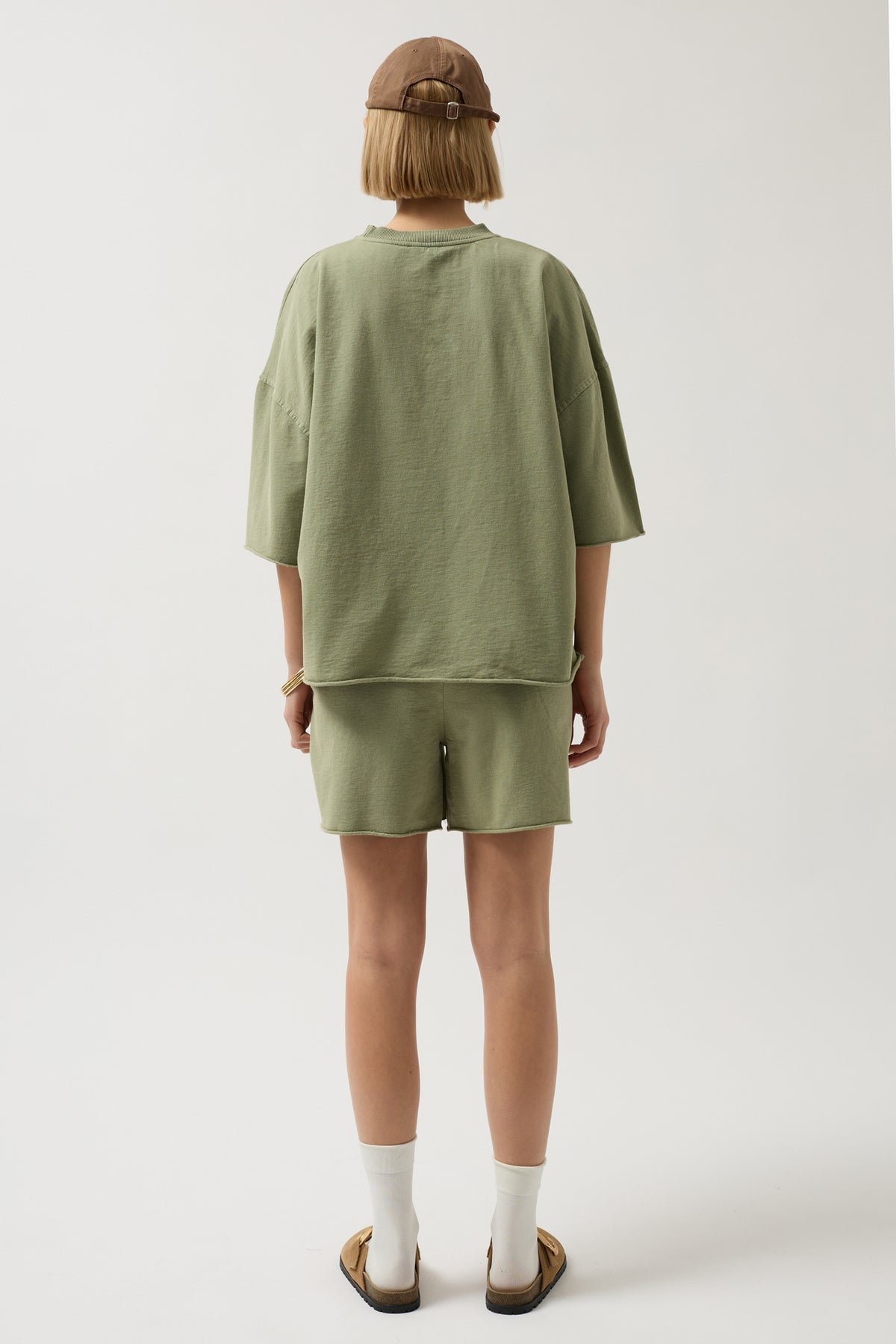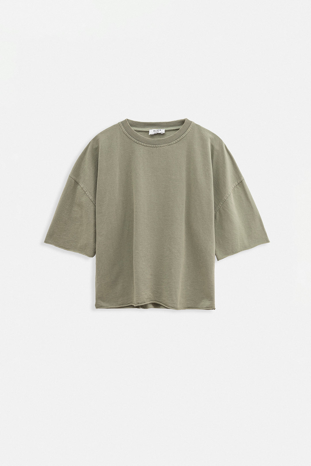 Oversize Lazer Kesim Bisiklet Yaka Haki T-Shirt