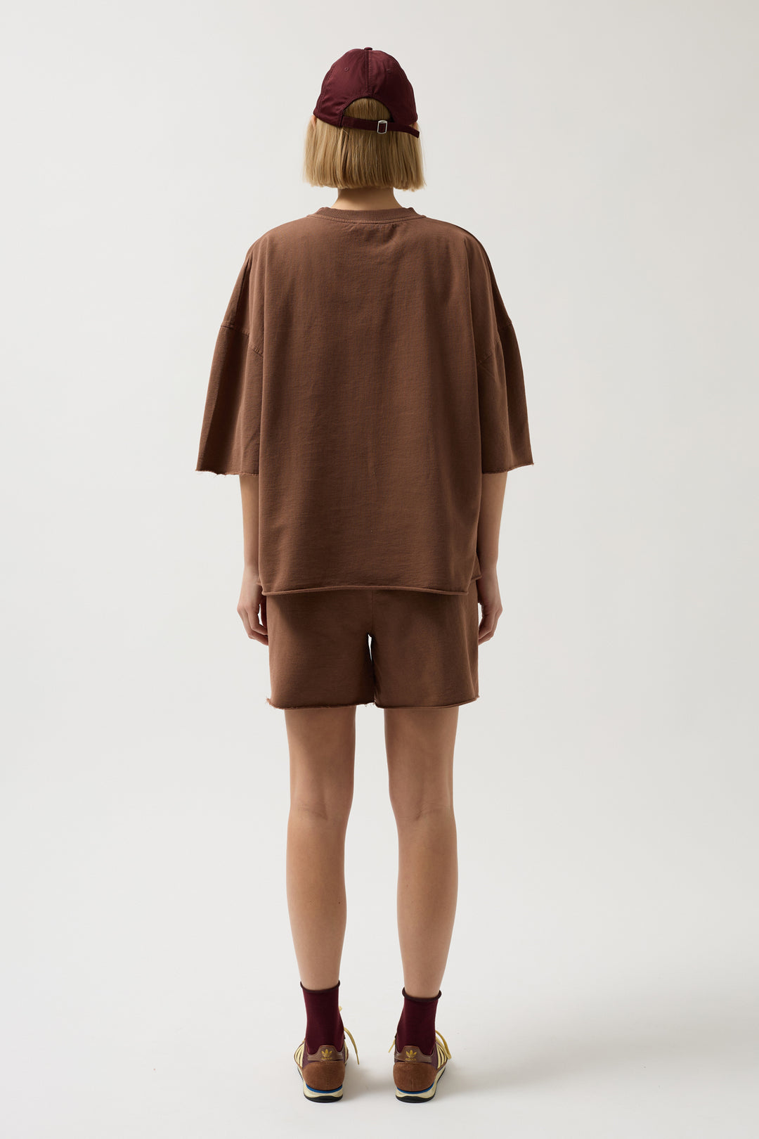 Oversize Lazer Kesim Bisiklet Yaka Kahverengi T-Shirt