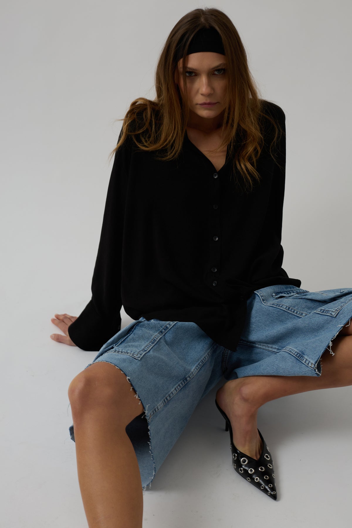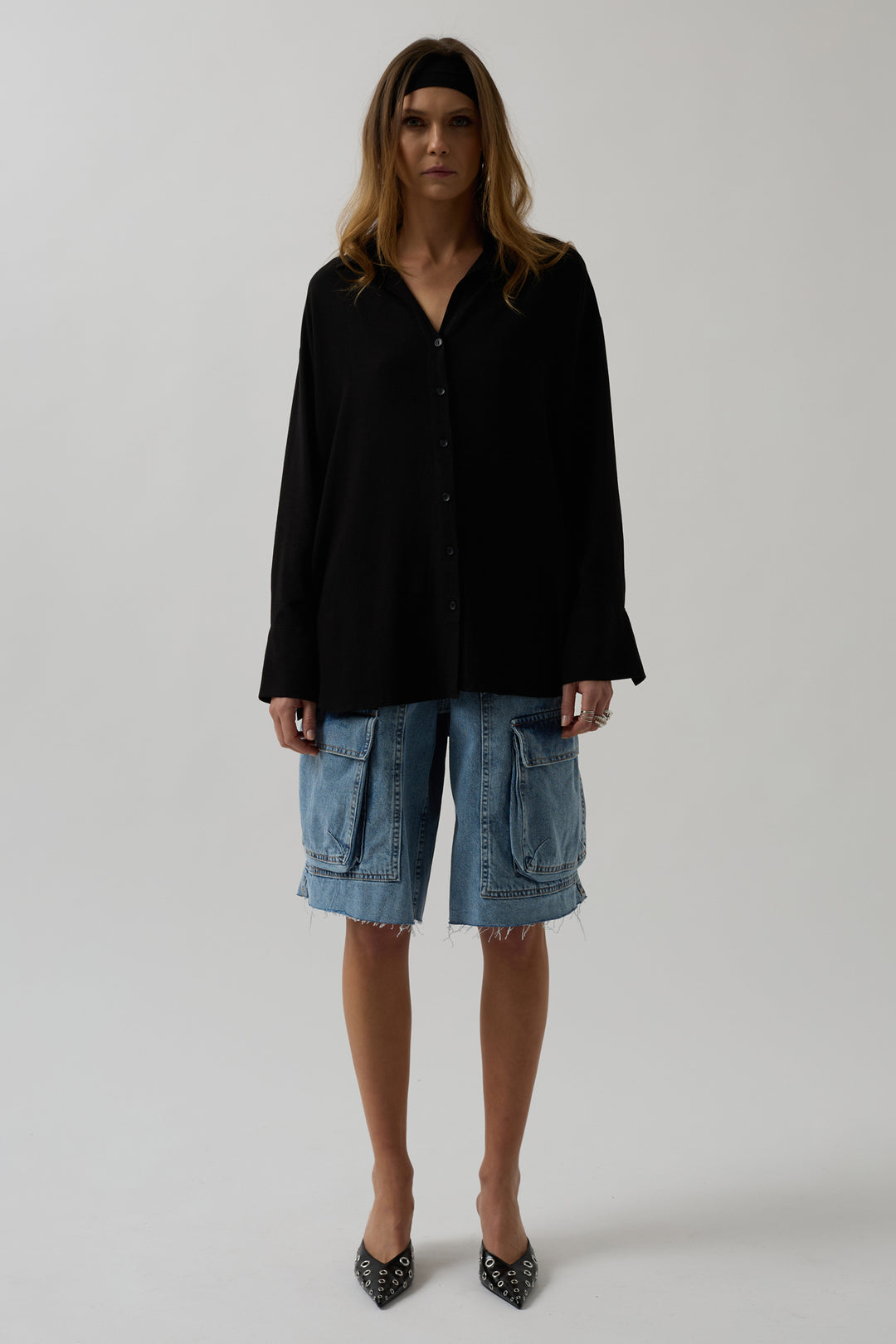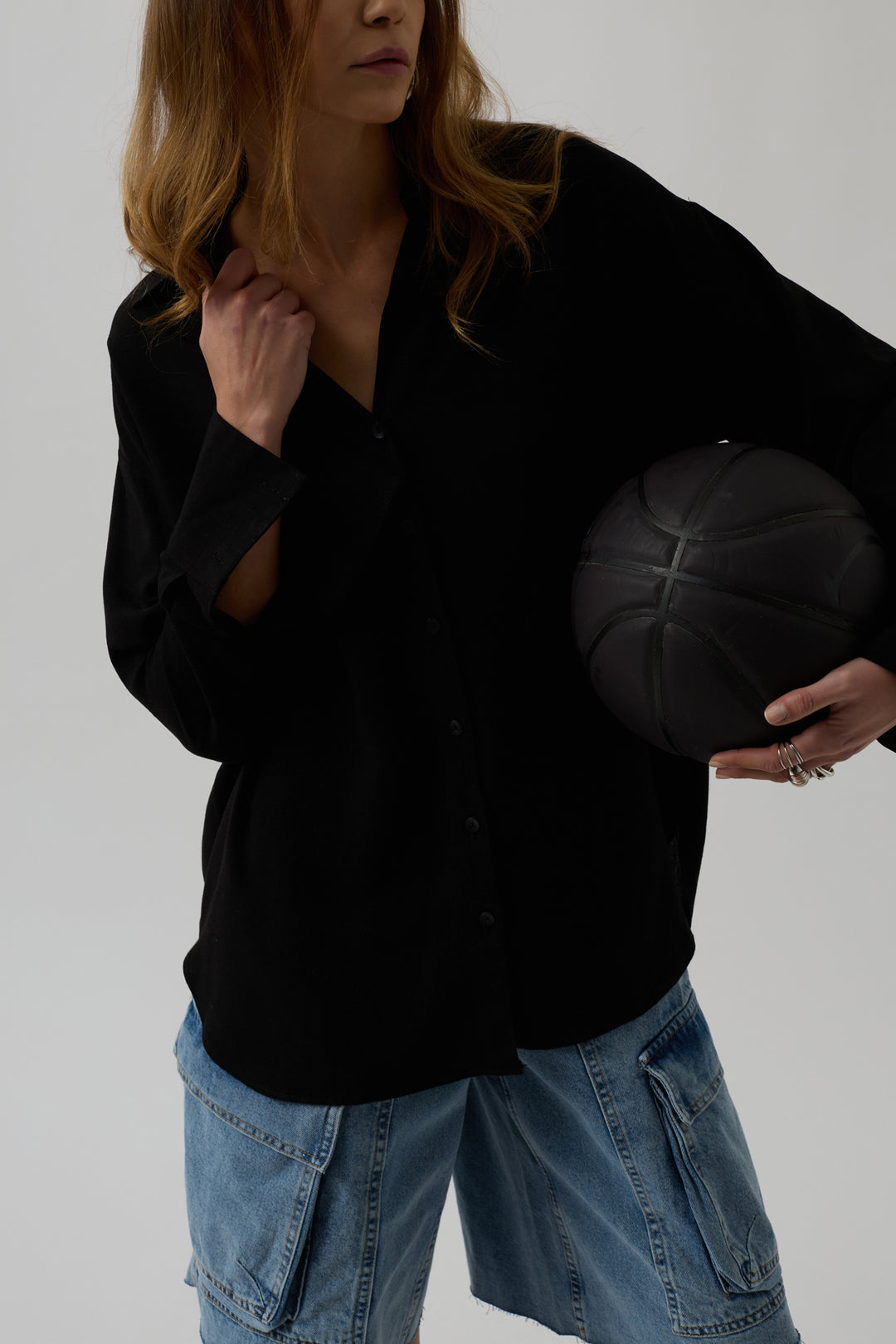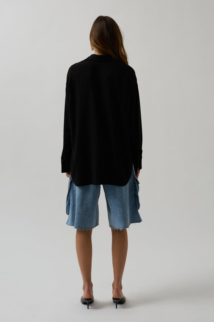 Oversize Siyah Keten Gömlek