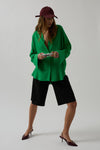 Oversize, Keten, Manşet Detaylı, Uzun Kollu, Düğmeli, Gömlek