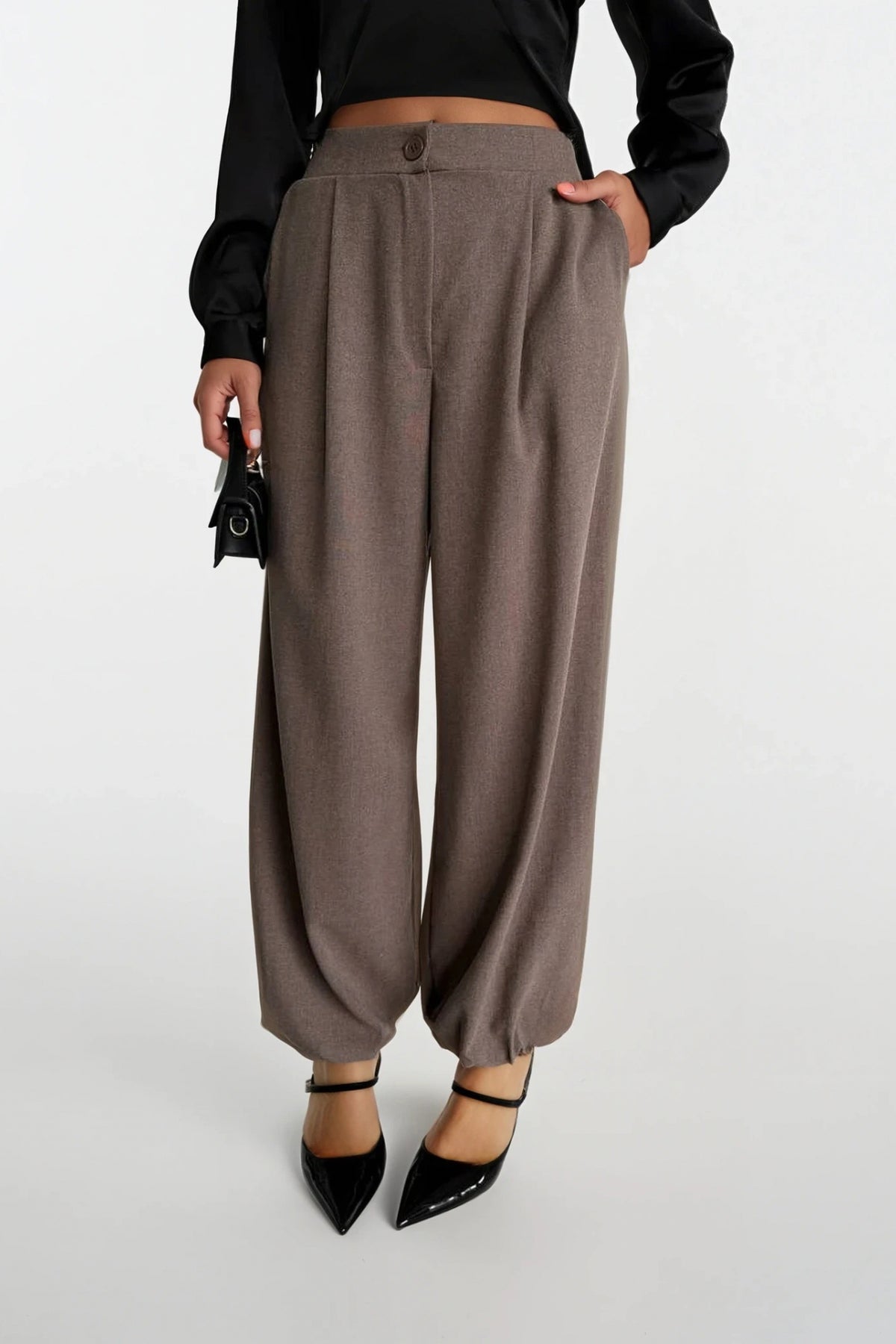 Paça Lastik Detay Vizon Pileli Pantolon