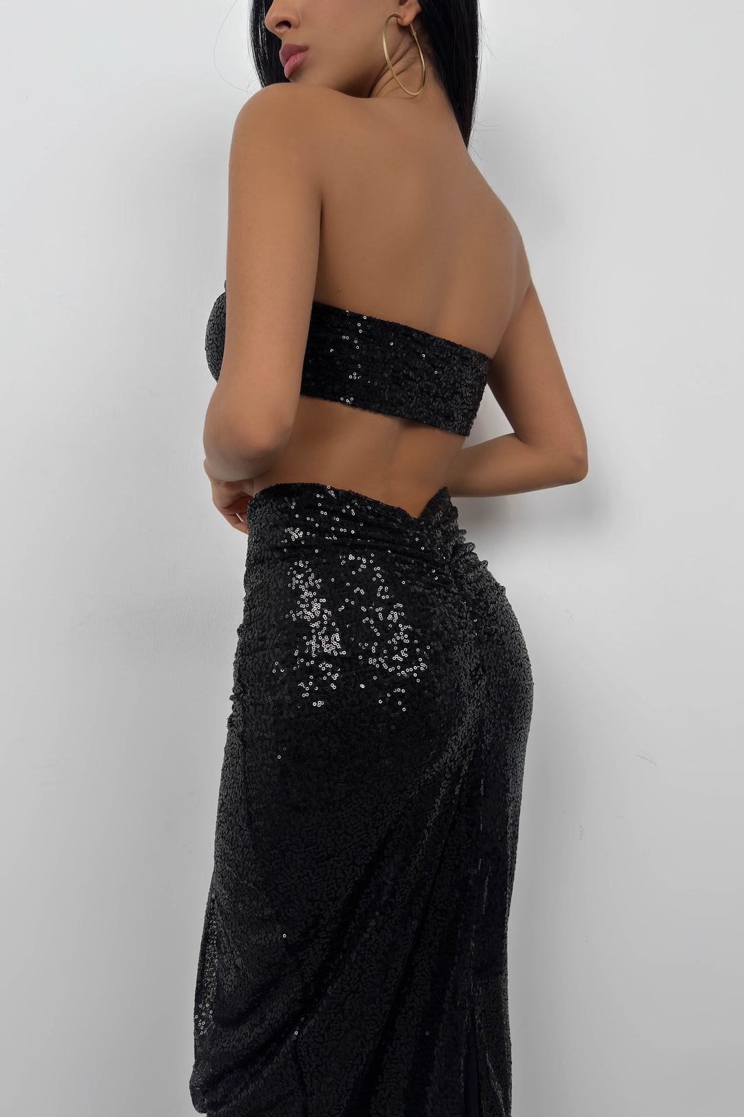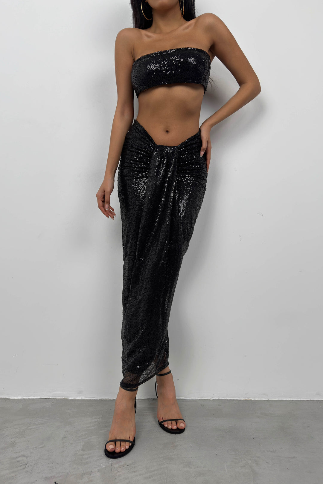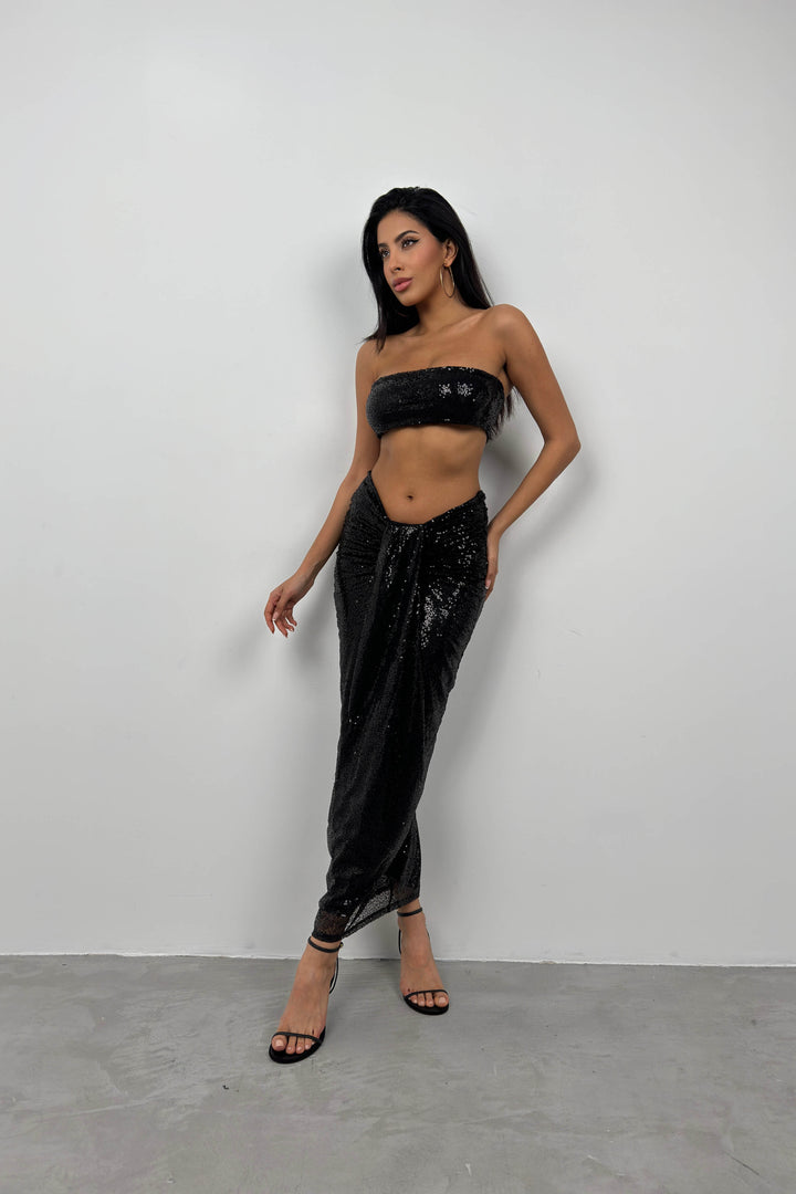 Payetli, Straplez, Crop ve Detaylı, Midi Boy, Payetli Etek, Takım