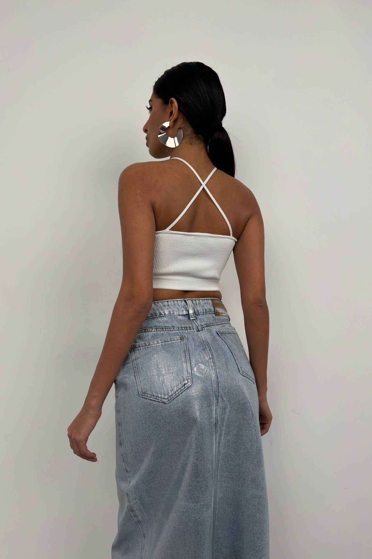 Pencere Detay, İnce Askılı, Fitilli Triko Örgü, Vücuda Yapışan, Crop