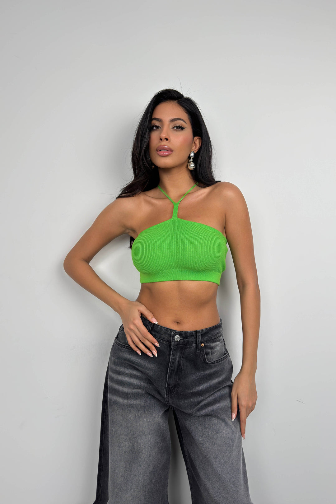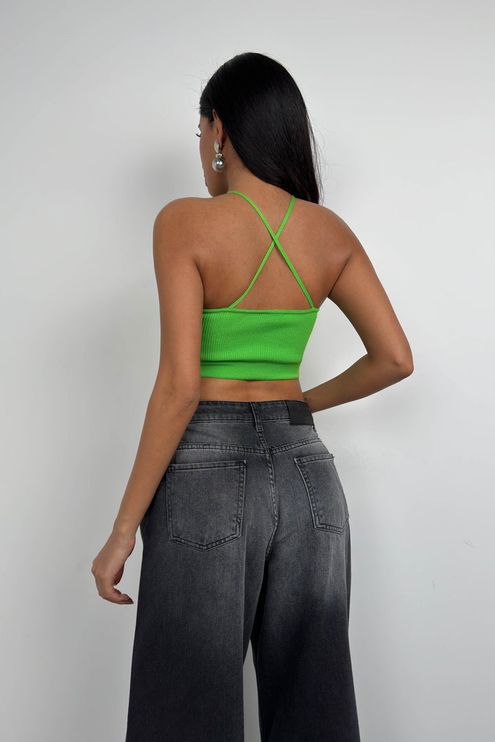 Pencere Detay, İnce Askılı, Fitilli Triko Örgü, Vücuda Yapışan, Crop