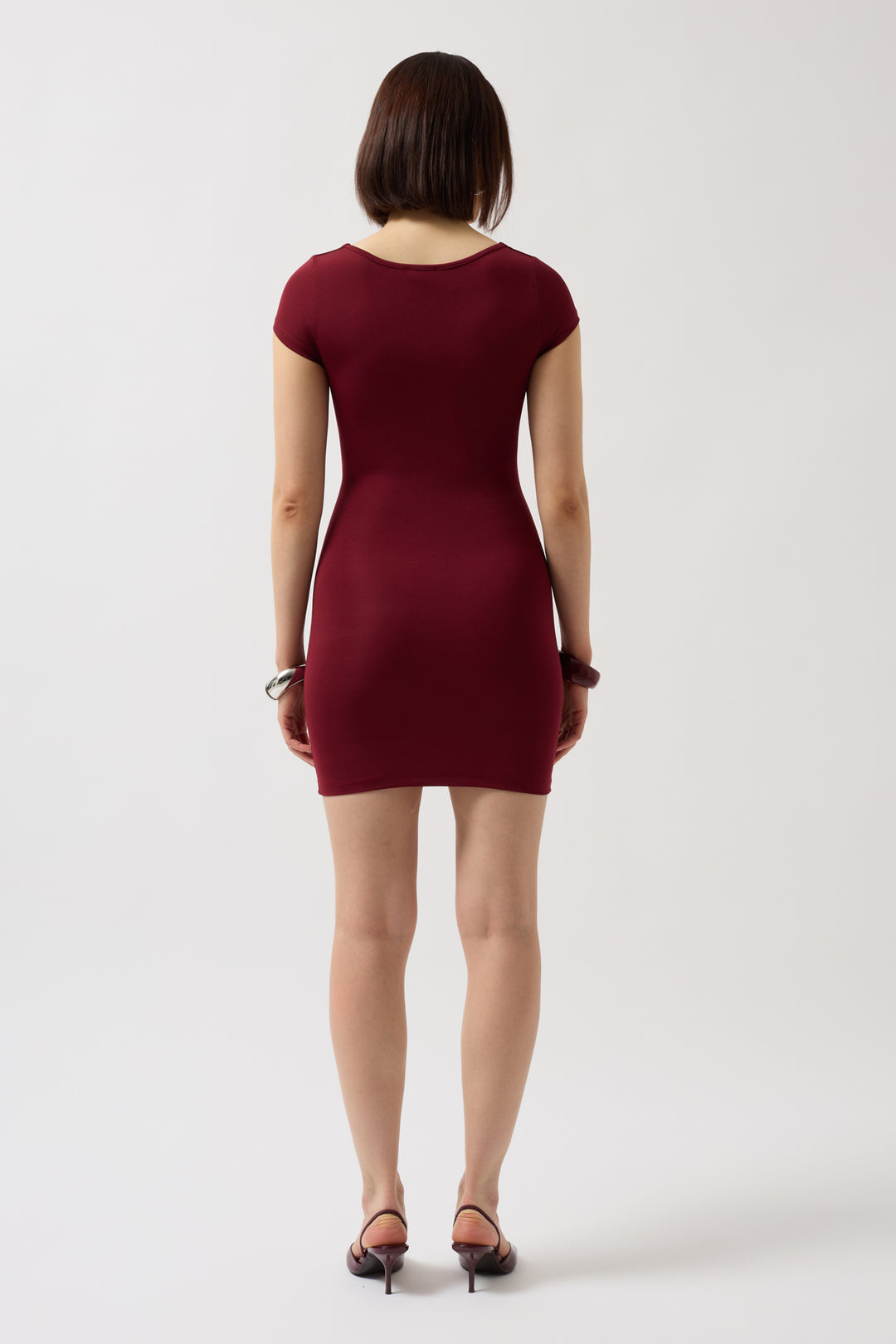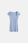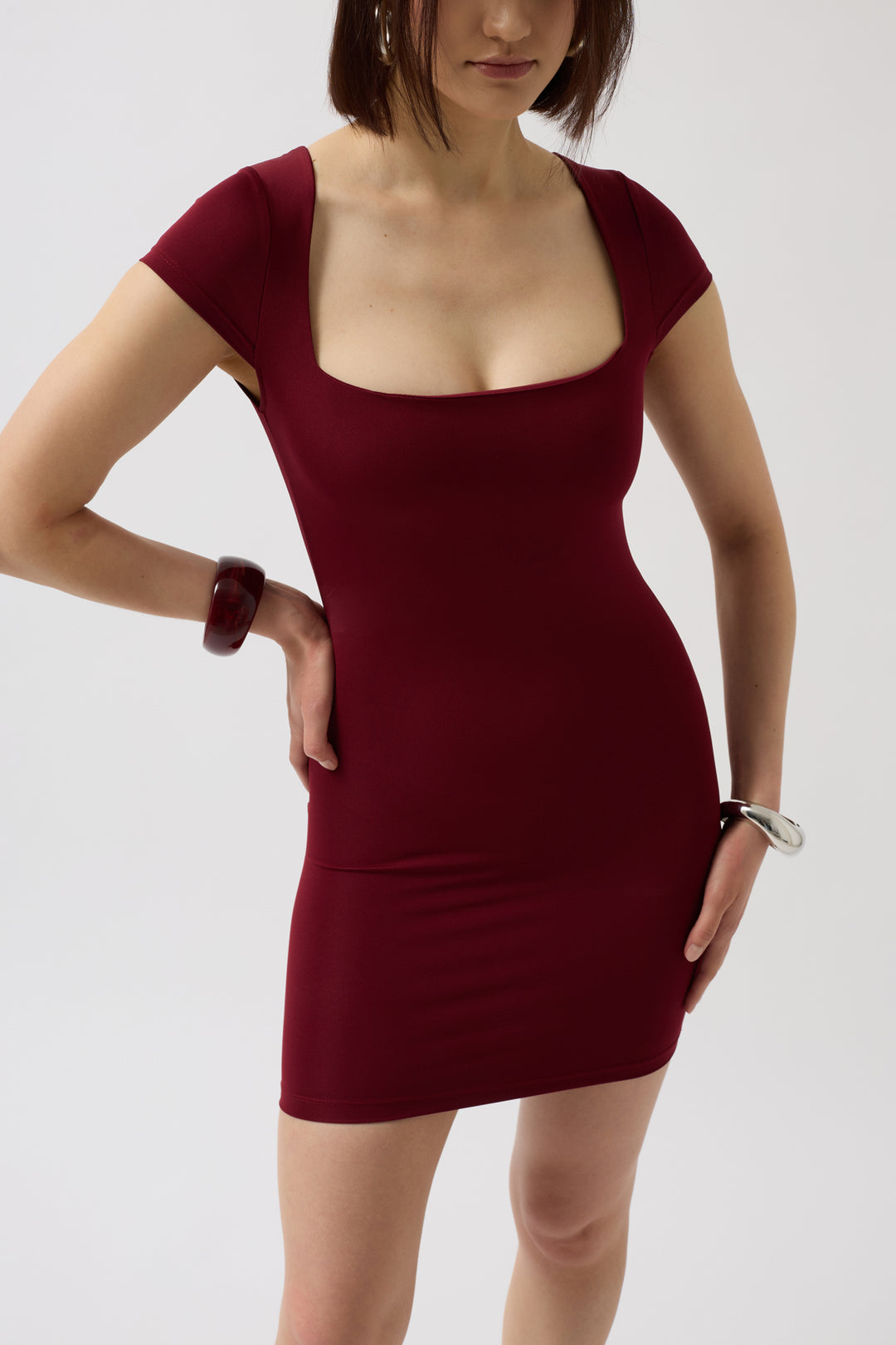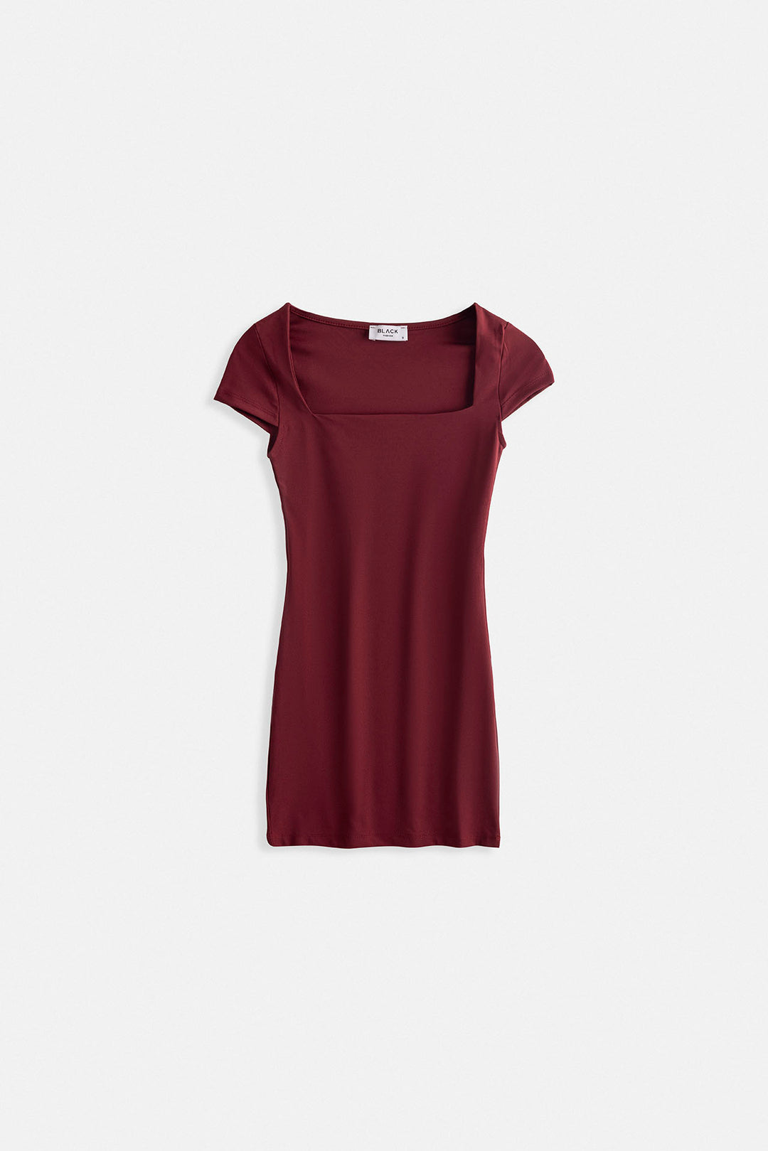 Kare Yaka, Likralı Ve Esnek Kumaşlı, Kısa Kol Mini Elbise