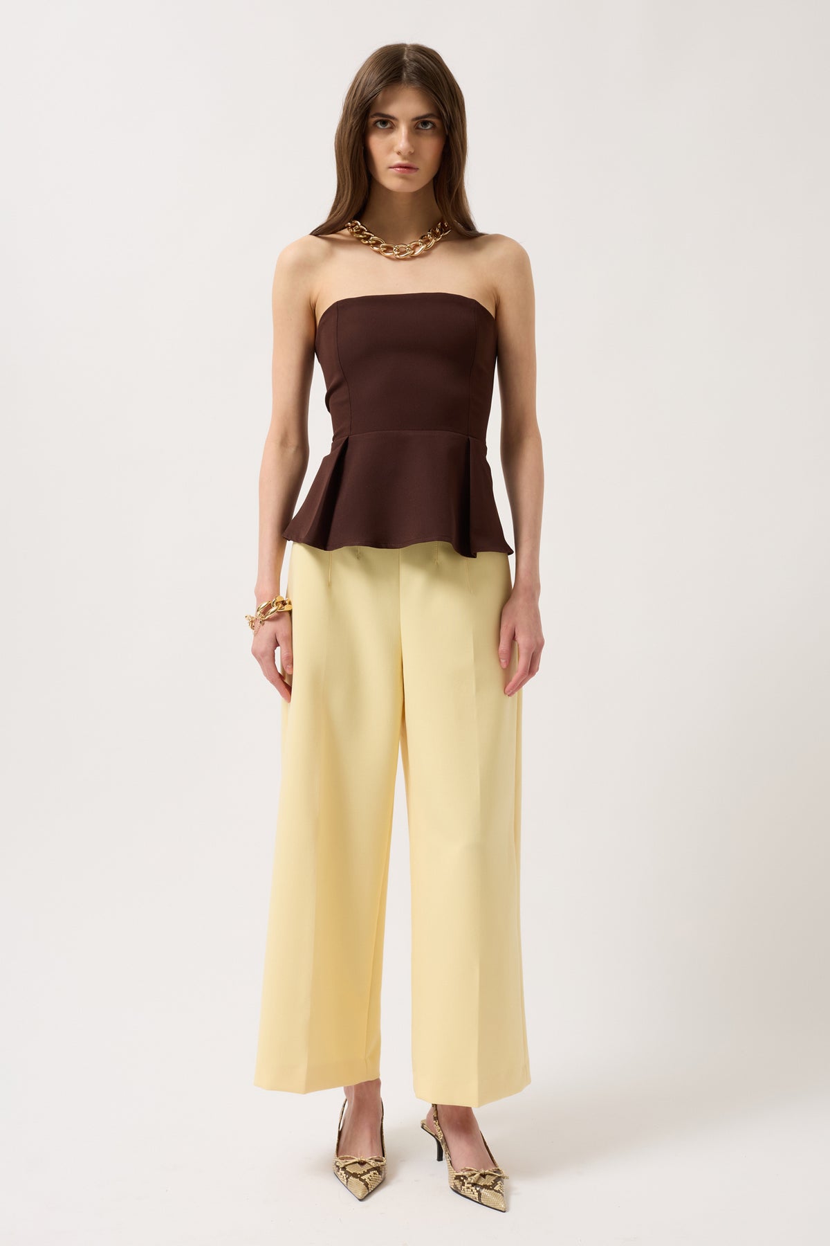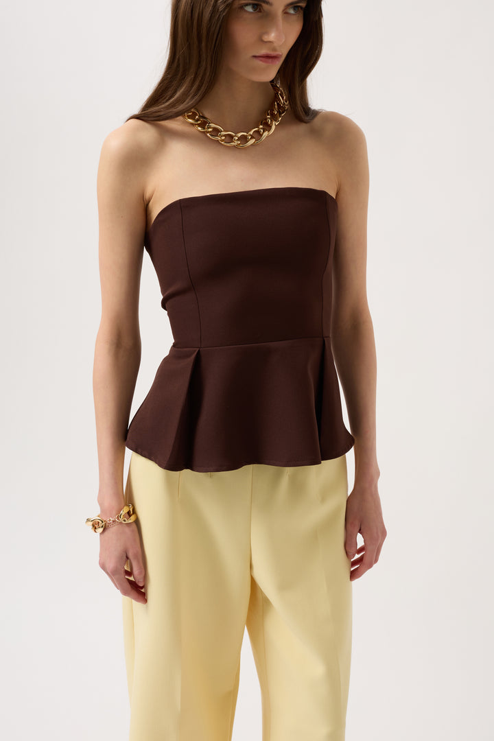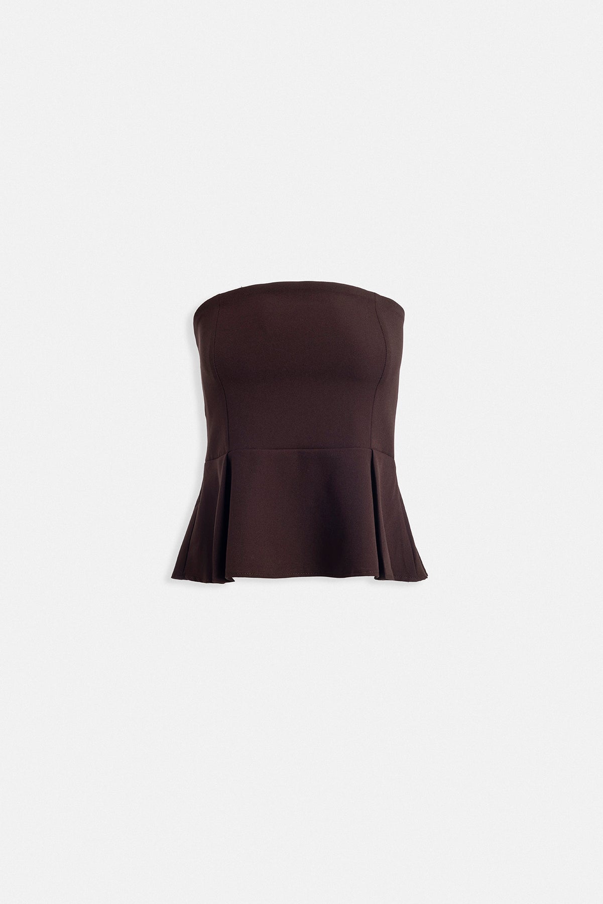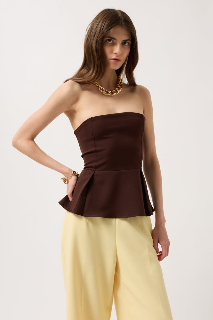 Yandan Fermuarlı, Pileli Straplez Bluz