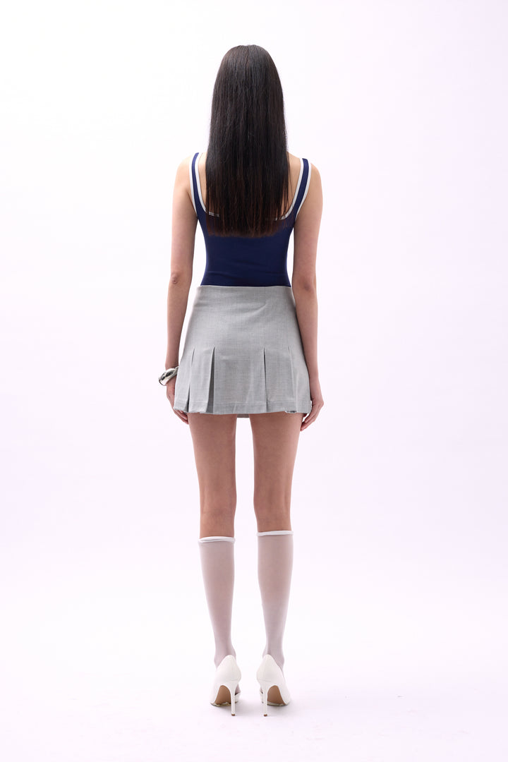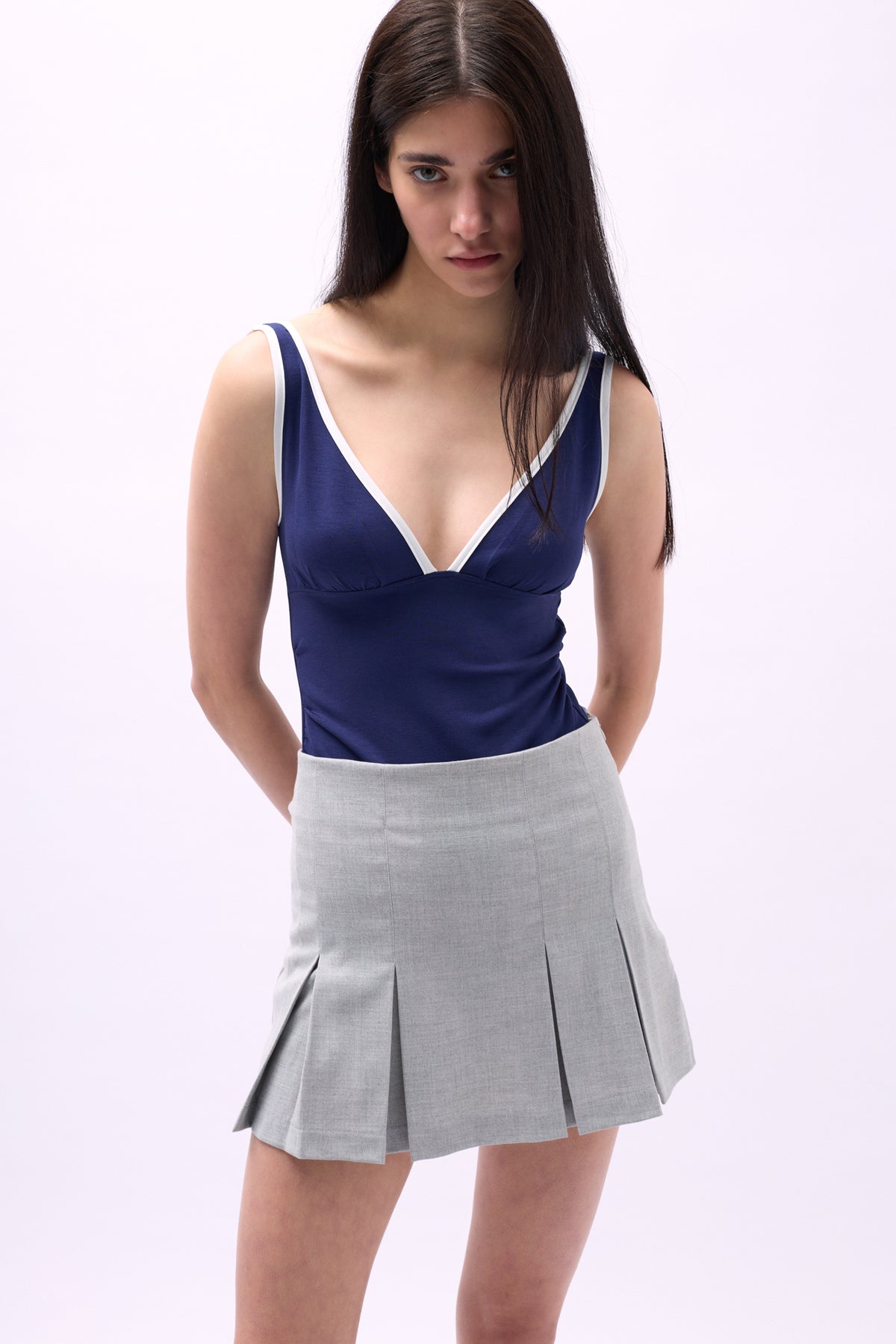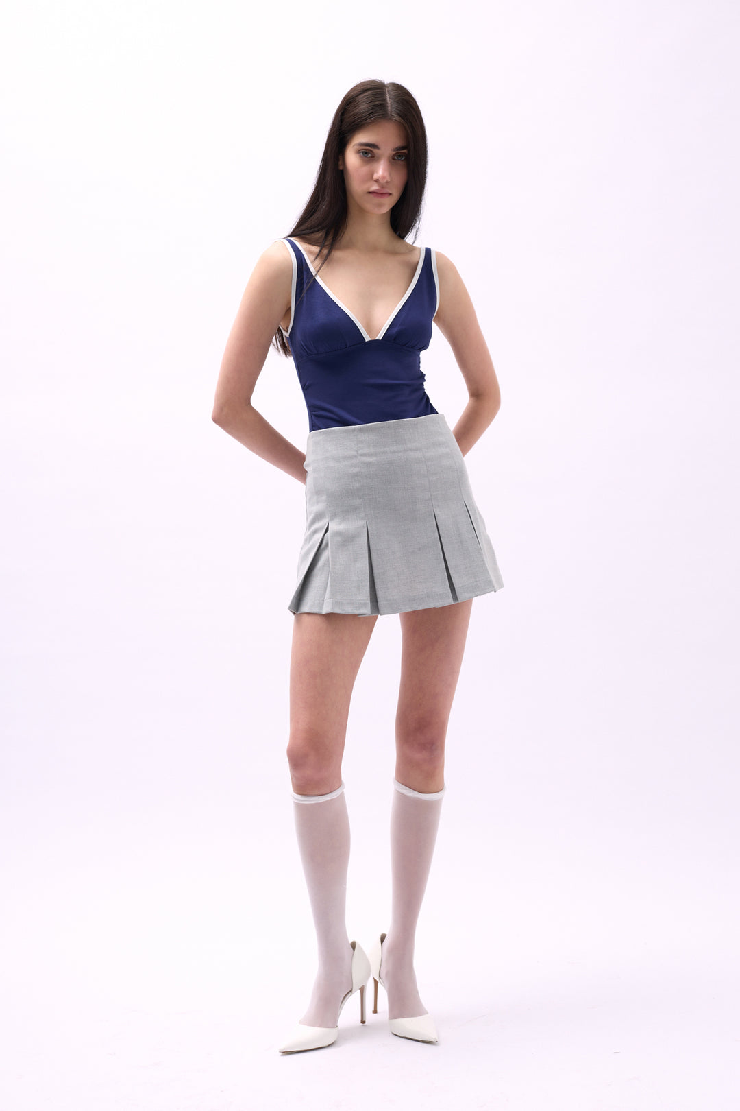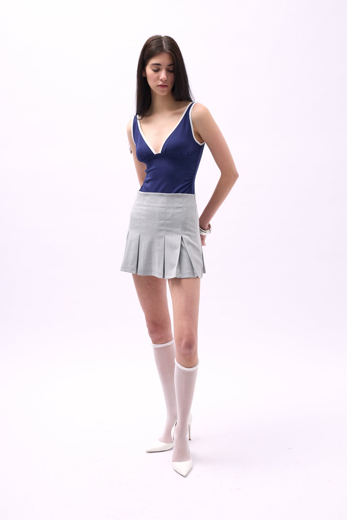Yandan Fermuarlı, Pileli Dar Kalıp, Viskon Karışımlı Mini Etek