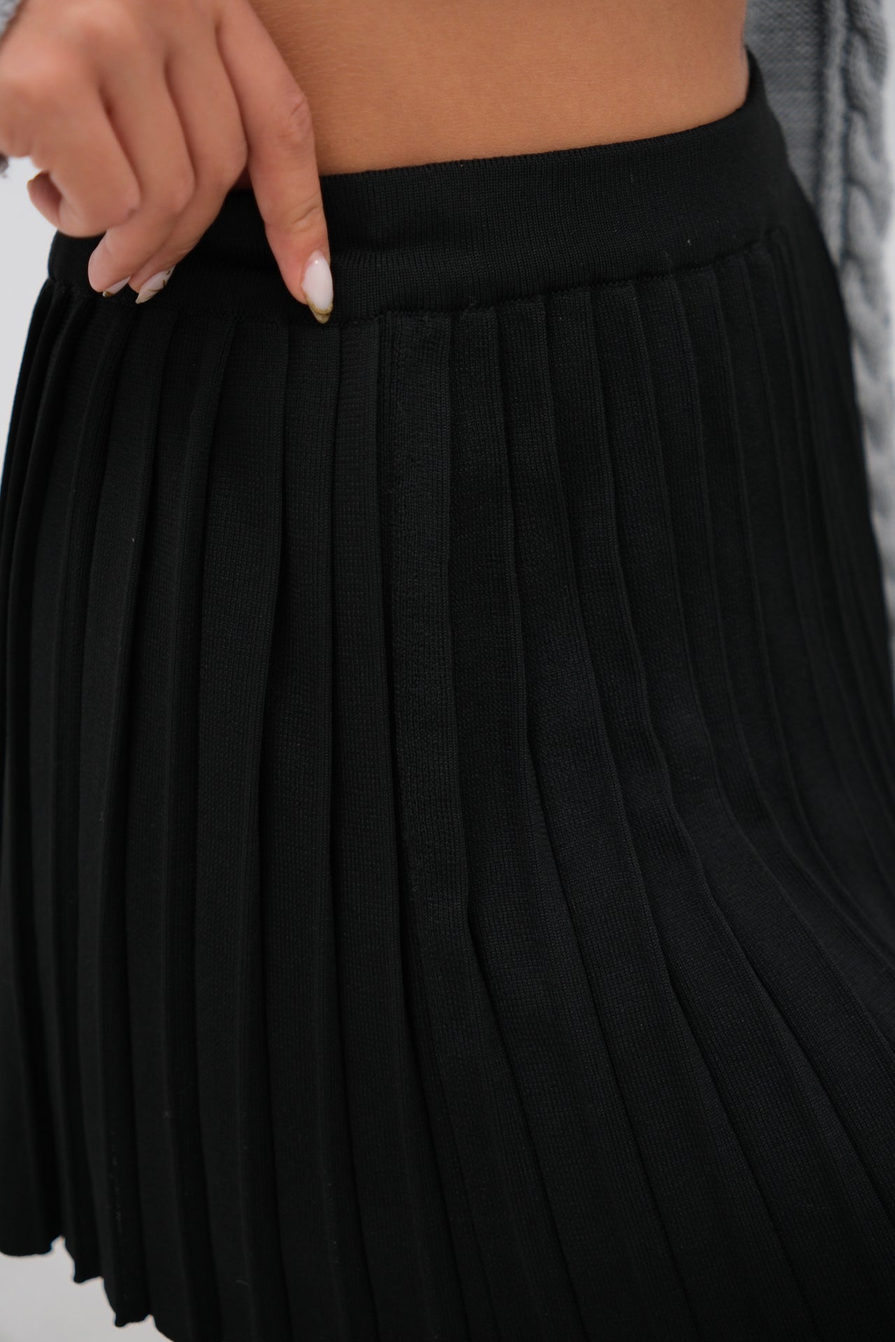 Yüksek Bel, Mini, Piliseli, Triko Örgü, Etek