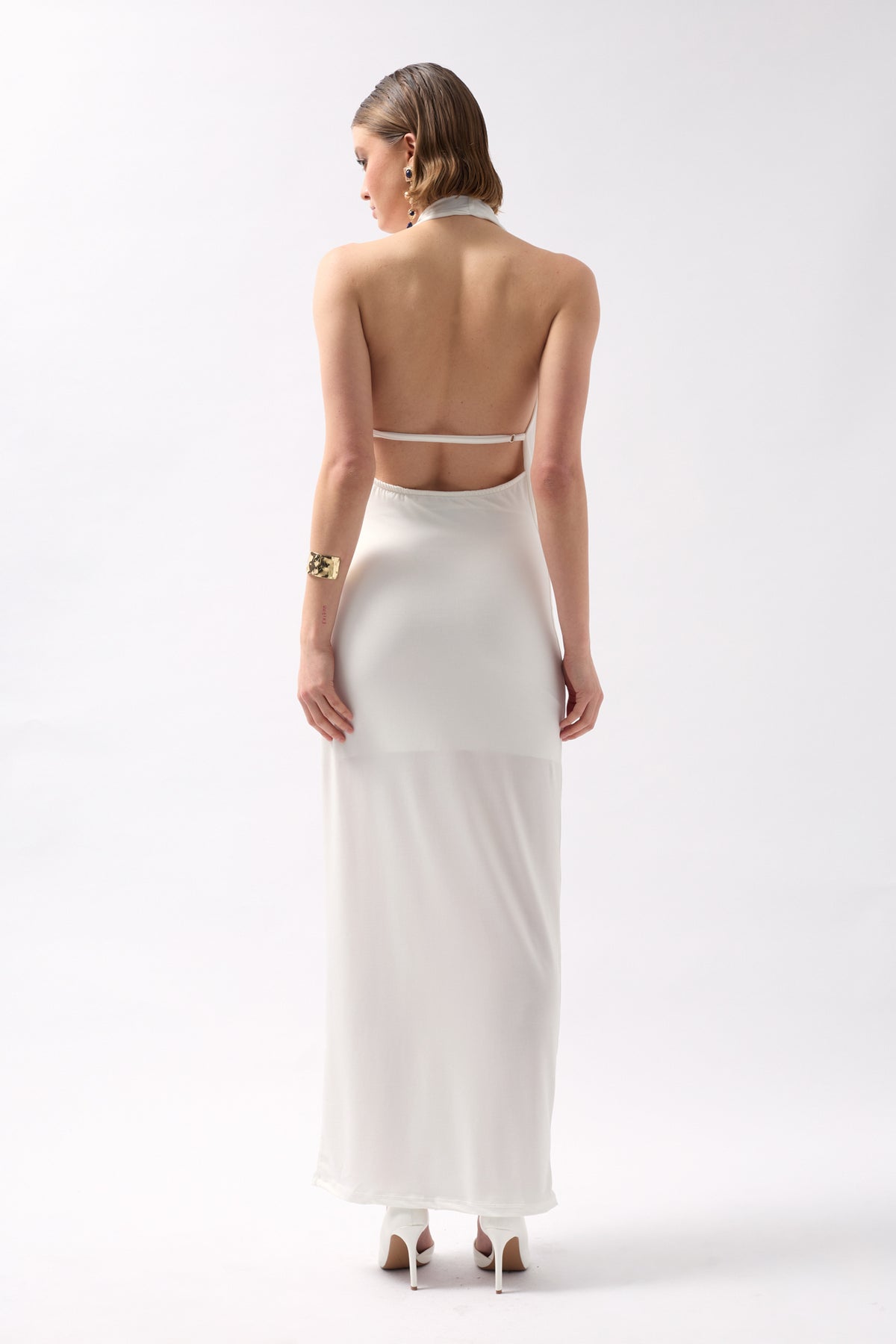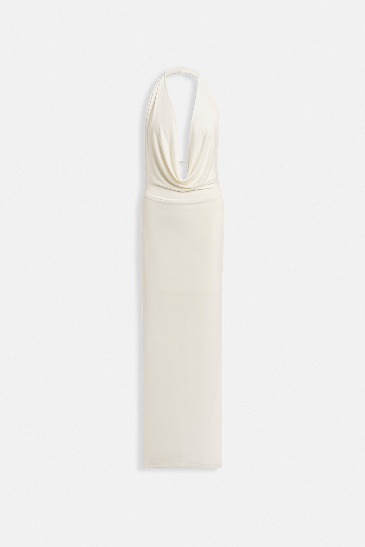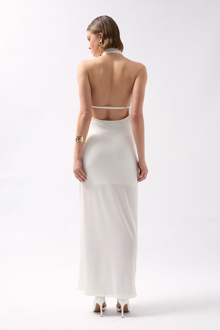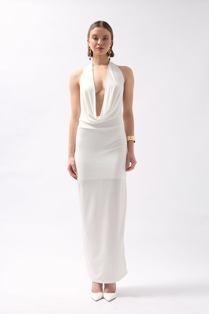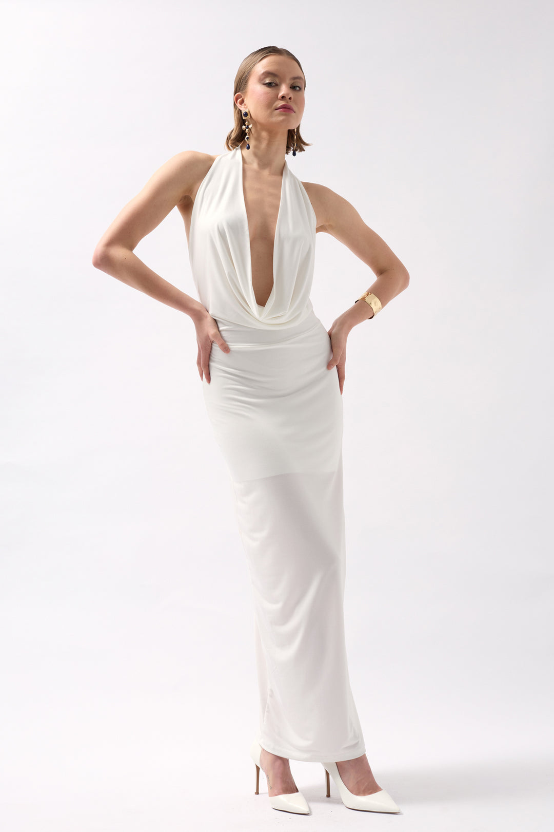 Likralı Ve Esnek Kumaşlı, Astarlı, Derin Dekolte Görünümlü, Maxi Boy Elbise