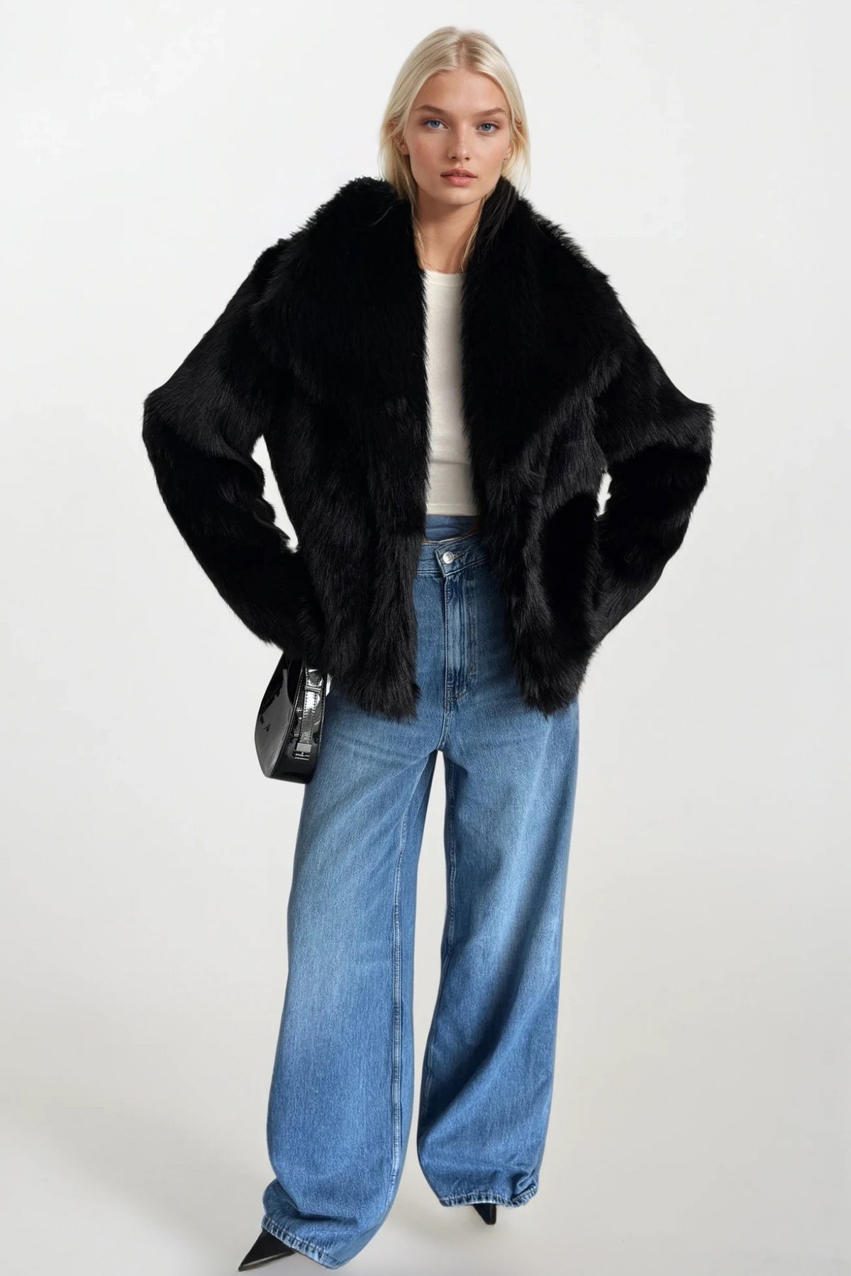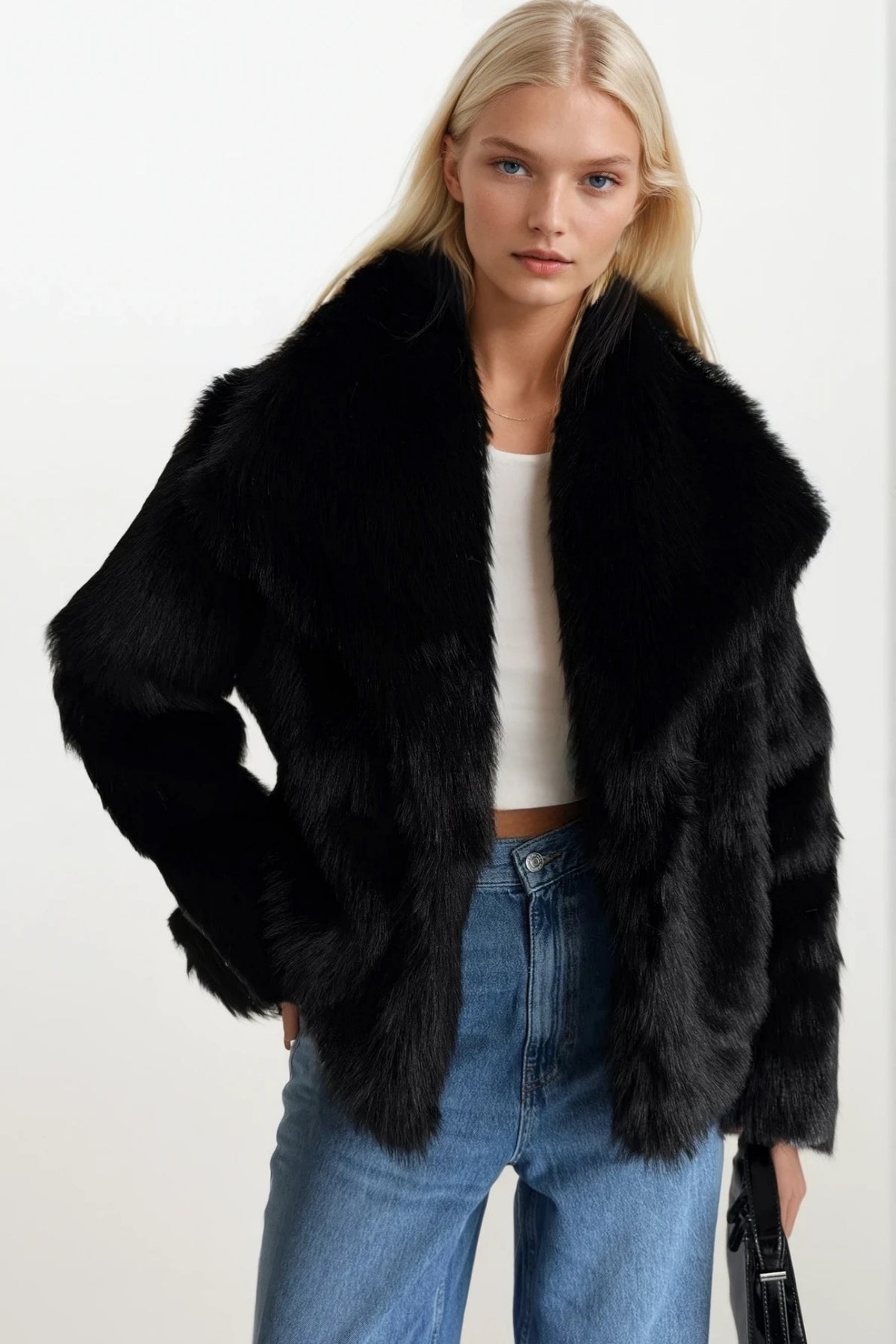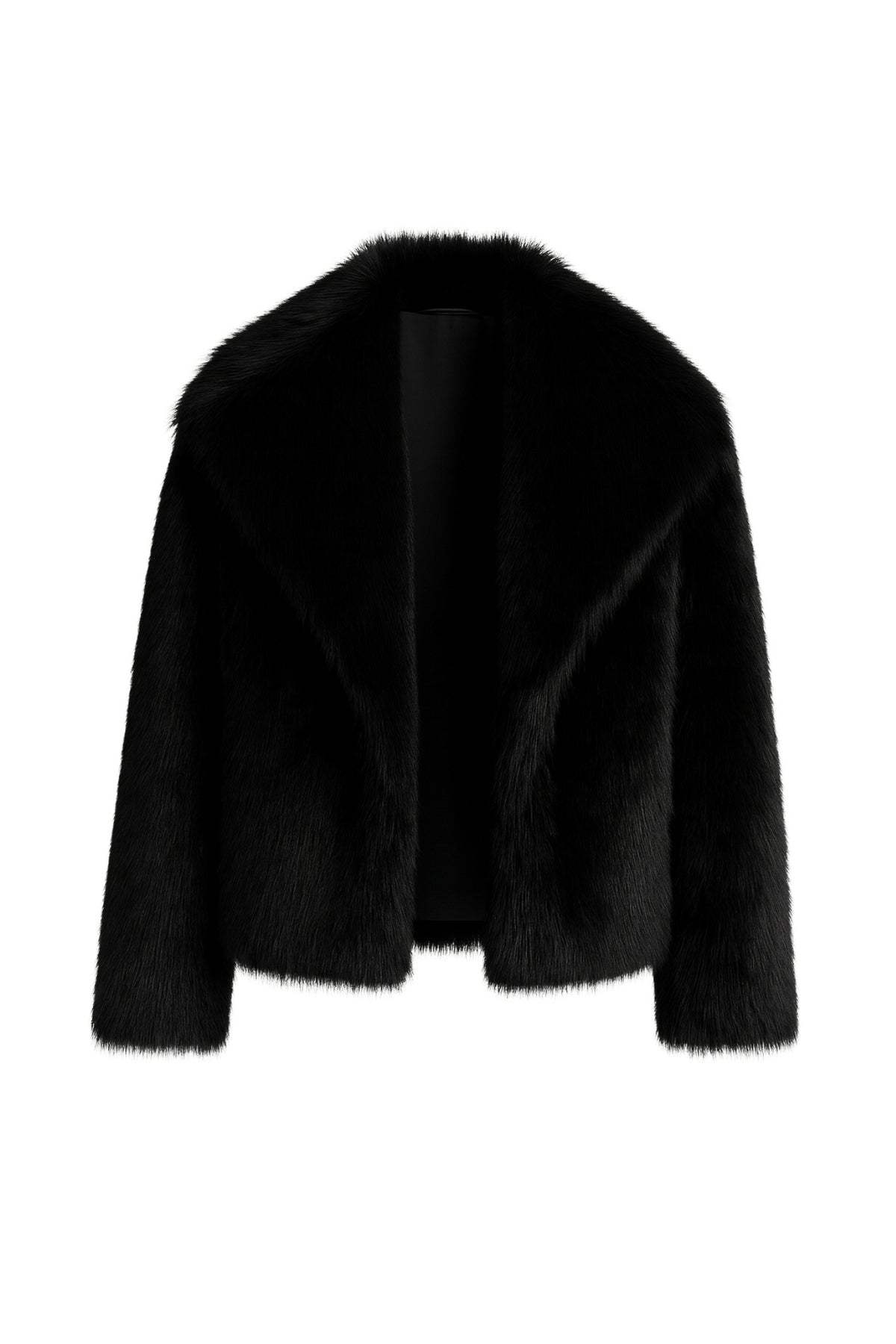 Şal Yaka Peluş Siyah Kürk