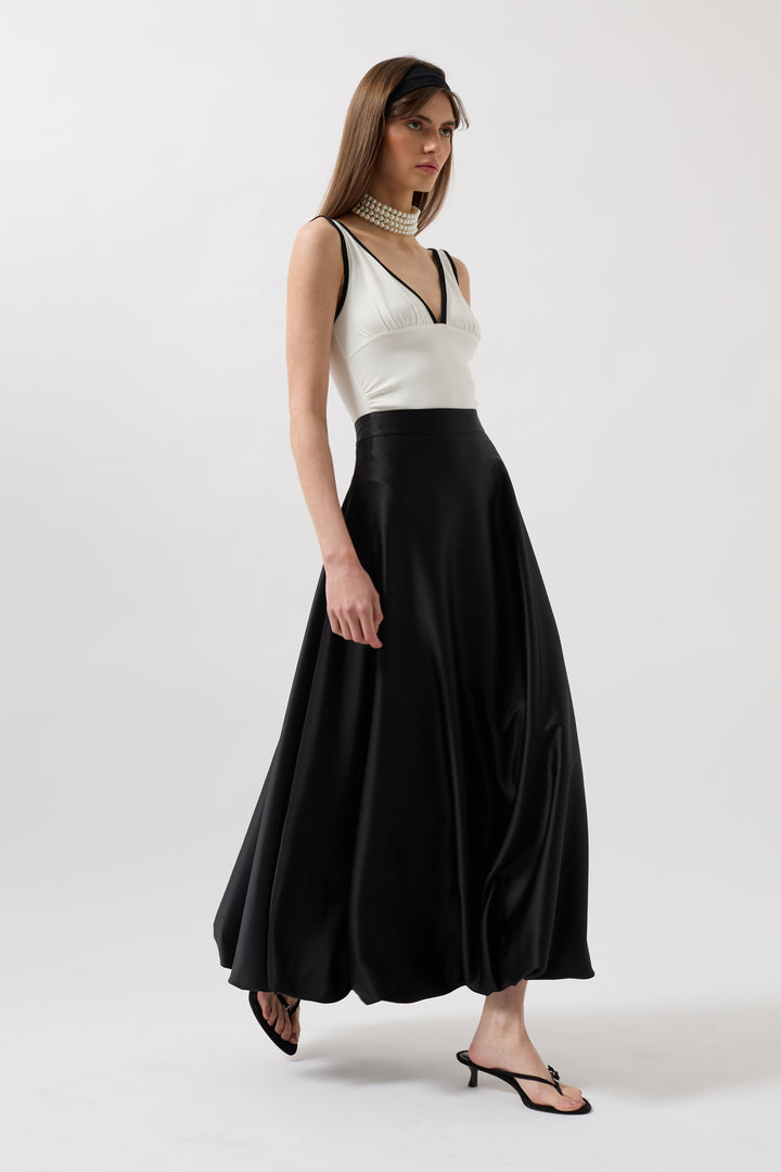 Yandan Gizli Fermuarlı, İçi Çift Kat Astarlı, Balon Form Uzun Etek