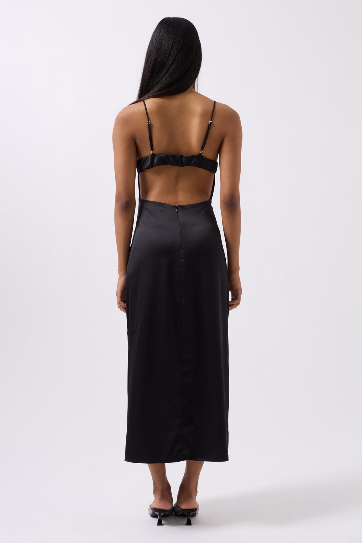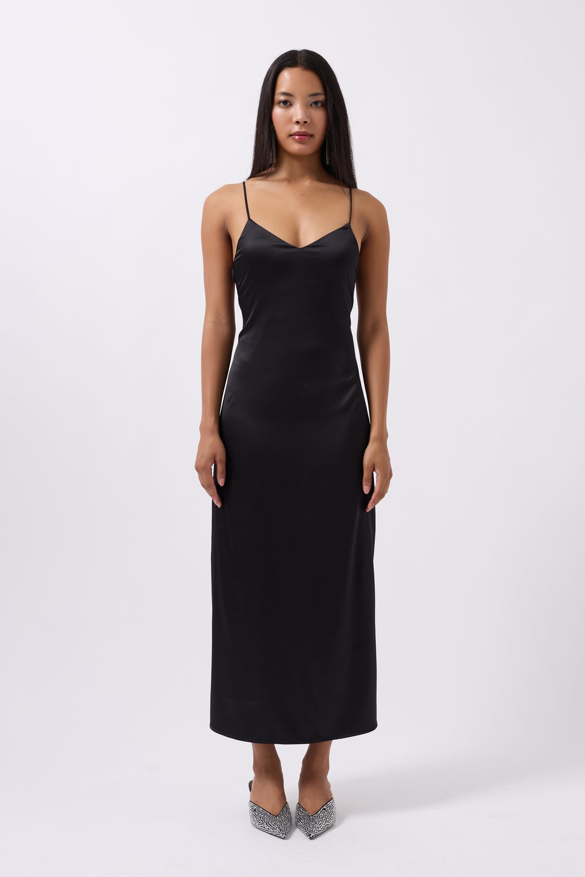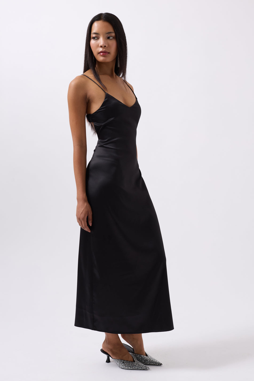 İnce Ayarlanabilir Askılı, Sırt Lastik Detaylı, Gizli Fermuarlı Maxi Elbise