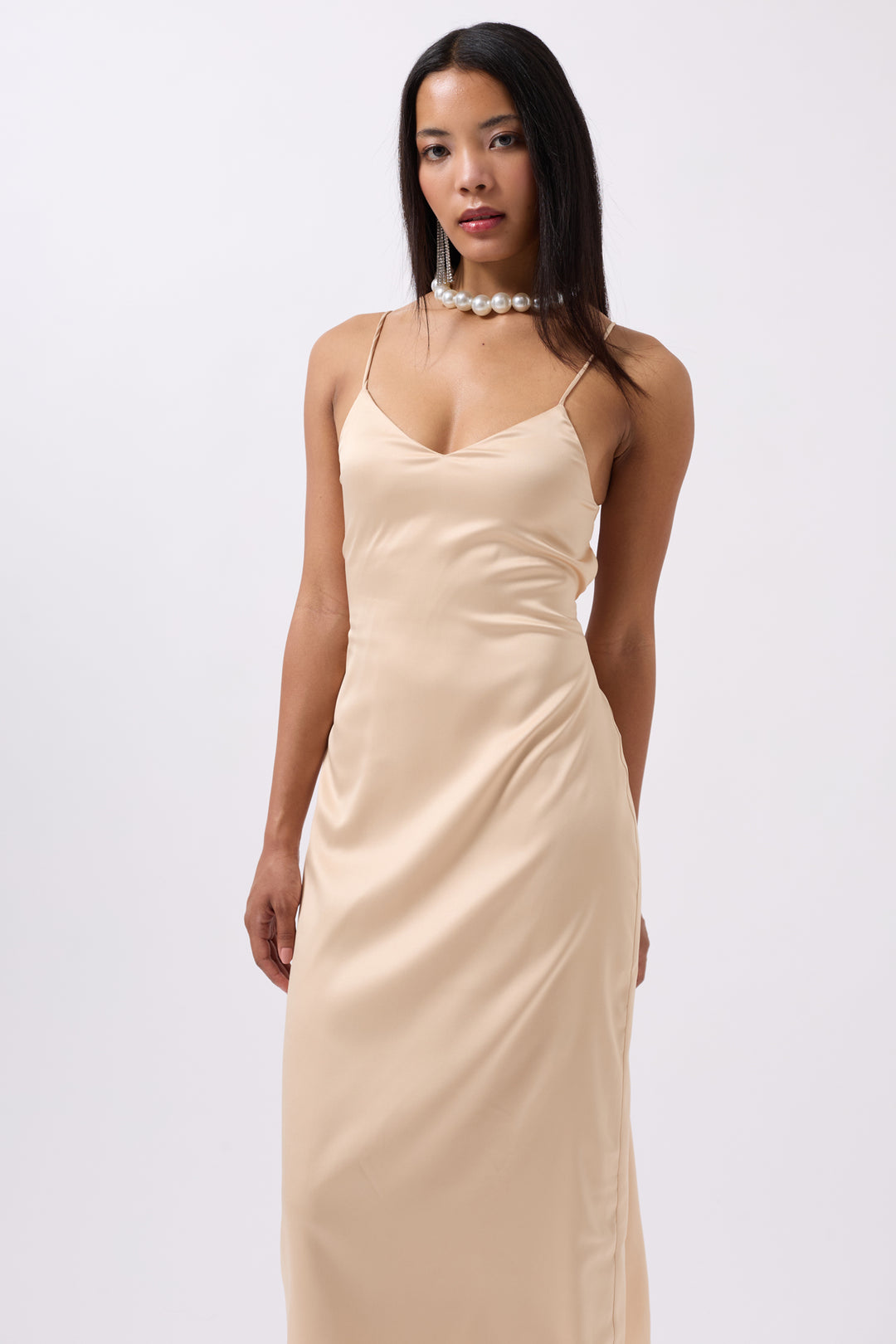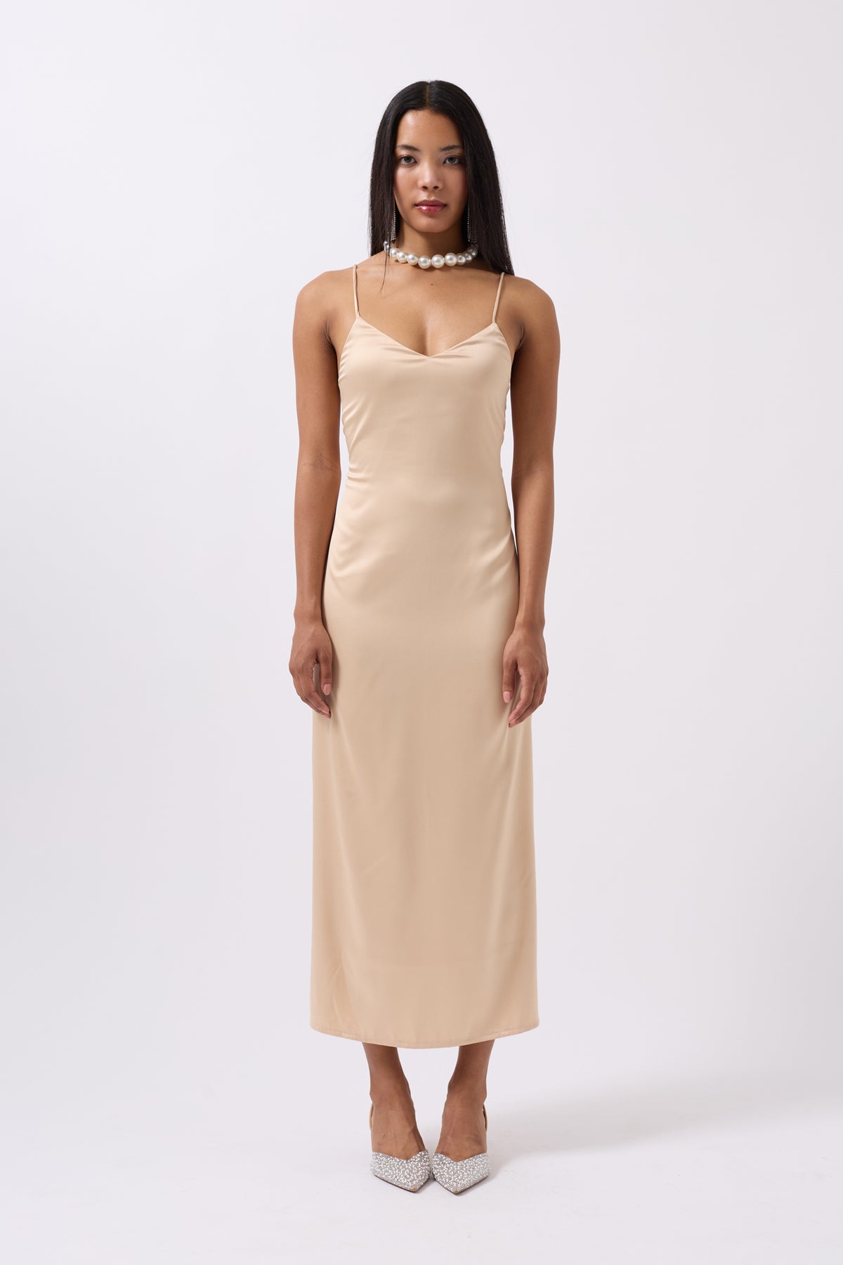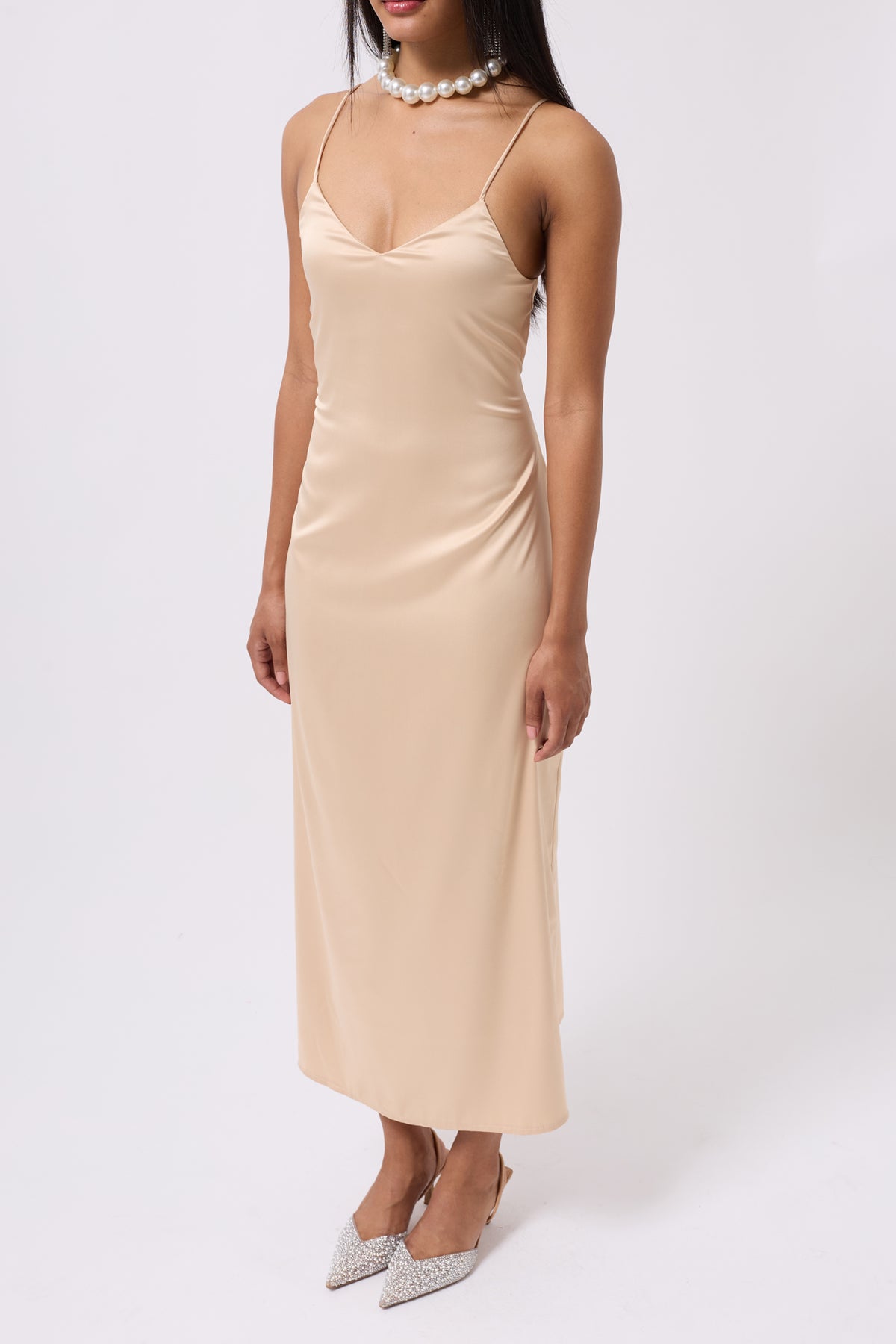 Saten İnce Asklı Taş Elbise