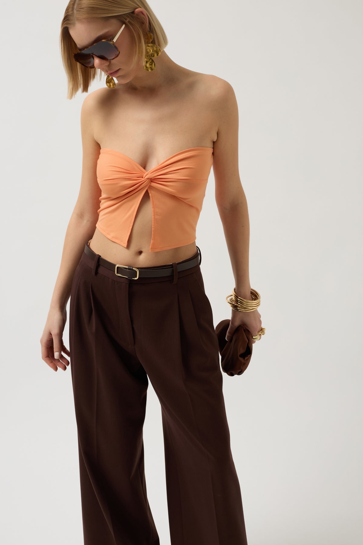 Straplez, Düğüm Detay, Crop, Bluz