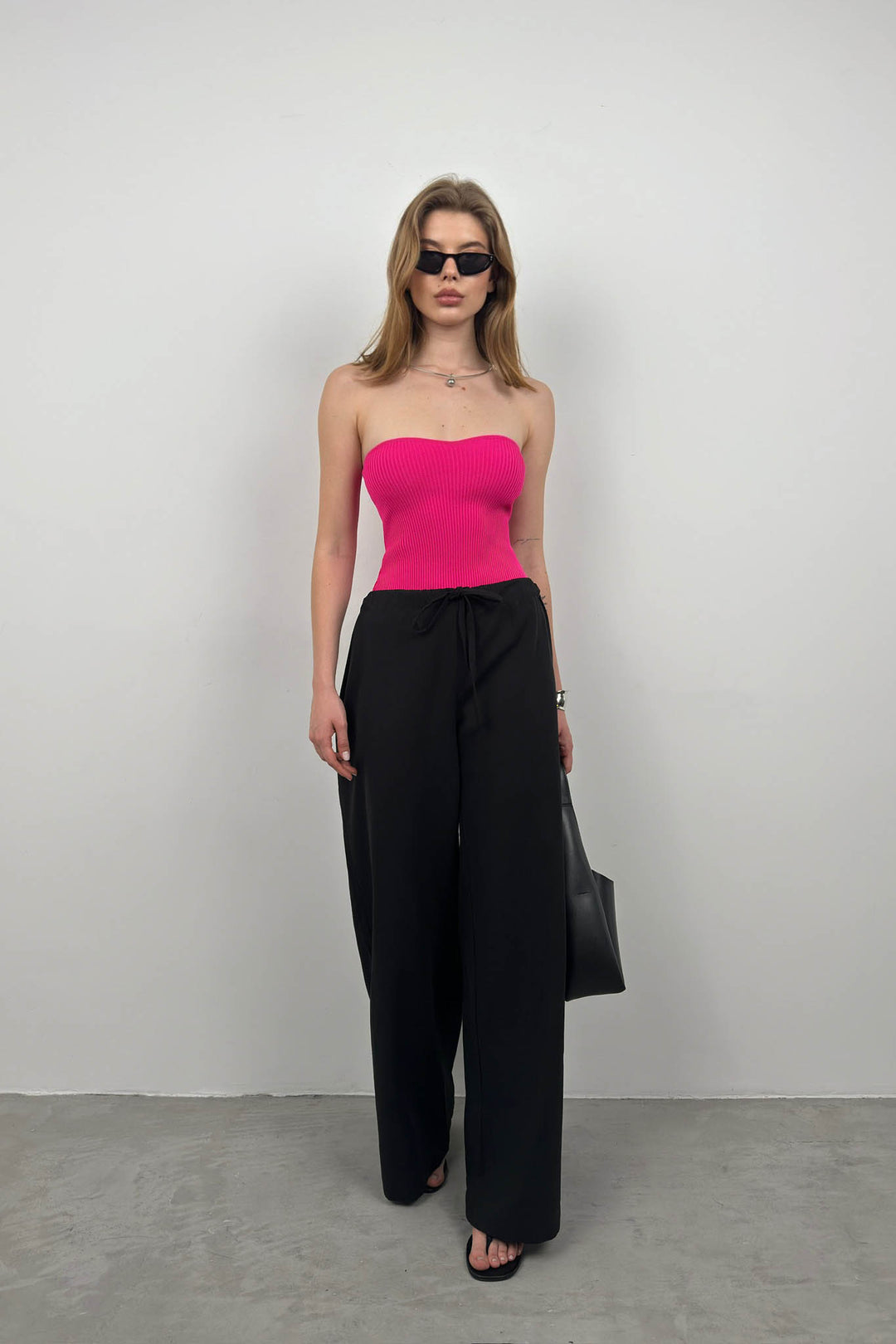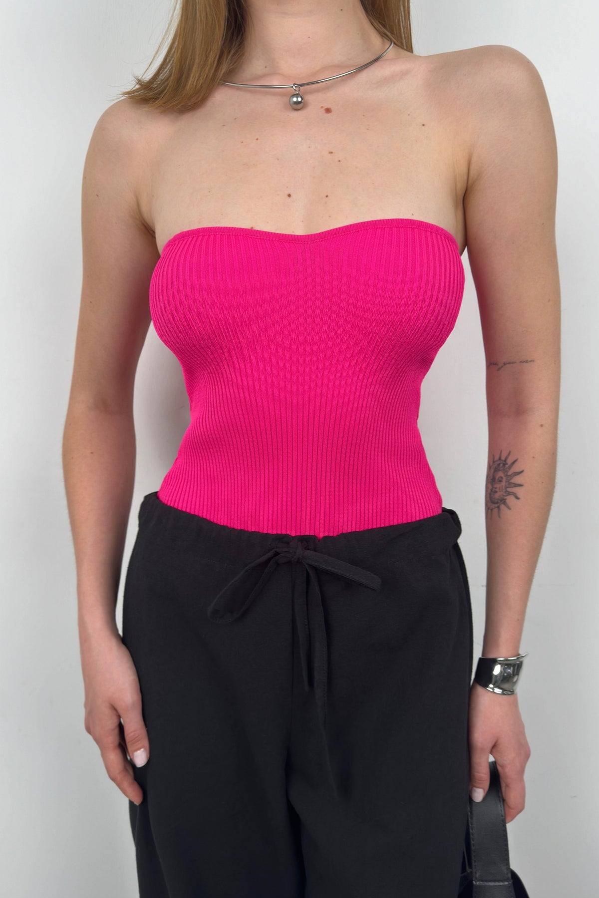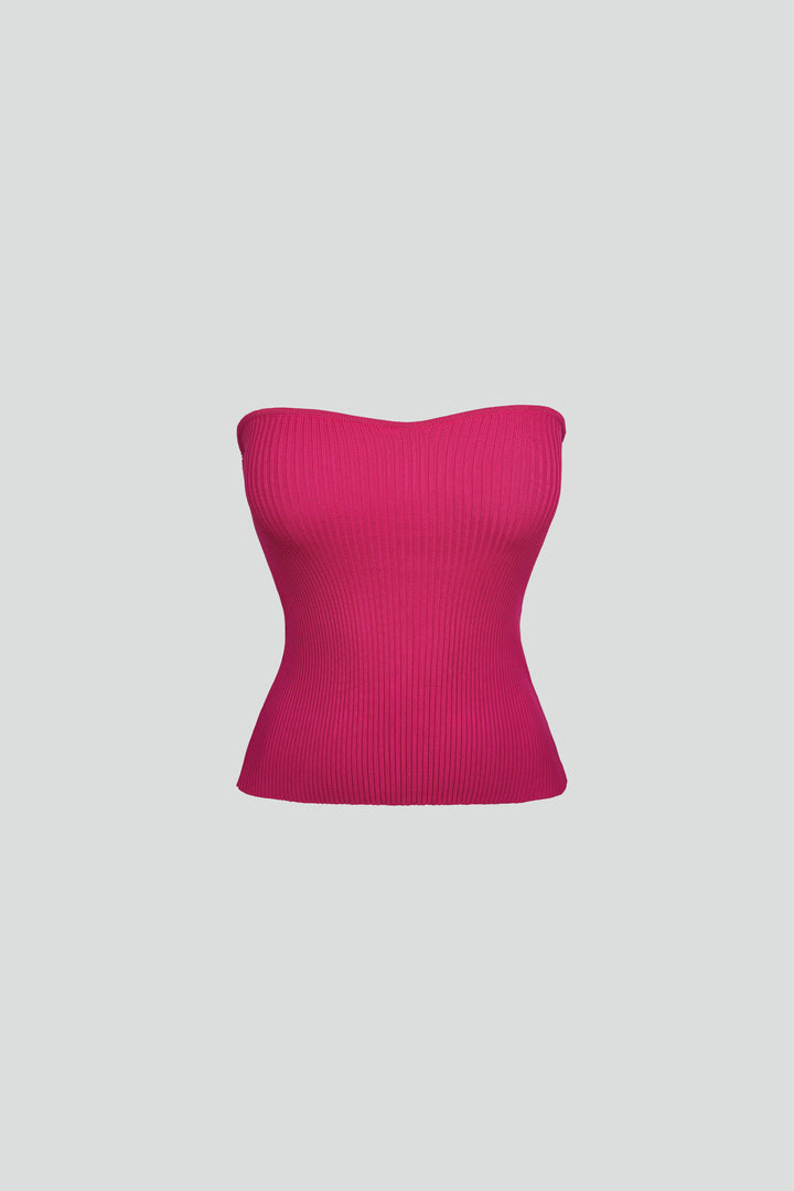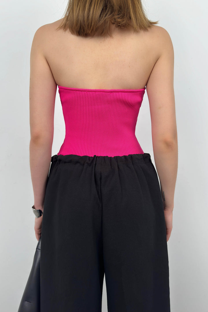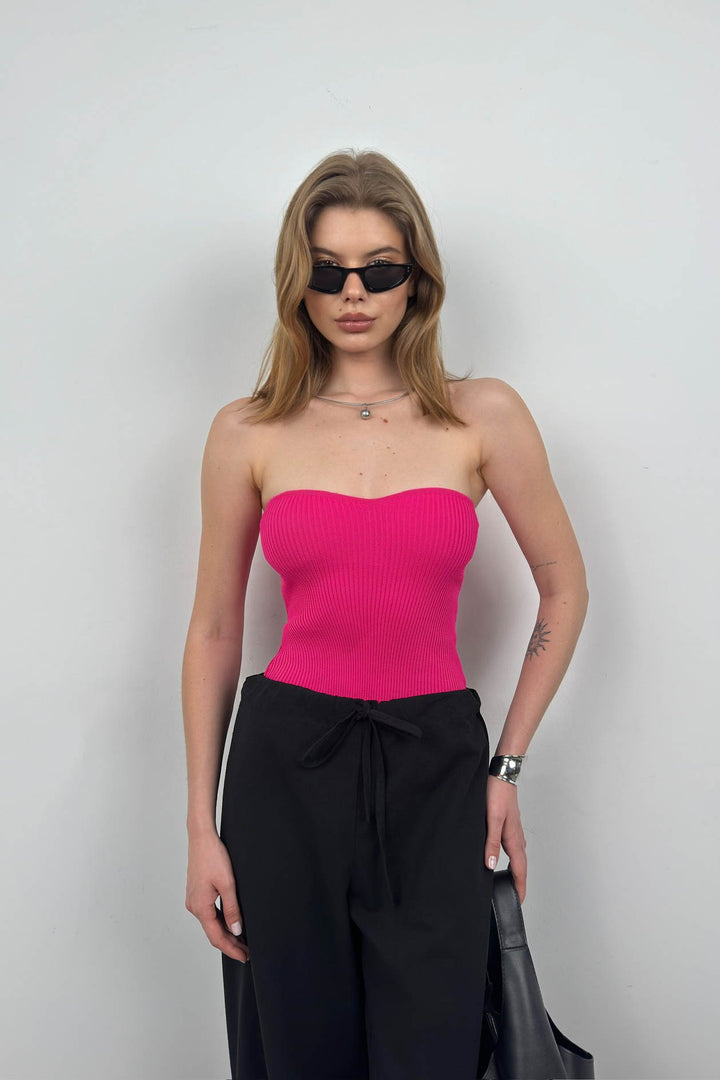 Straplez Fuşya Triko Bluz