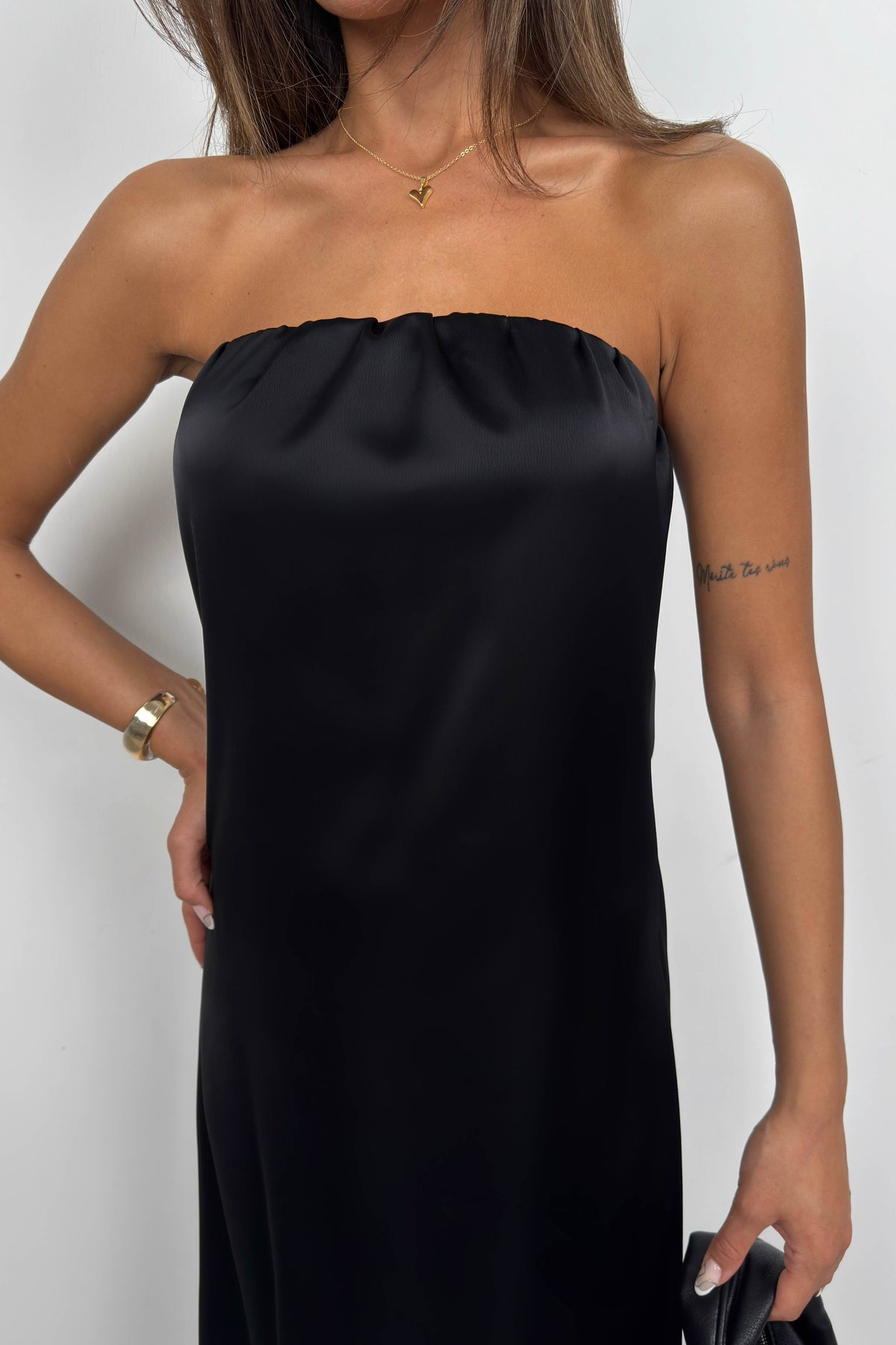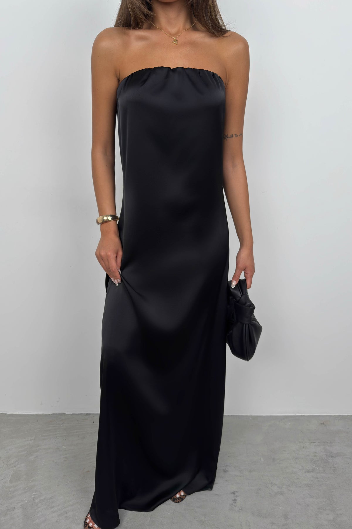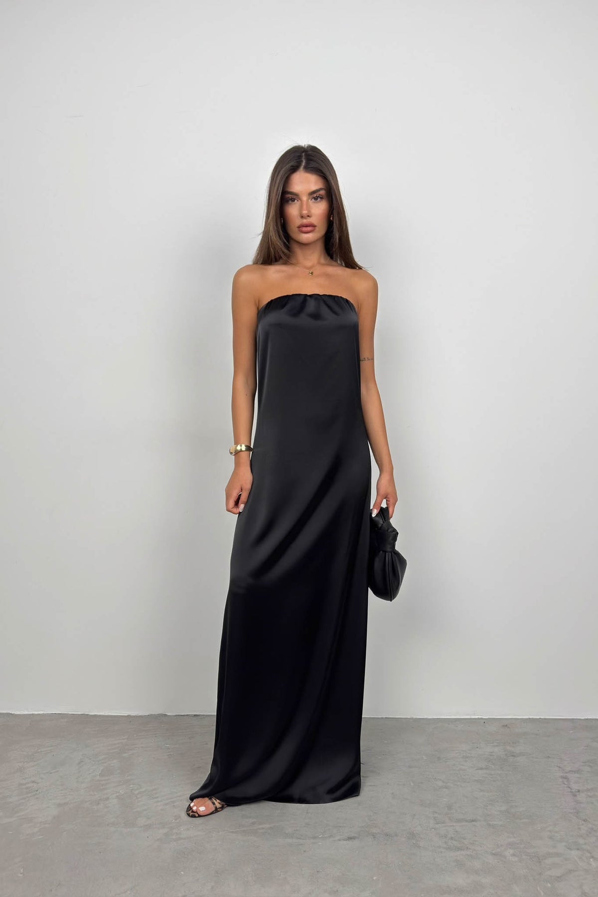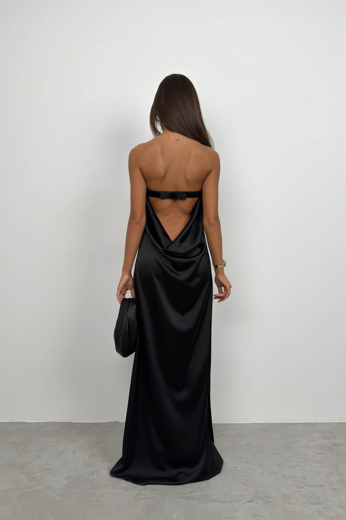 Straplez Sırt Dekolte Siyah Maxi Elbise