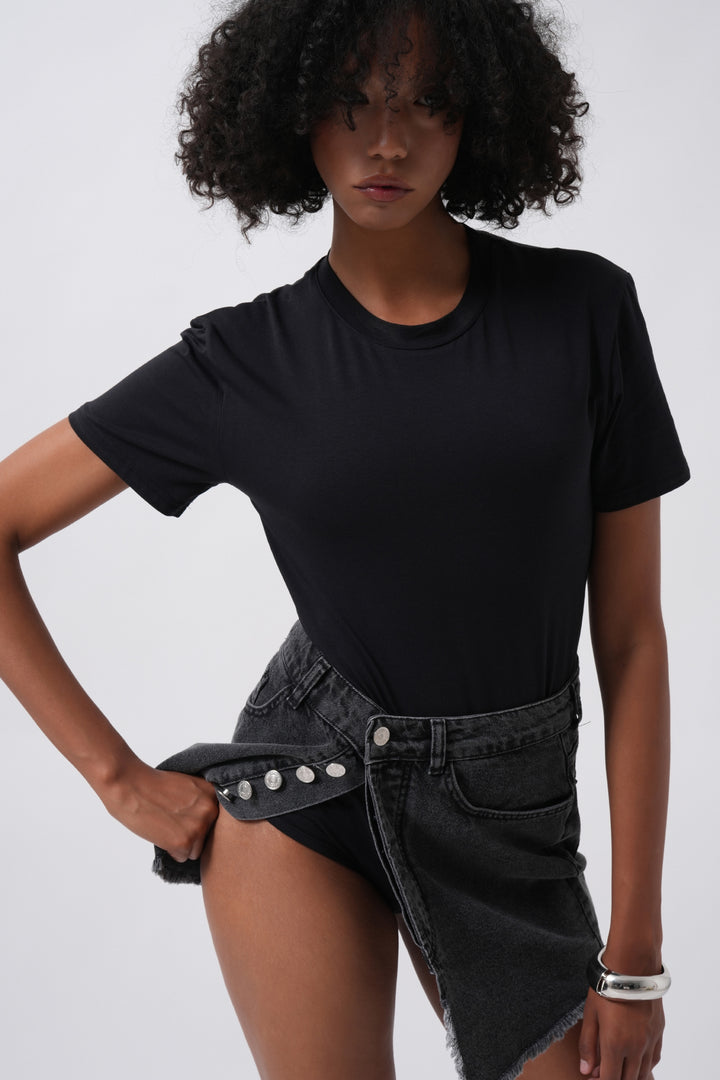 Dar Kesim, Esnek Pamuklu Kumaş, Kısa Kollu, Çıtçıtlı Bodysuit