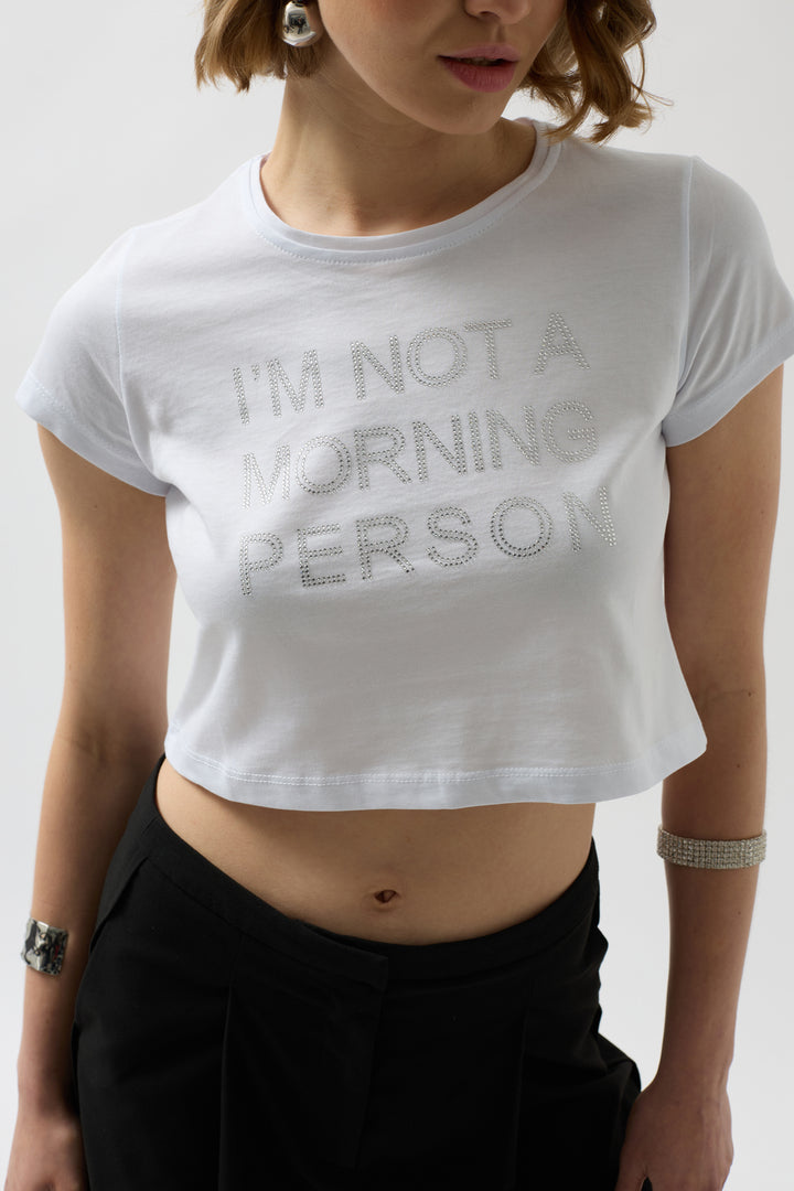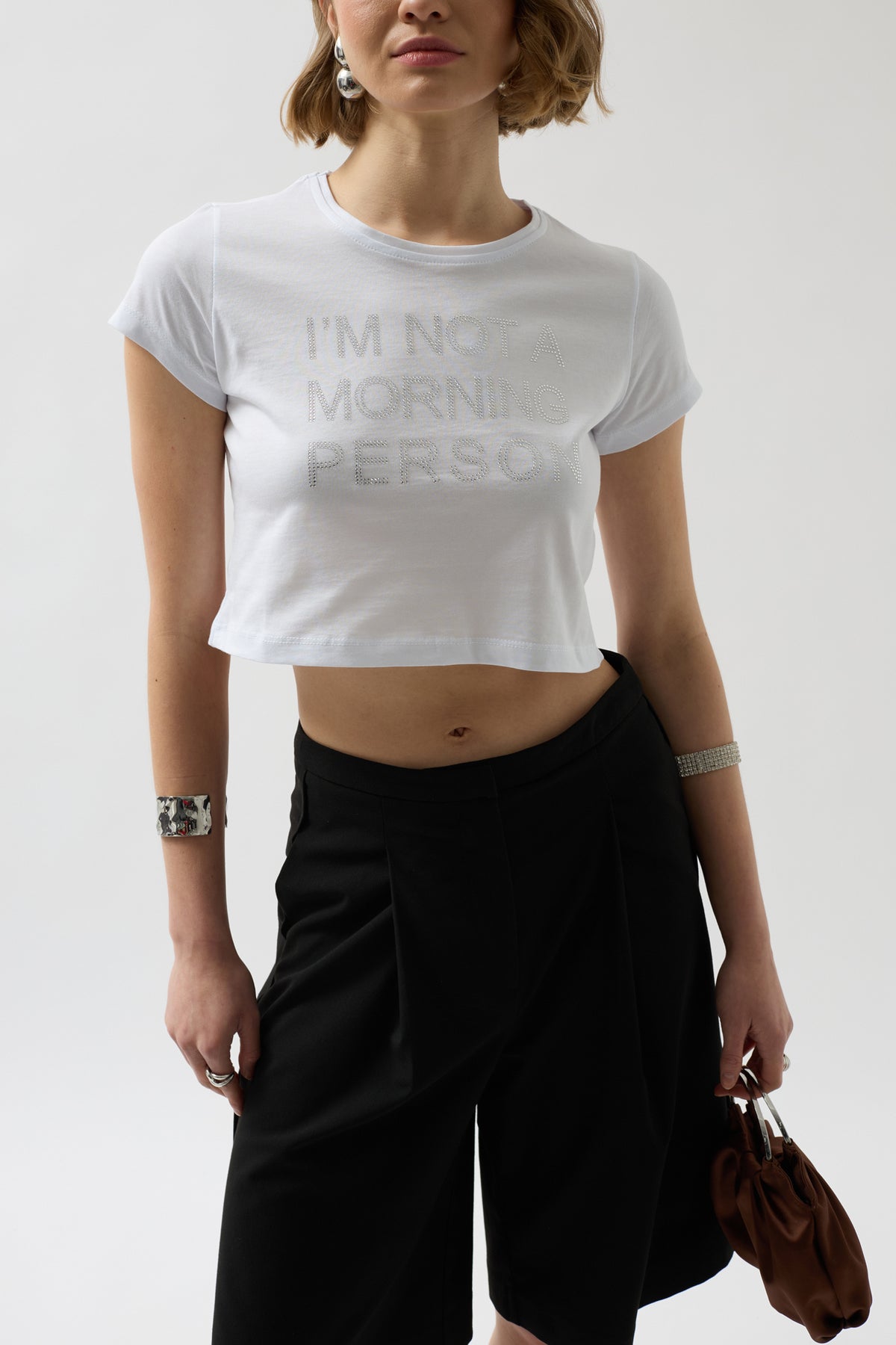 Taş Detay, Kısa Kollu, Basıc, Crop, Likralı, T-Shirt